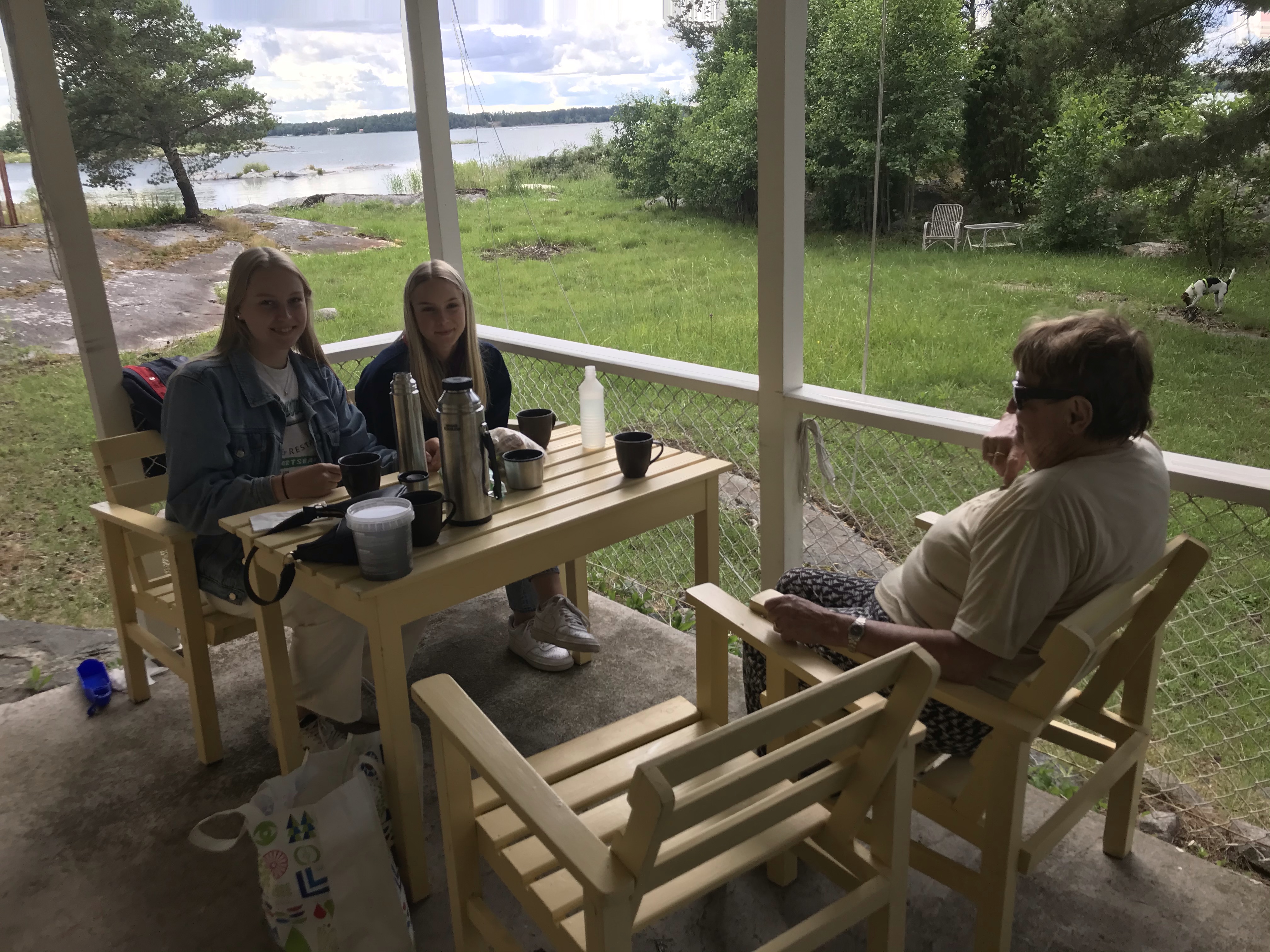 Efter kyrkogården åkte vi till Sandviken. Det här är ett ställe som ligger mig varmt om hjärtat. Jag älskar det här stället❤️ Här har jag spenderat mina somrar som barn. Så fort hästarna var på grönbete och höet var inkört så åkte vi hit. Det är så mysigt här ute! Bara ljudet av alla måsar och andra sjöfåglar gör en alldeles varm i hjärtat, det är mumma för själen❤️ Vi hade ingen nyckel så vi kunde gå in och titta men satte oss på verandan och åt medhavd fika, dvs kaffe och Toves hembakade bullar…och lite godis😊