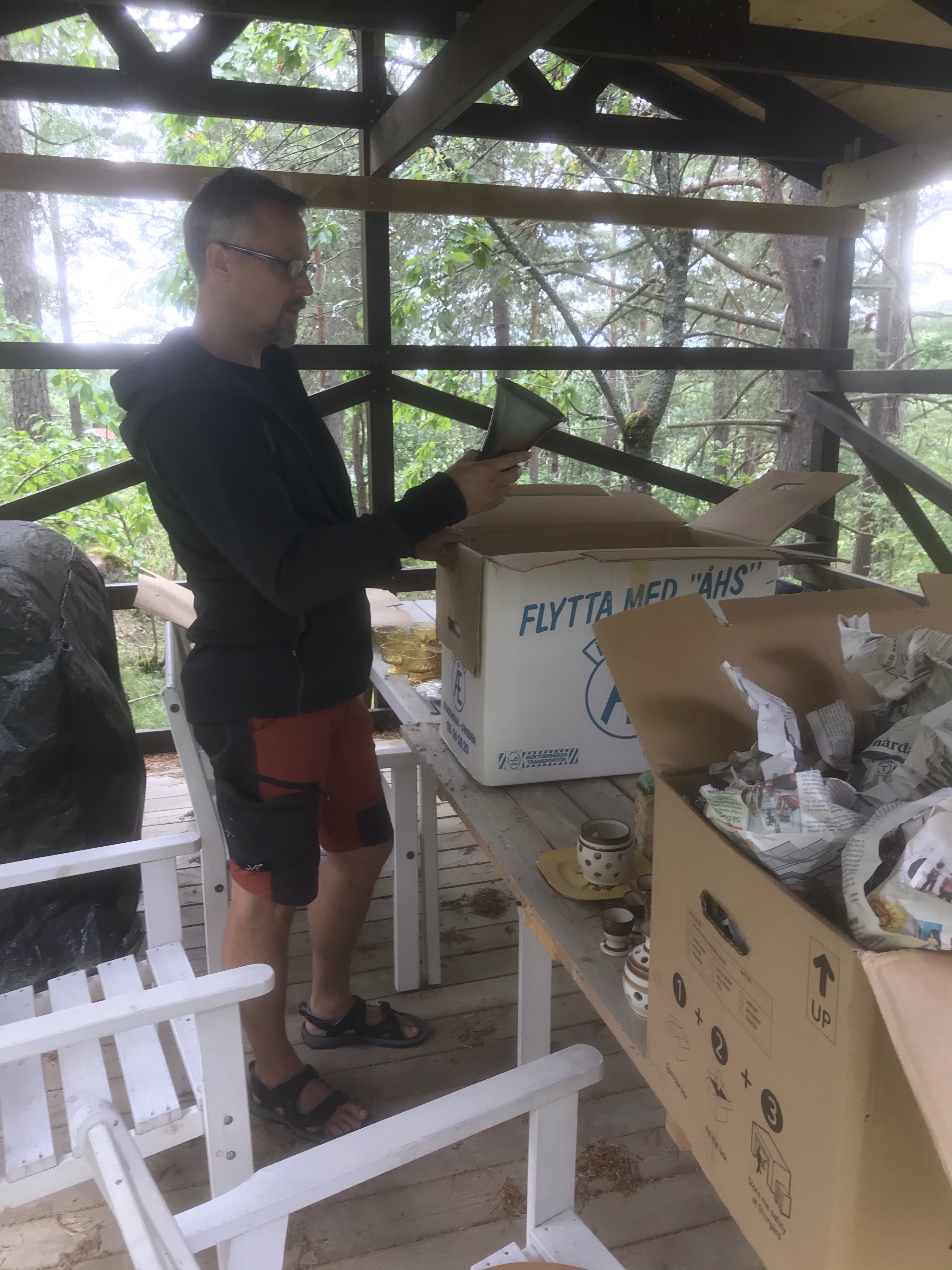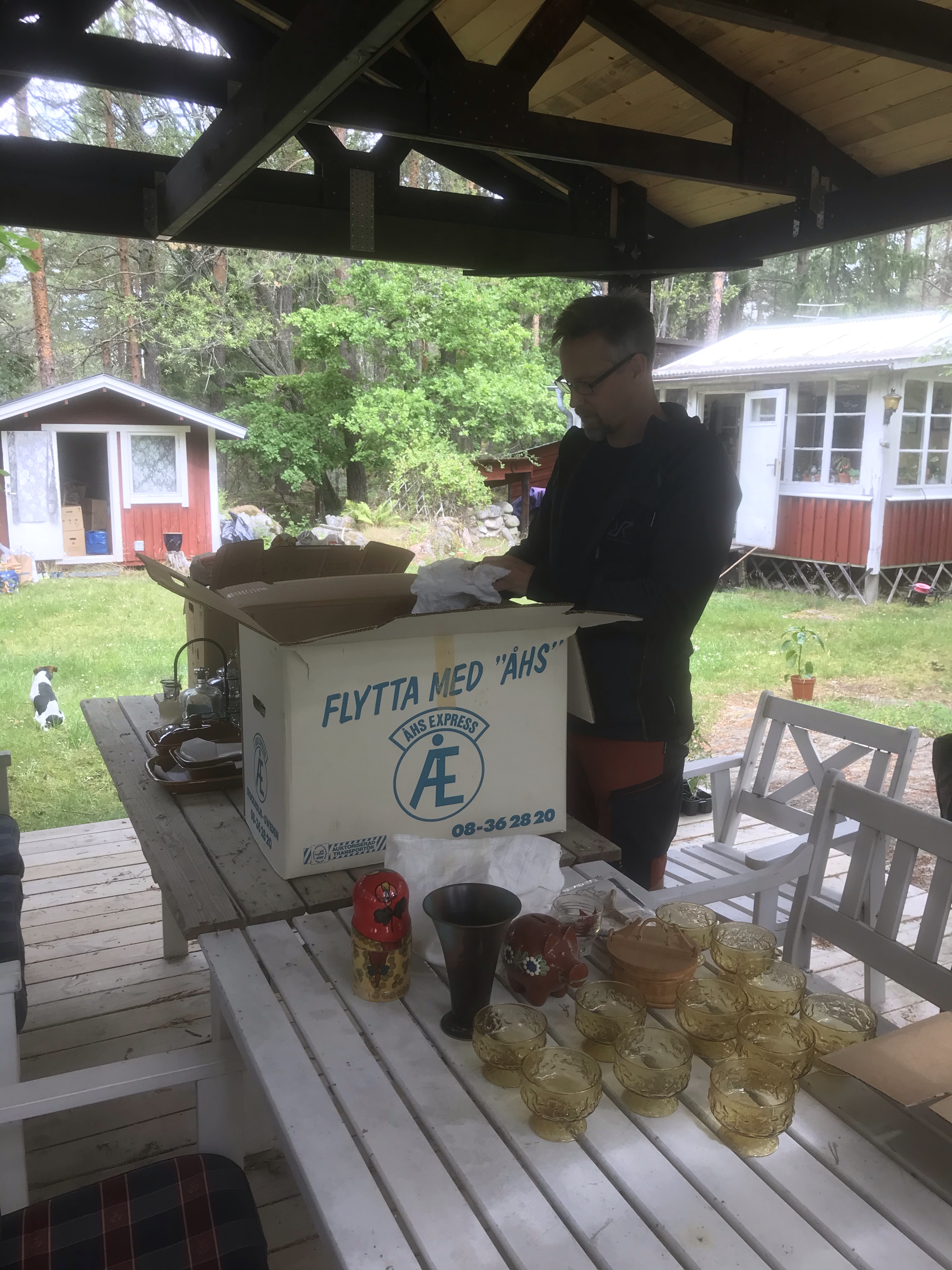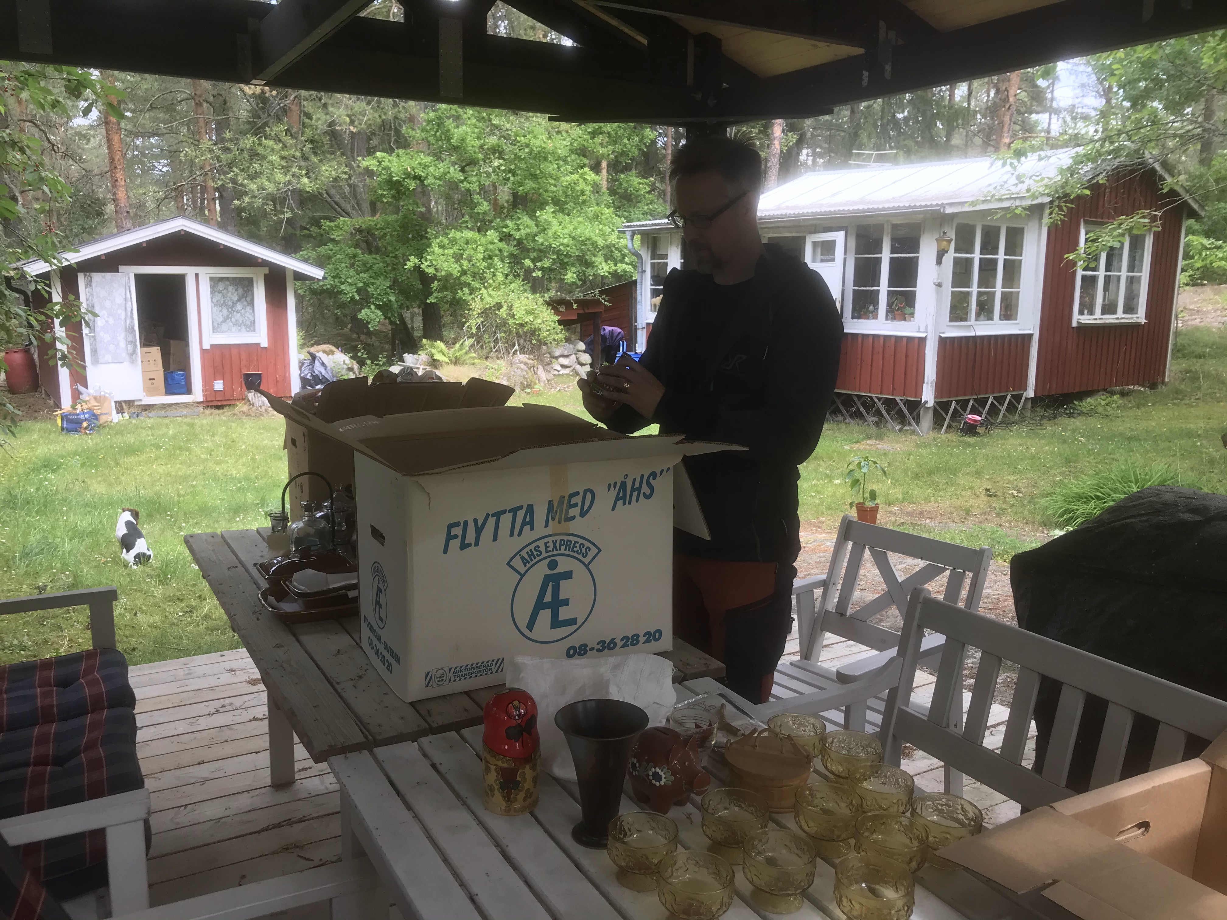 …rensat i kartonger. Ingela hade ställt upp en massa kartonger som hon har gått igenom efter Mona o Berra för Magnus att gå igenom.