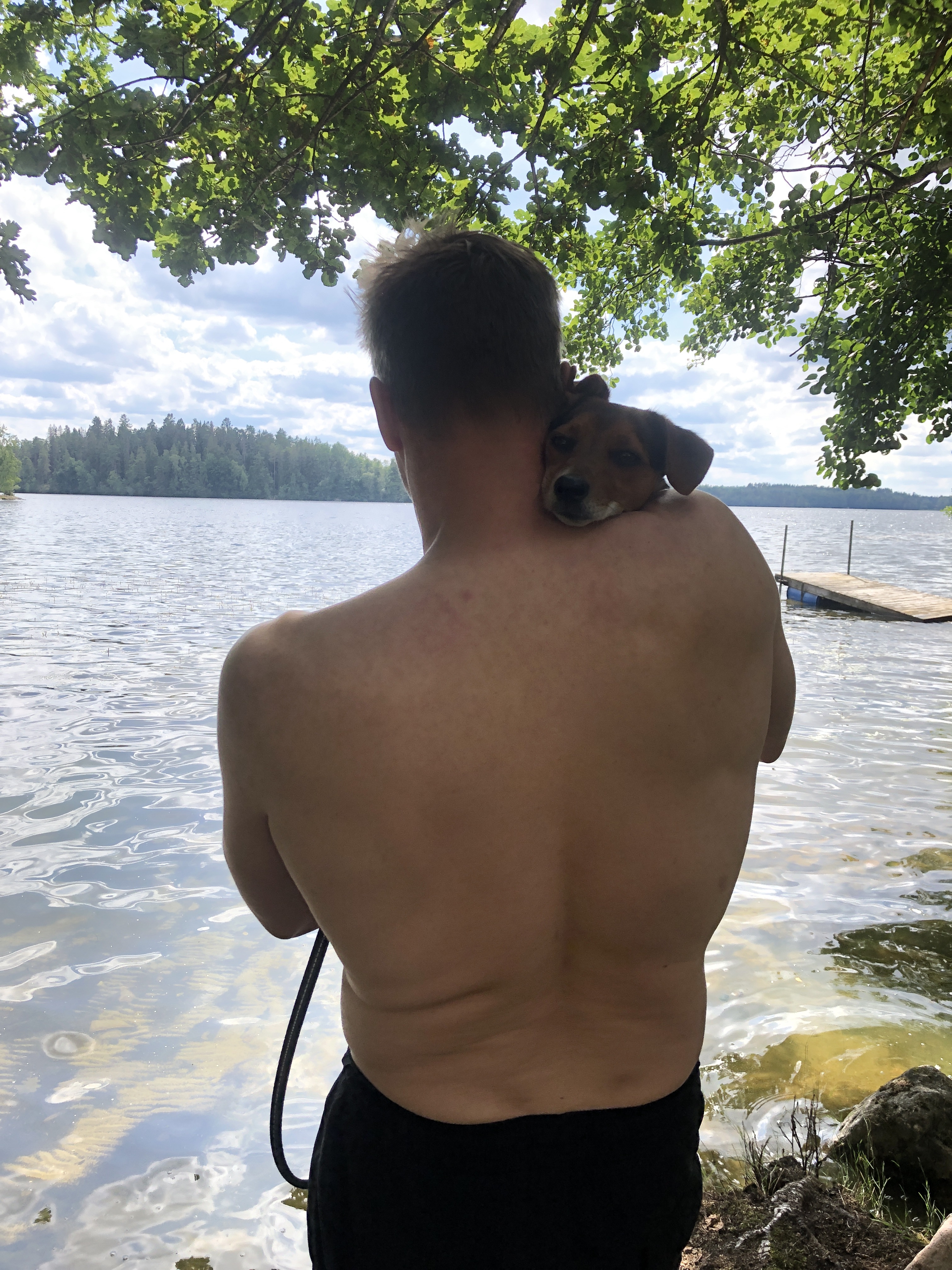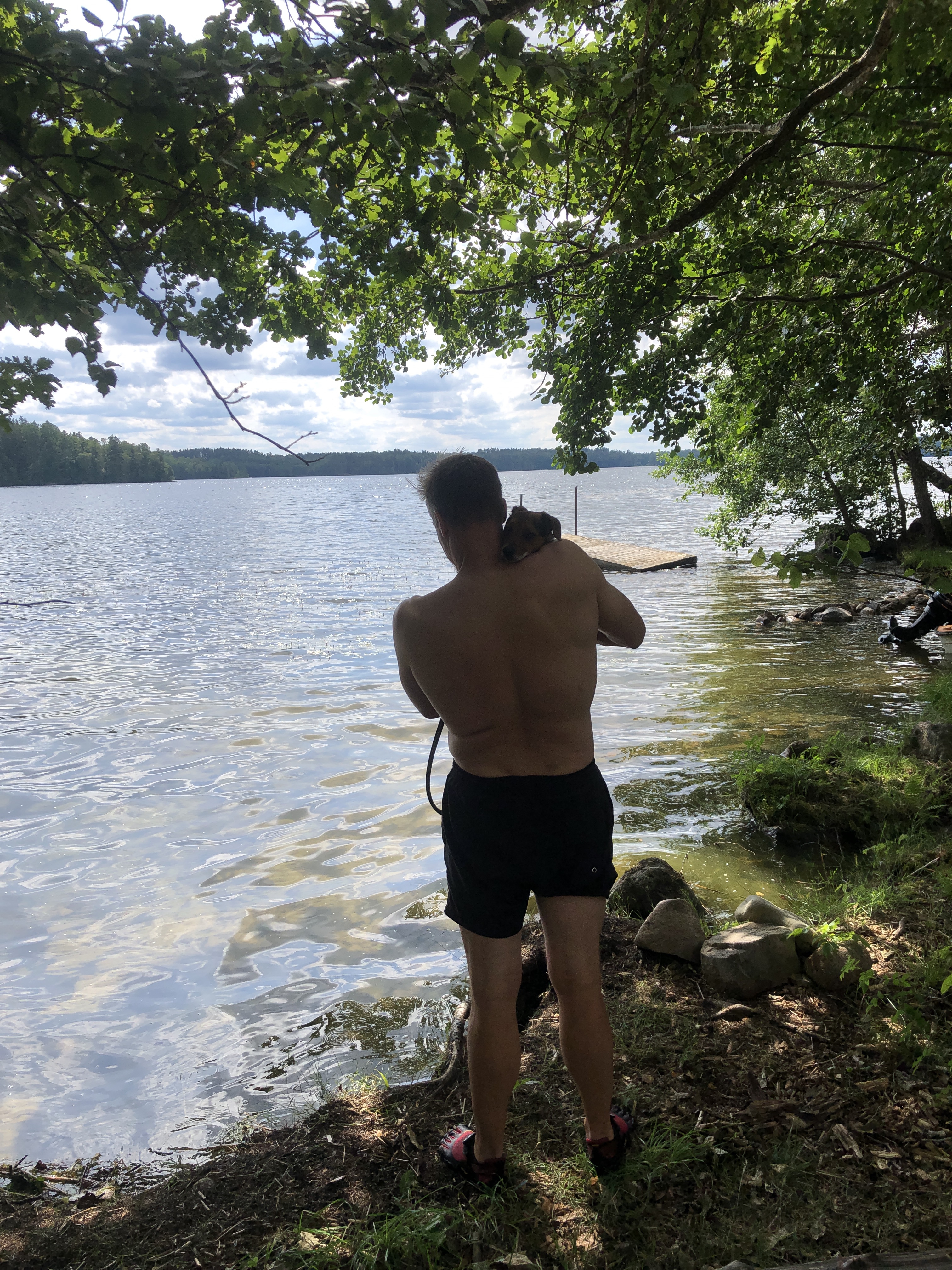 Vi har badat på nytt hundvänlig ställe och Hugo som ändå var ganska rädd för vatten har badat för första gången👏👏👏
