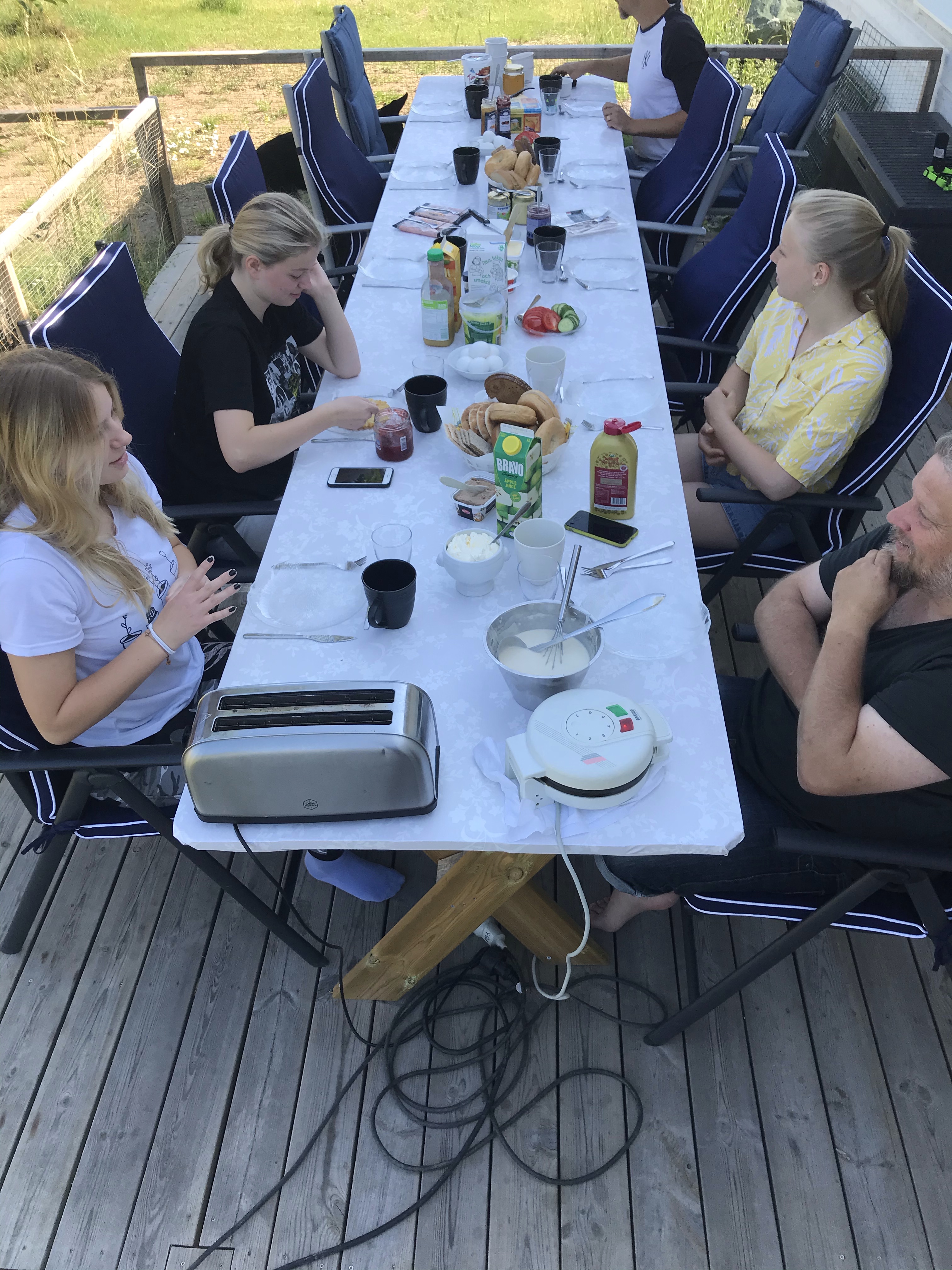En dag blev vi bjudna ner till Broströms på LYXfrukost! Våfflor, Bagels, Ägg, Yoghurt, Ingelas egen honung, skinka, grönsaker och en massa mer. Vi tyckte det kunde bli en tradition men där sa Broströms stopp😁