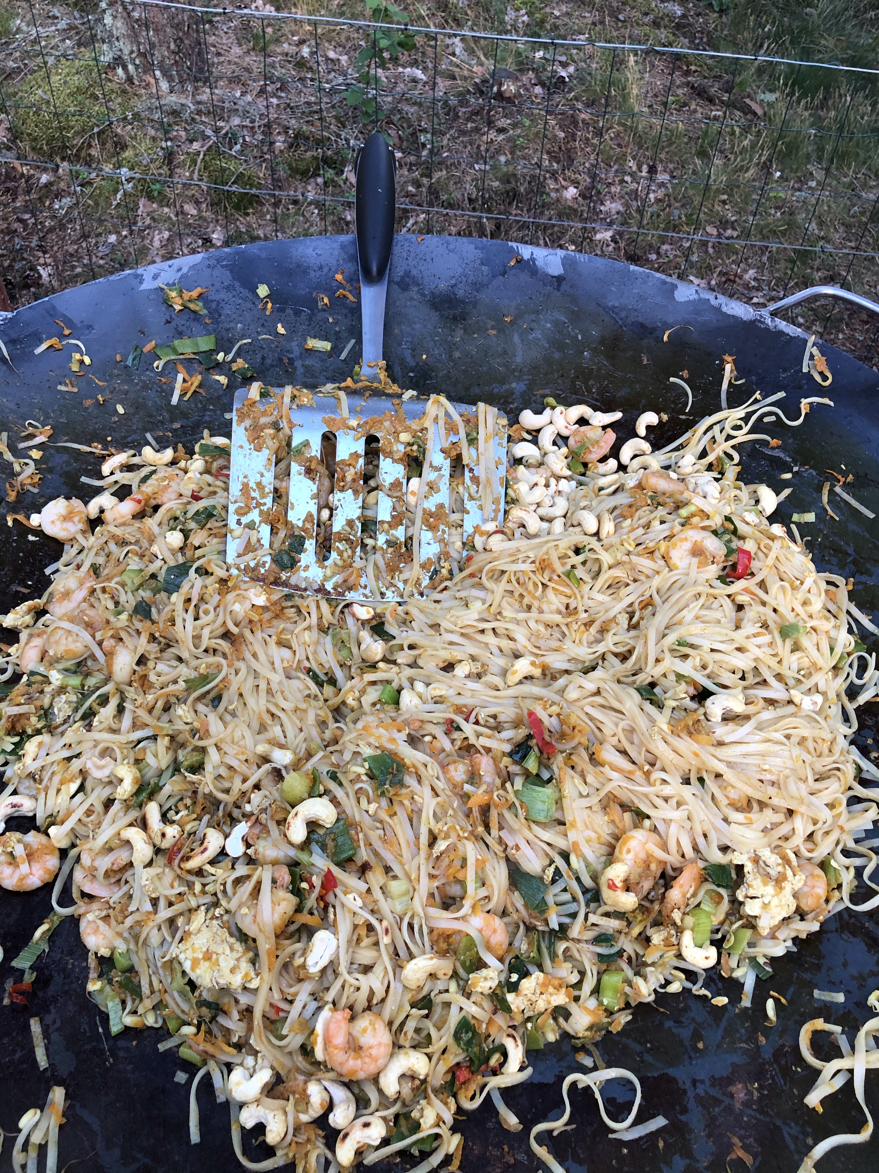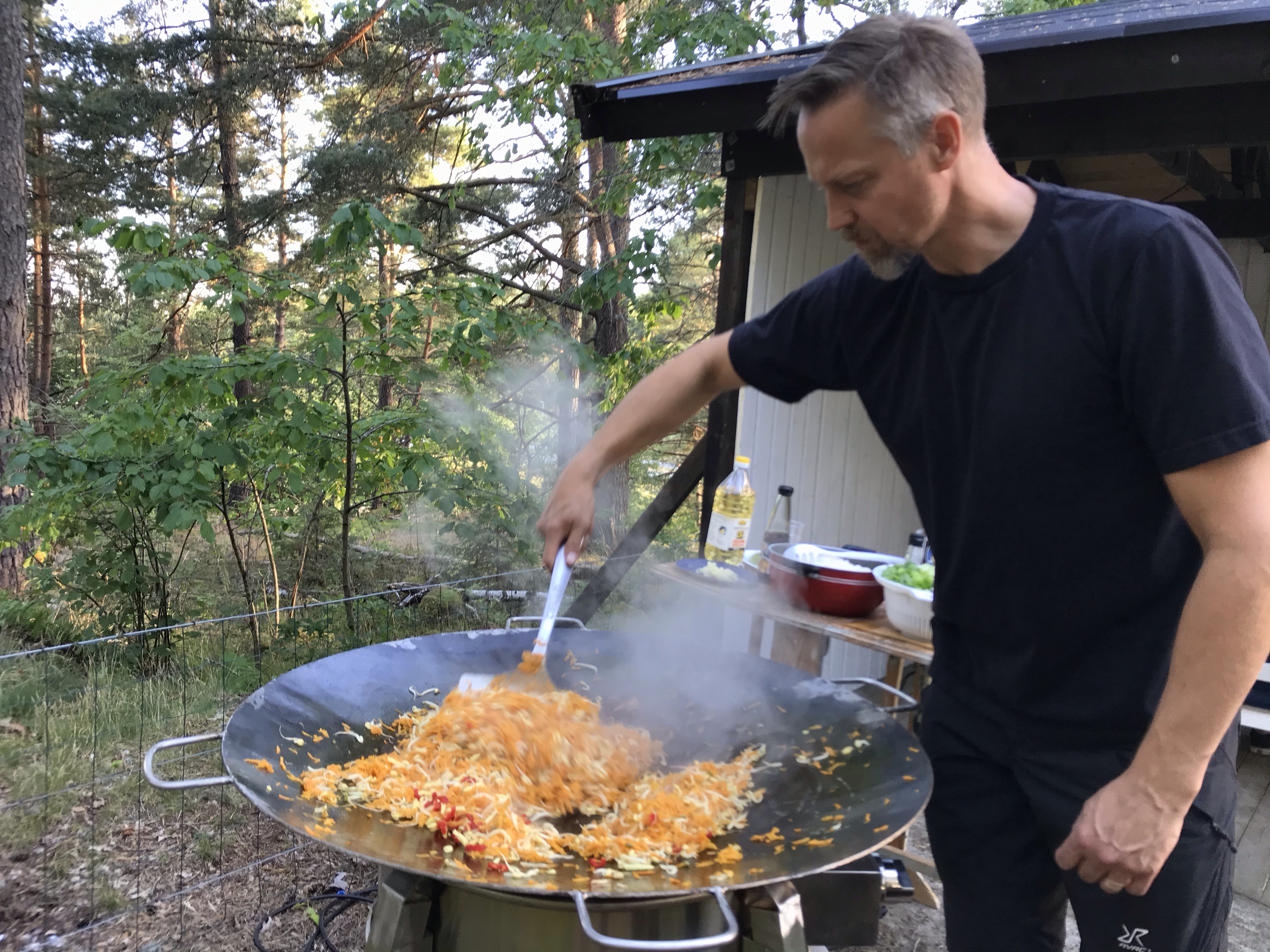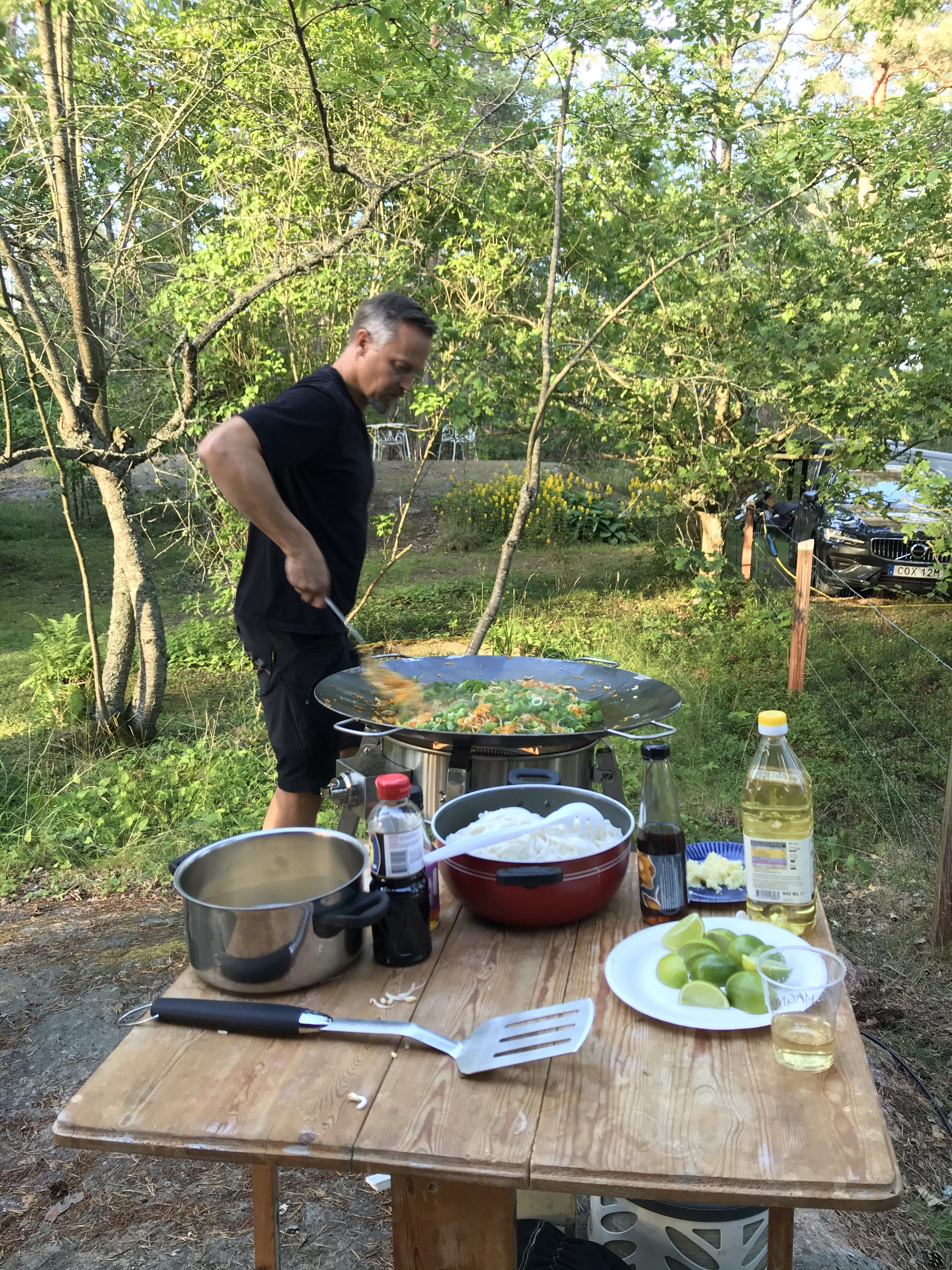 Middag med Broströms och invigning av stekhällen. Det blev Pad Thai denna gång. Efter det har Magnus även gjort Jambalaya, båda blev superbra!