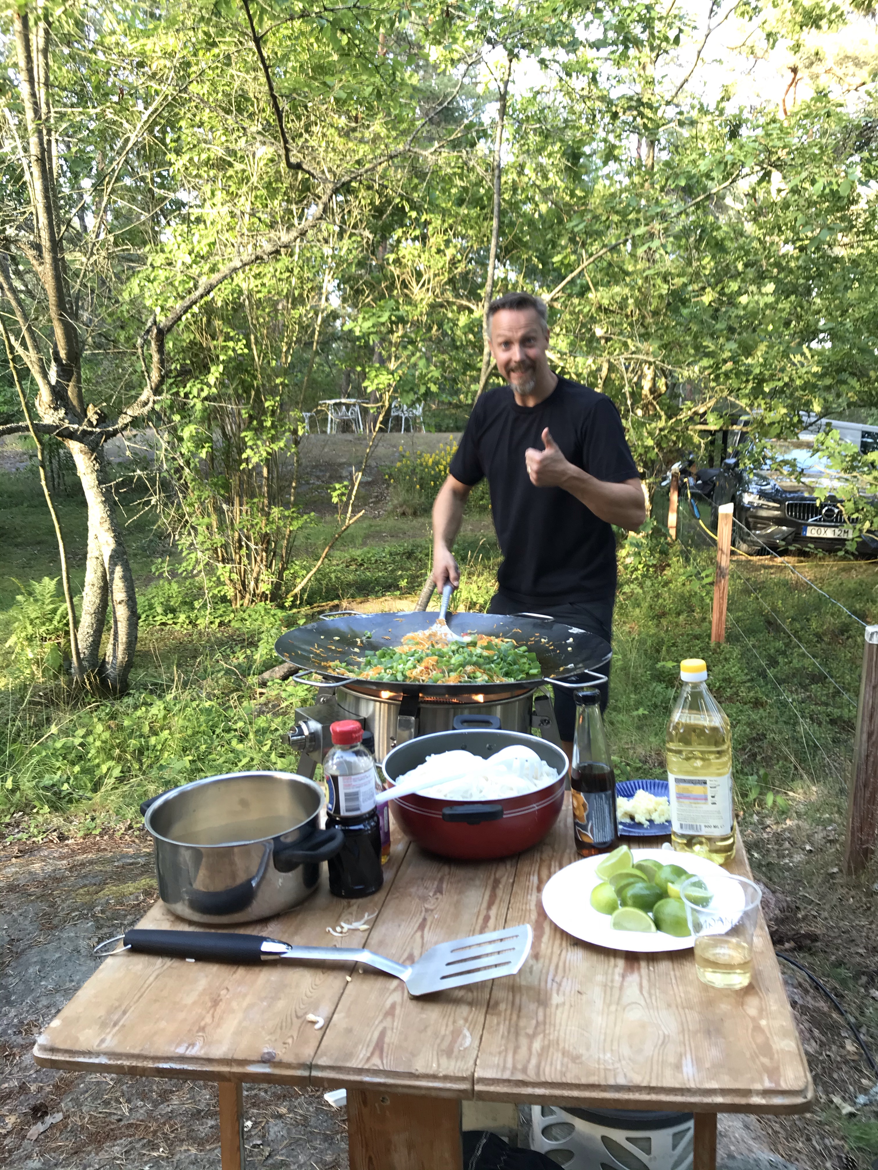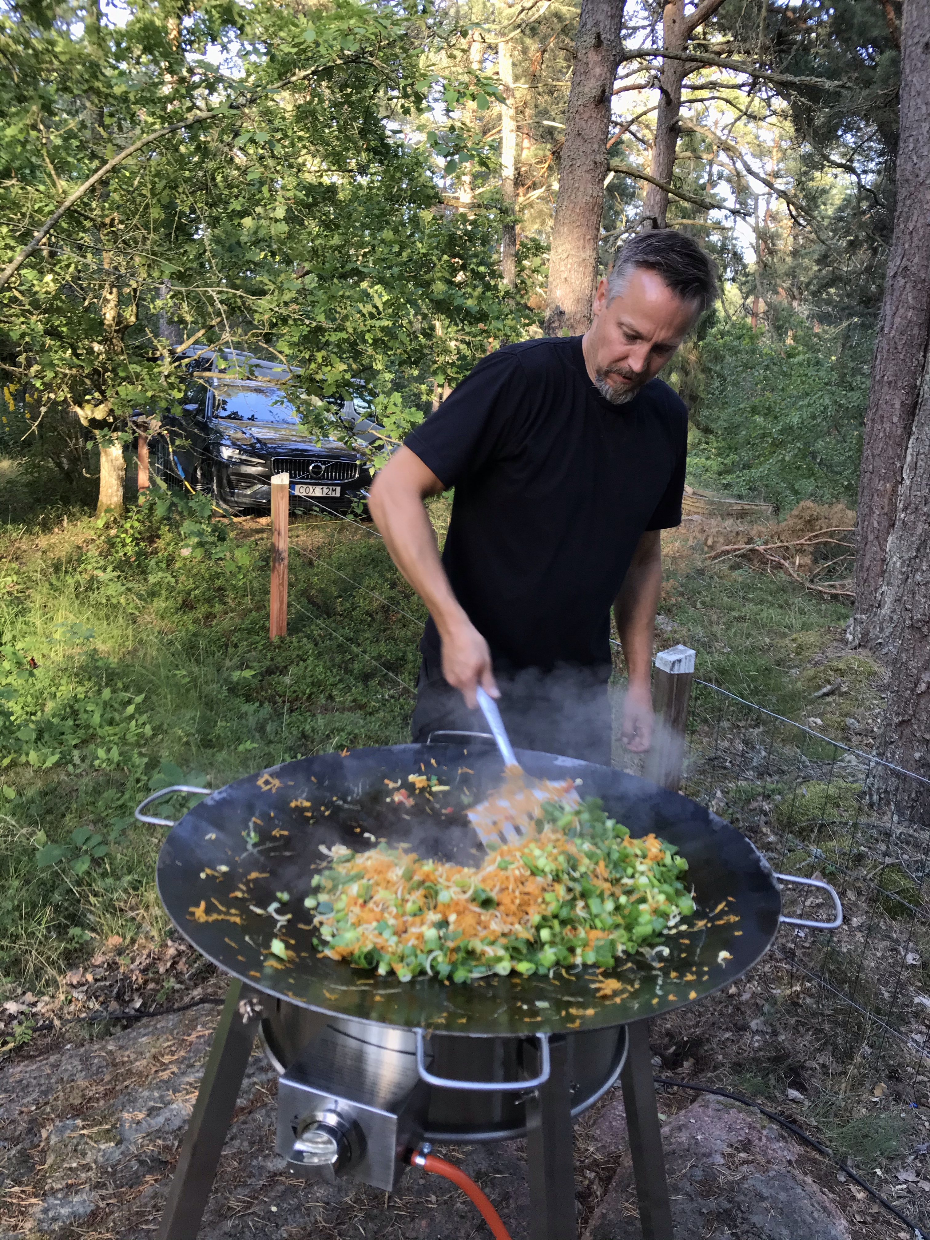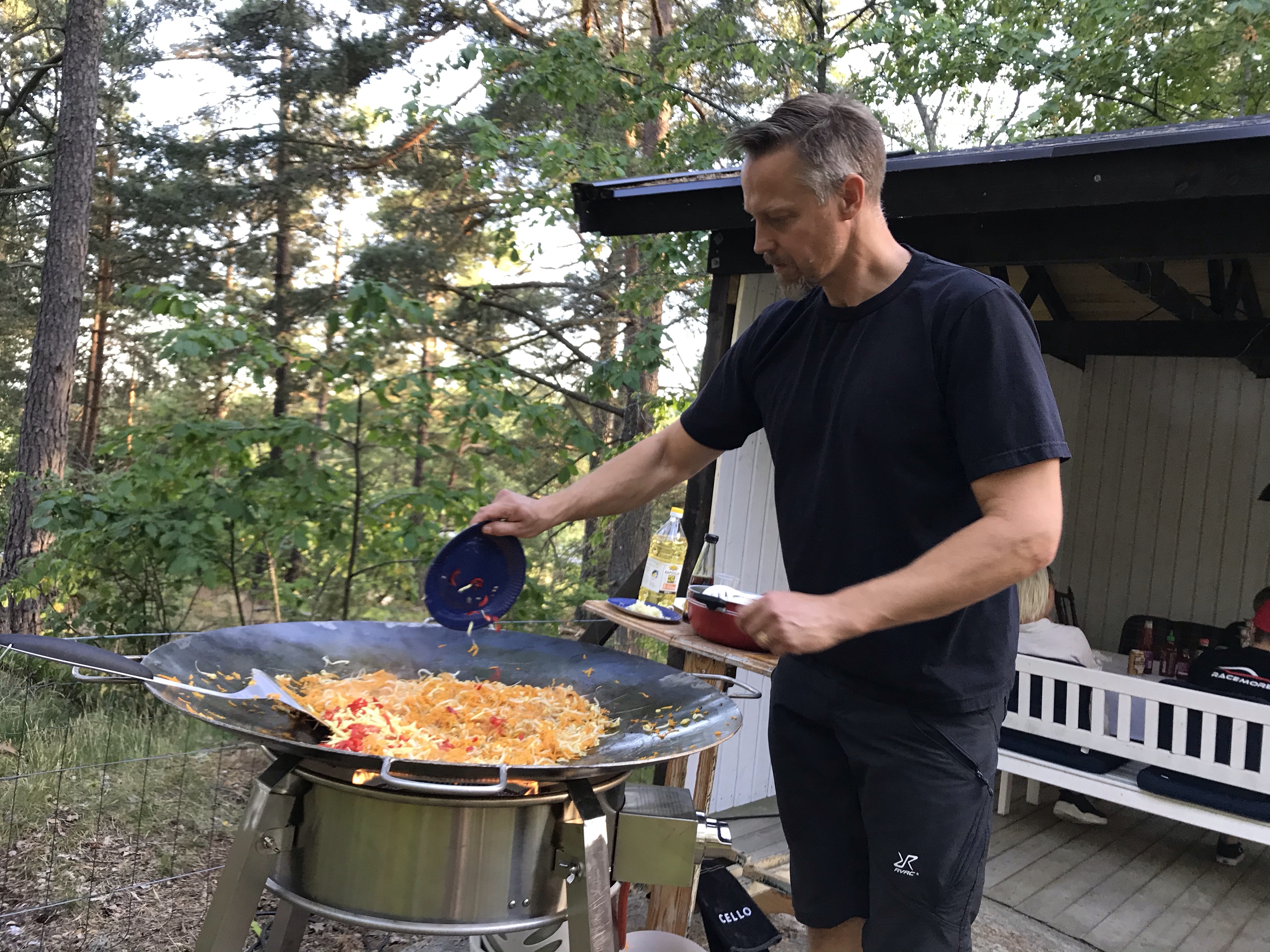 Middag med Broströms och invigning av stekhällen. Det blev Pad Thai denna gång. Efter det har Magnus även gjort Jambalaya, båda blev superbra!
