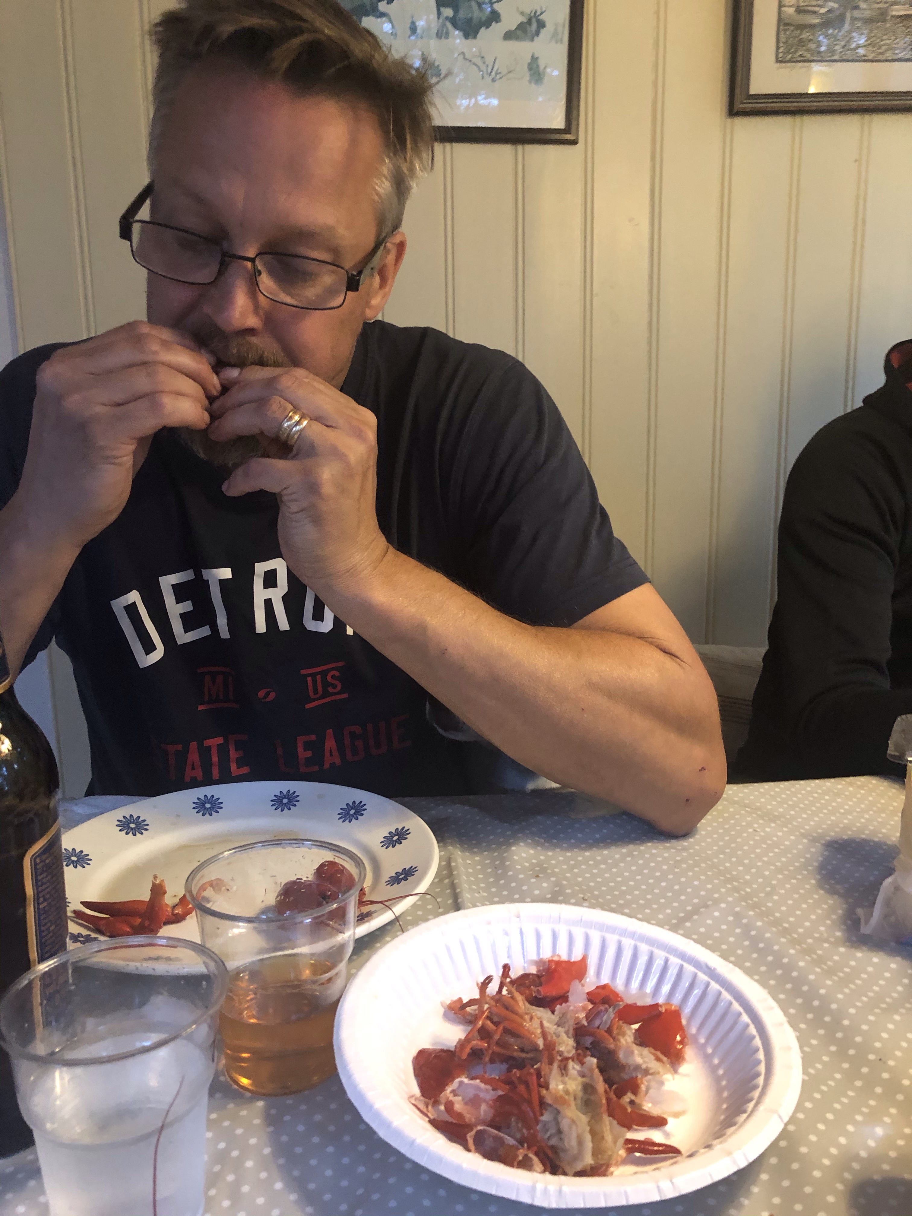 Kvällen avslutades med att Magnus överraskade med kräftor🦞! Hugo tyckte det var superkonstigt😊