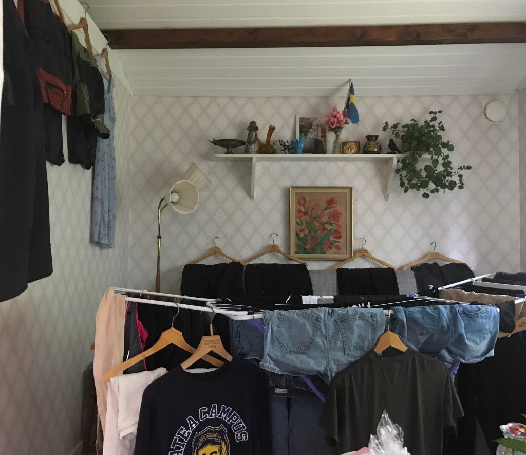 …och kläderna som skulle hänga ute på tork…hänger istället inne i vår superstora stuga eftersom det, tada… regnar, och så skiner solen, och så öser regnet ner, och så tittar solen fram igen… och så håller det på, timme ut och timme in, idag också🙄