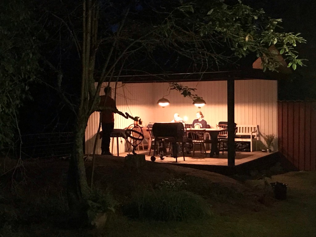 Tur att vi har byggt verandan/altanen/terassen/salongen (vi har inte riktigt bestämt oss för vad vi nu ska kalla den än), där kan man sitta oavsett väder. Med värmelamporna på får man till och med en aning Spanienkänsla, med lite fantasi!☀️
