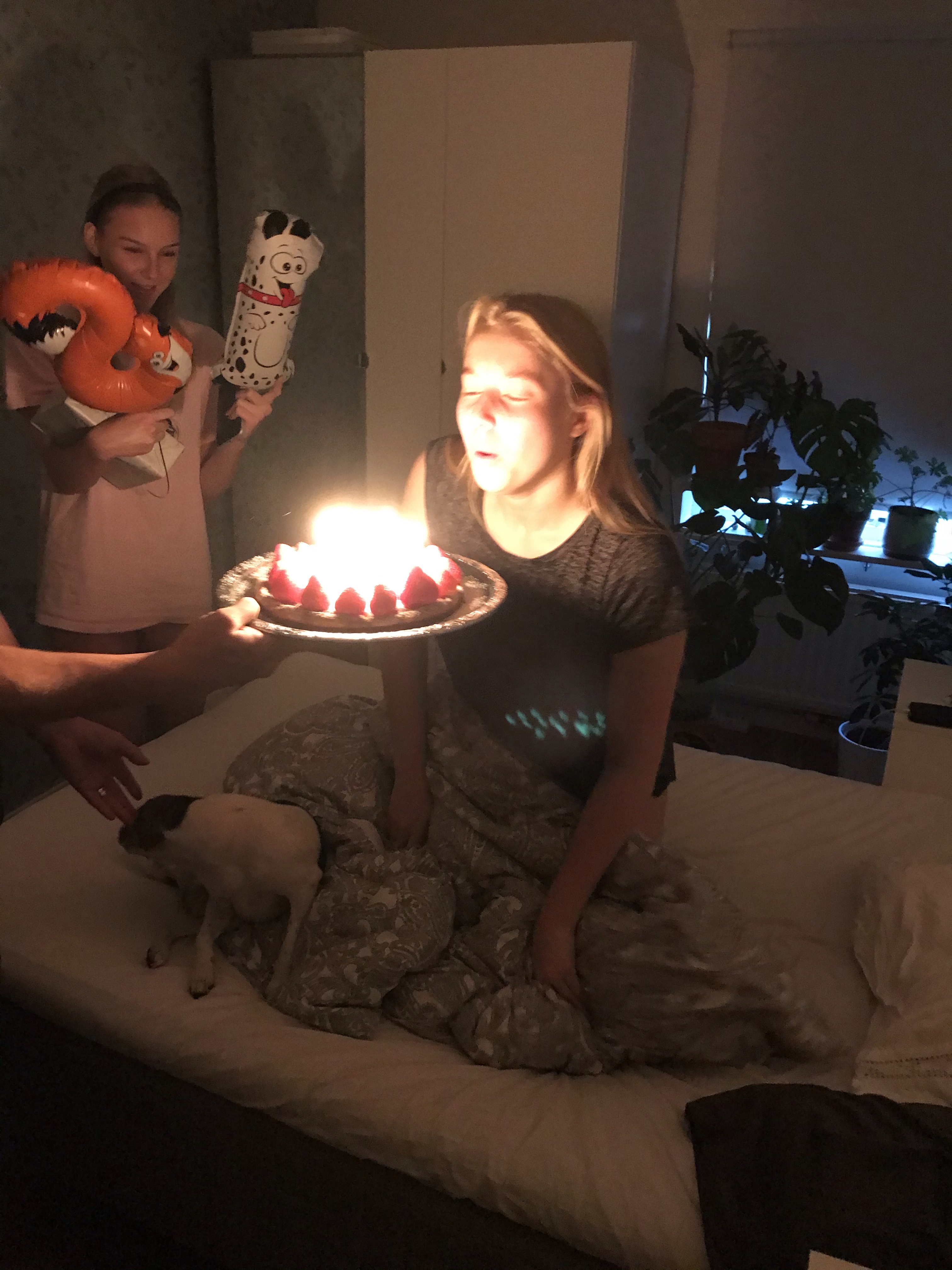 Efter tÄrta, paket och skönsÄng var det ÀndÄ dax för skola innan vi Äkte in till stan för att fira vidare!
