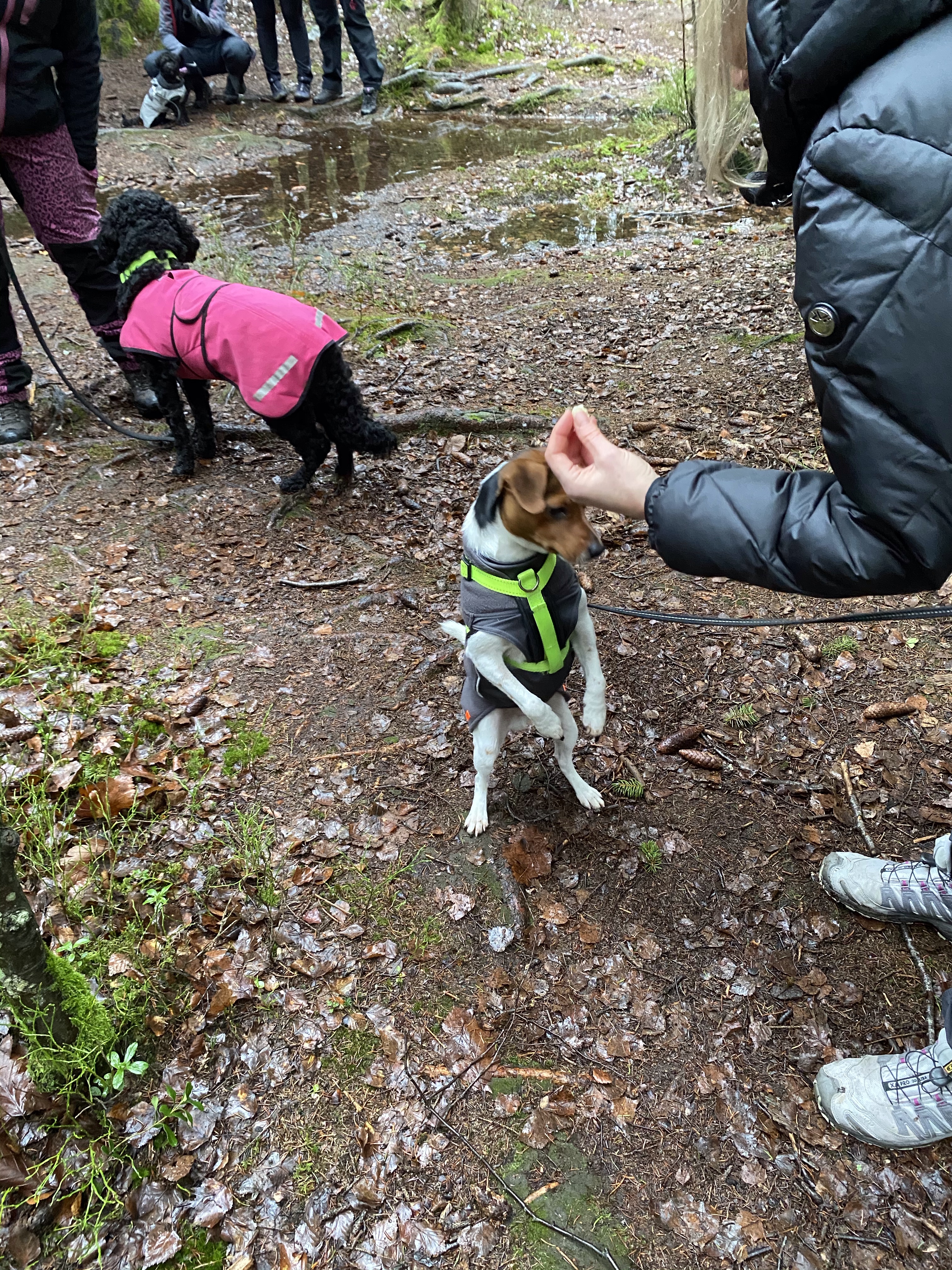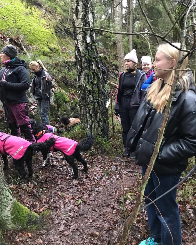 Cecilia hade verkligen fixat och tänkt ut hur man kan aktivera både hussar, mattar och hundar😊. Tipspromenaden var för hussar o mattar. Här var det frågor om vilken hund som har vilken egenhet. Hugo var svaret på frågan om vem som skäller på rötter och andra ”läskiga” saker i skogen😂.