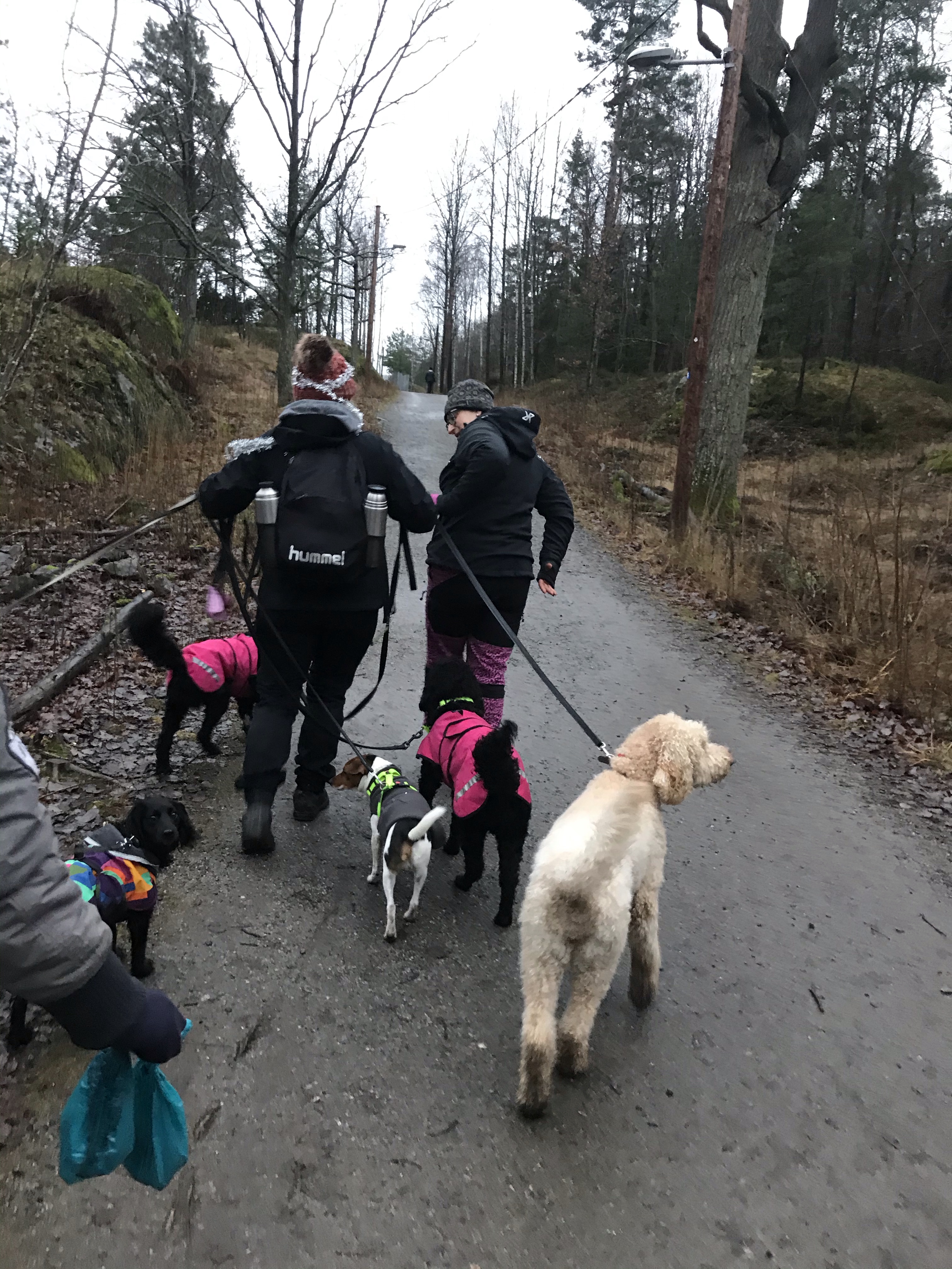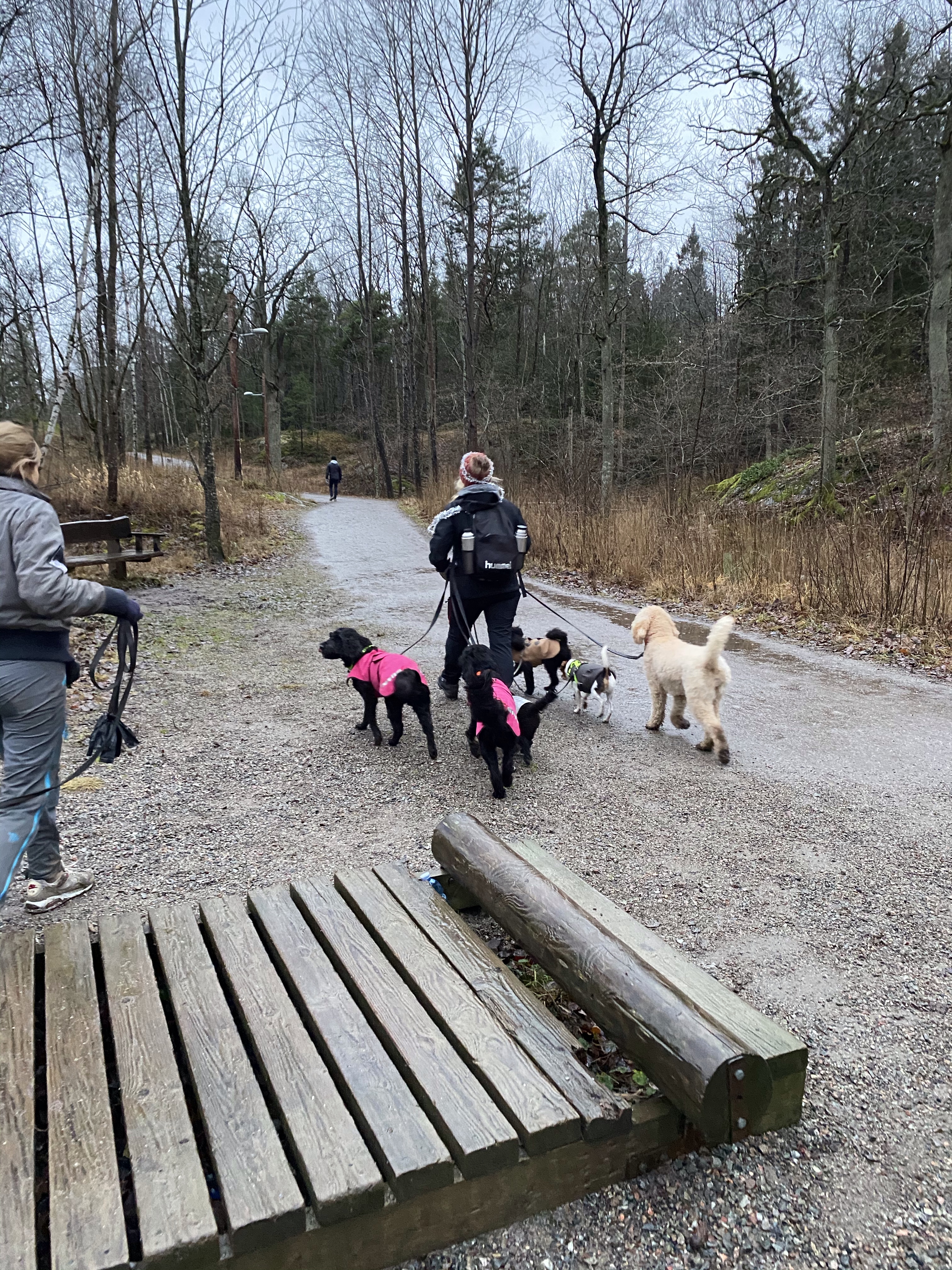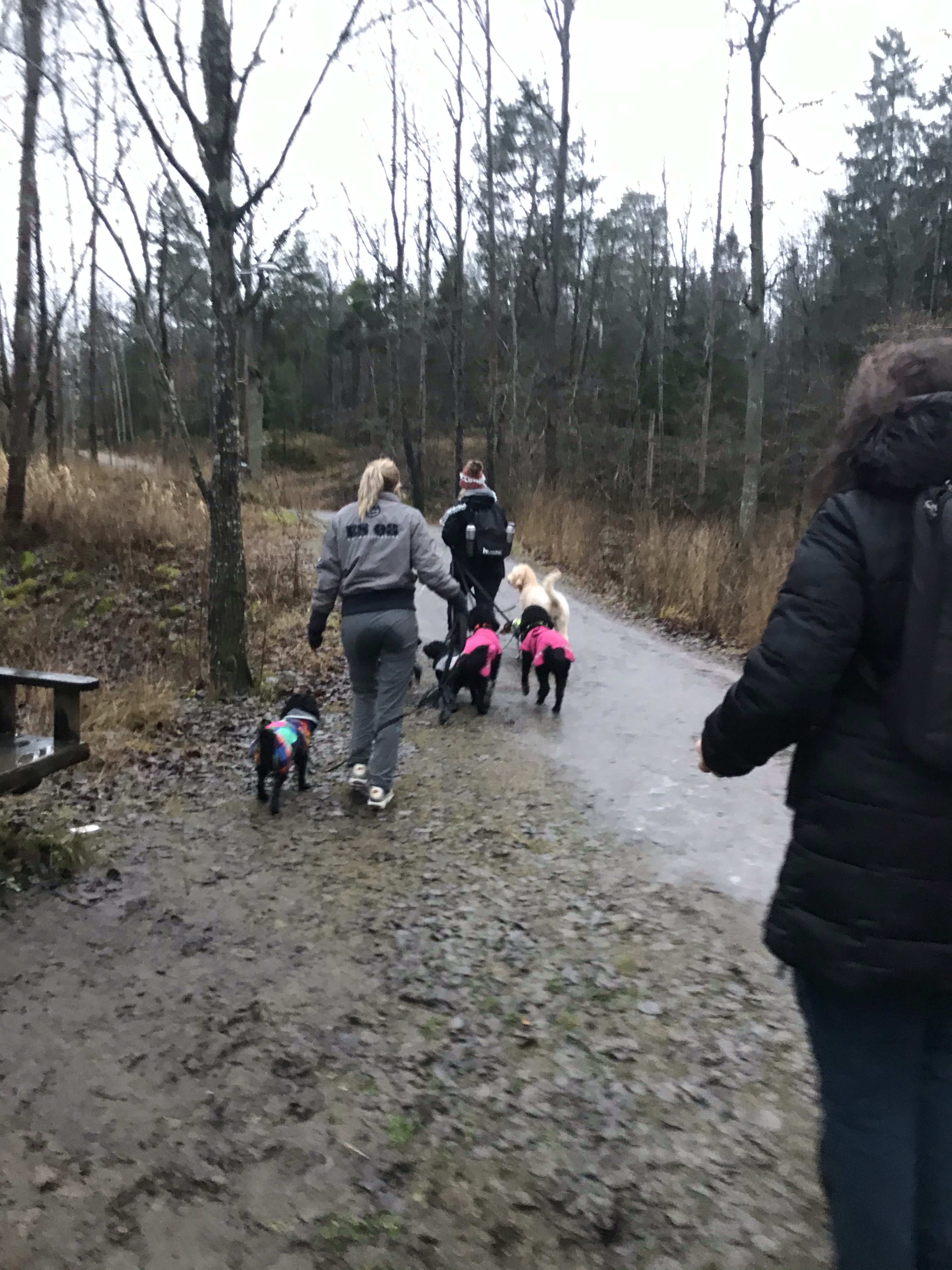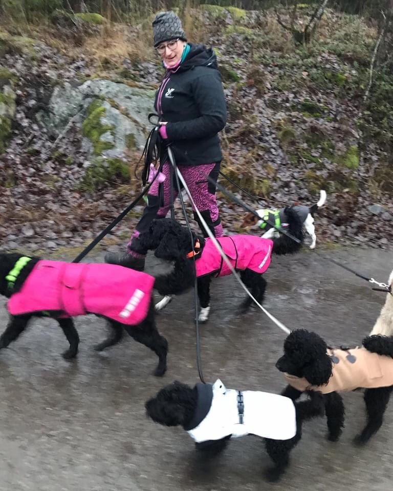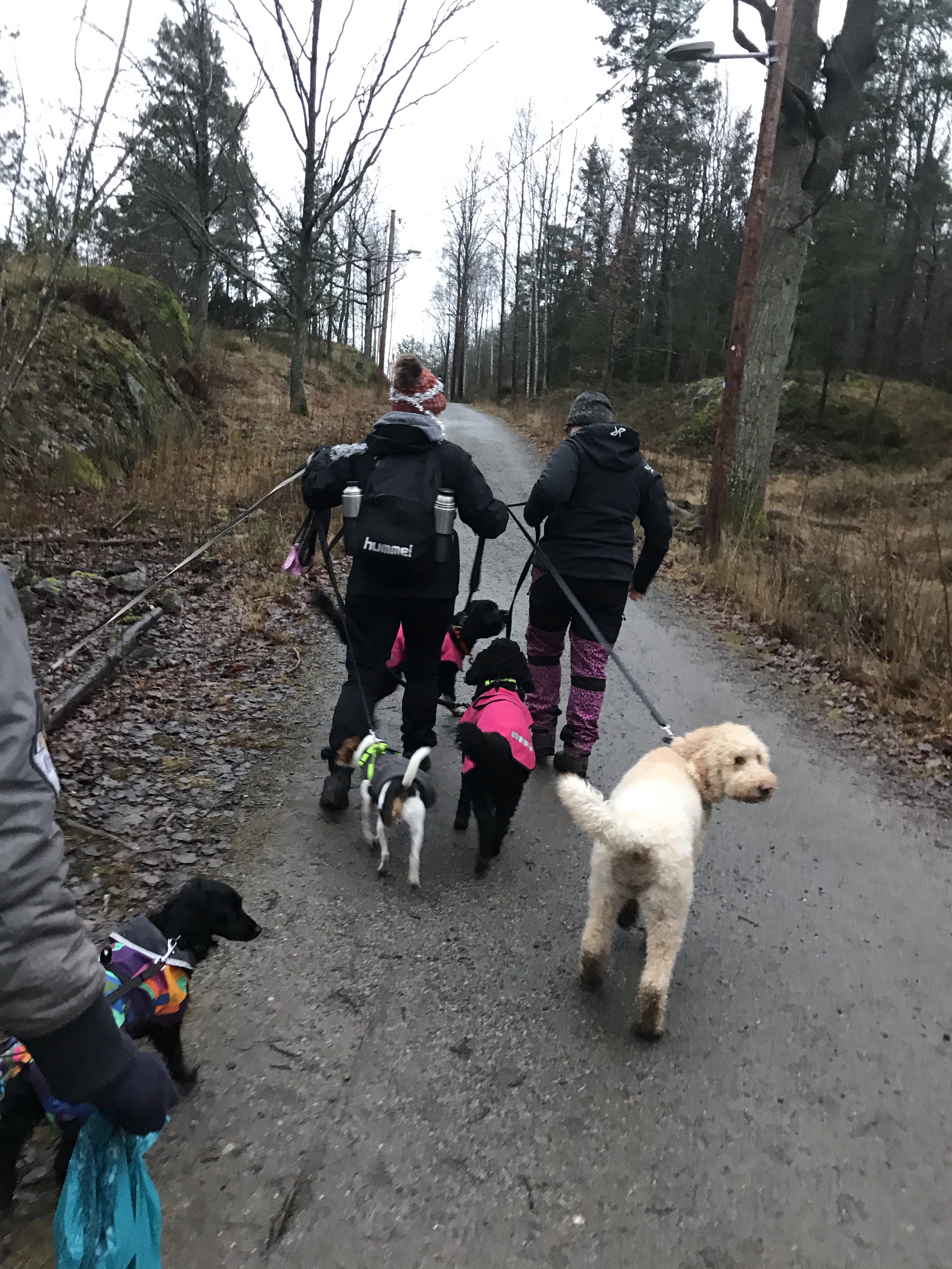 På vägen hem fick man om man ville även prova på att vara dagisfröken och hålla i alla hundarna under en kort promenad. Det vågade varken jag eller Tove😊 men några testade ändå!