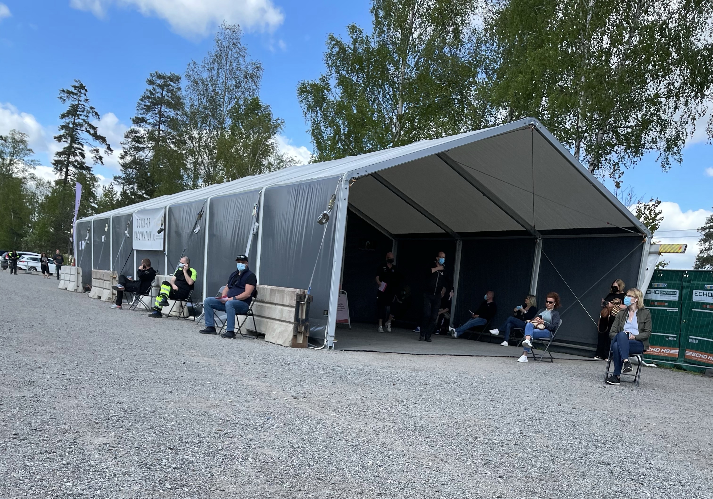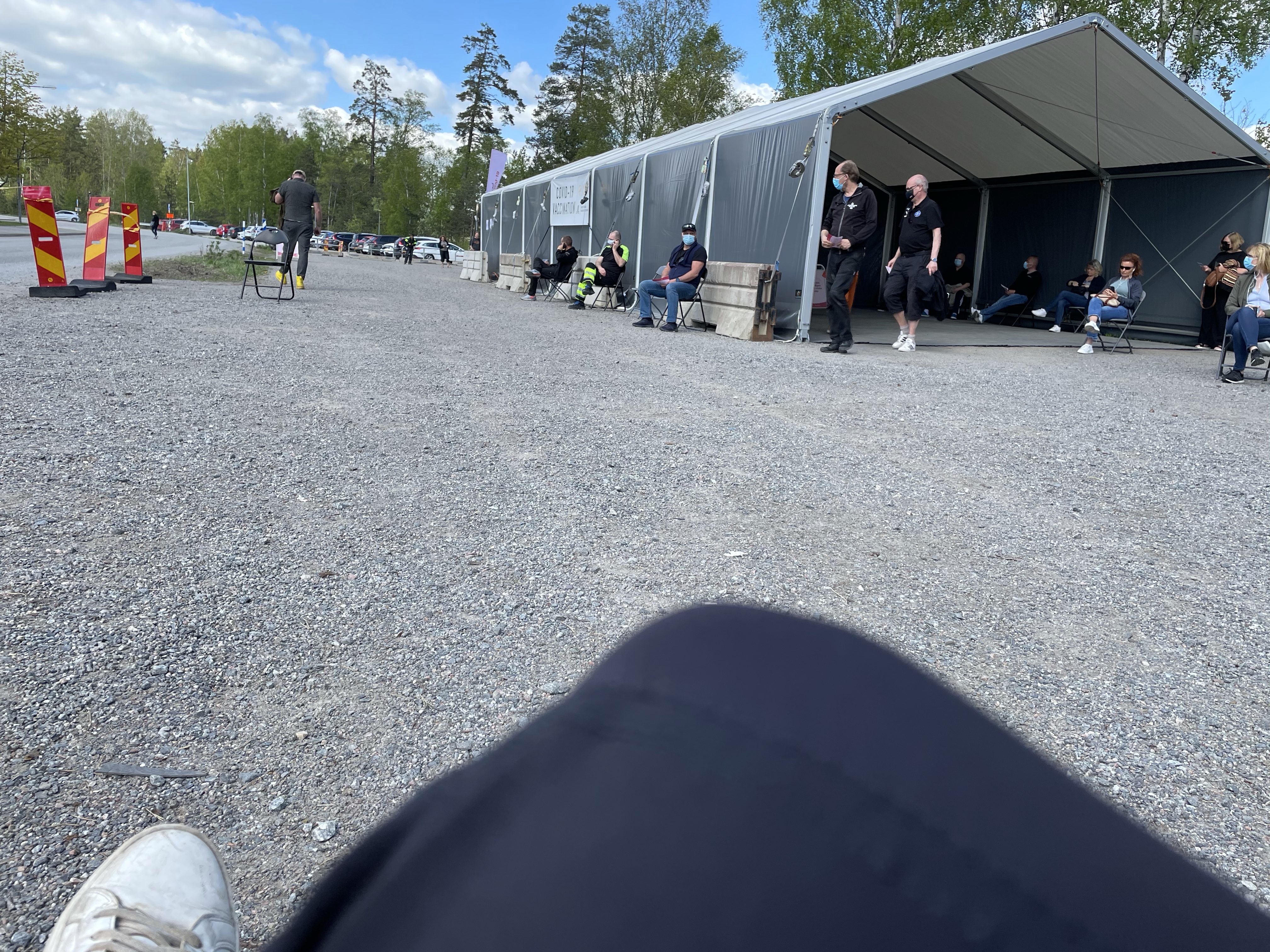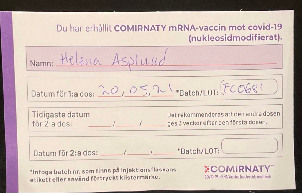 Här var jag, i vaccintältet i Haninge. Magnus fick sin tid i Kista.
