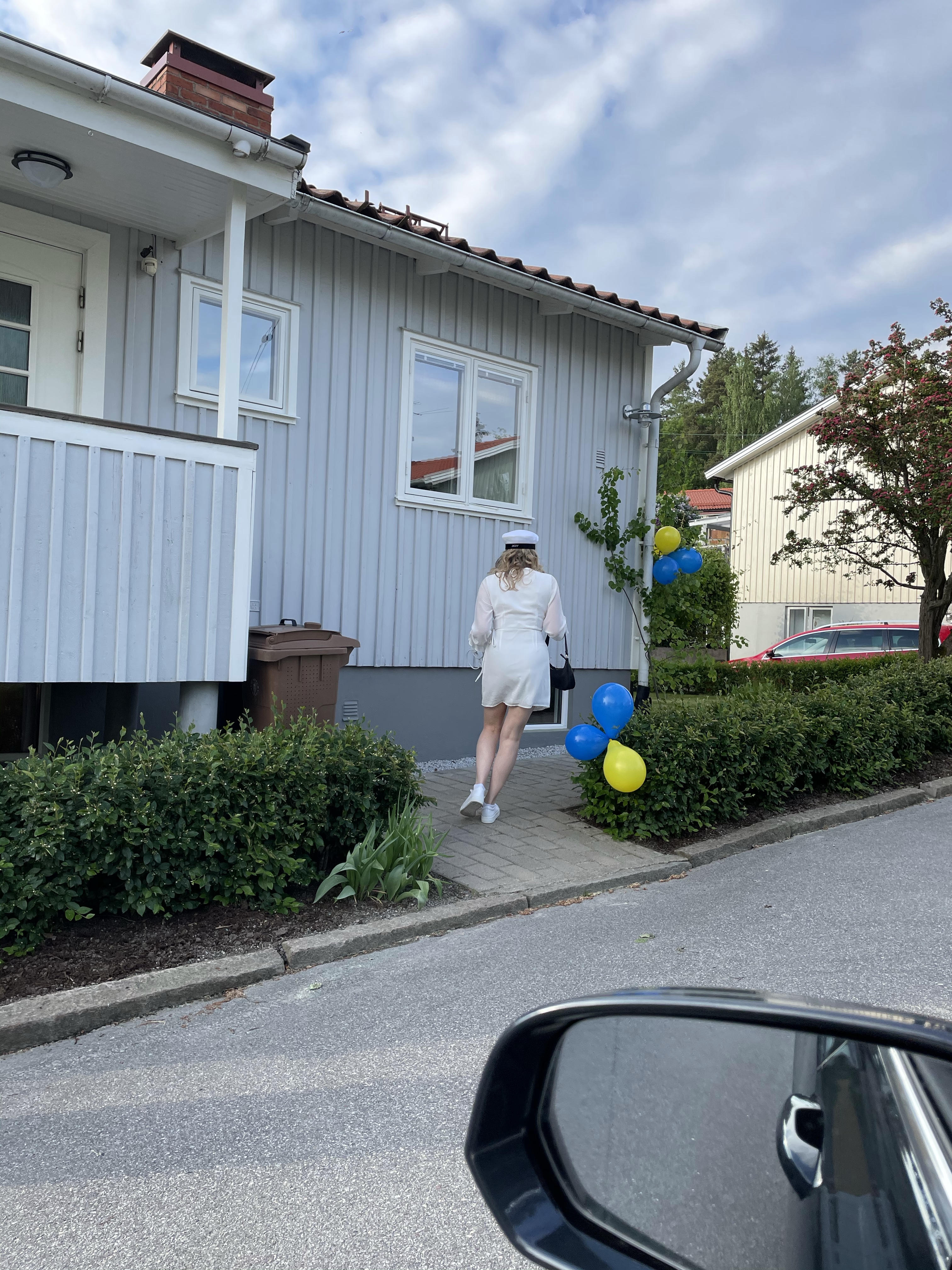 Efter utspring Äkte Tove pÄ en limousintur med klassen innan hon kom hem till mottagningen hemma hos oss.