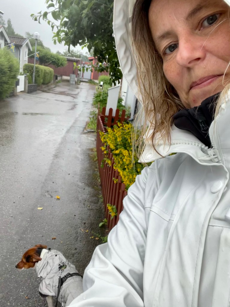 Regnet verkligen öste ner men Hugo och jag fick ändå trotsa vädret och ge oss ut på en liten morgonpromenad. Det finns inget dåligt väder det finns bara dåliga kläder som det heter💪🤓
