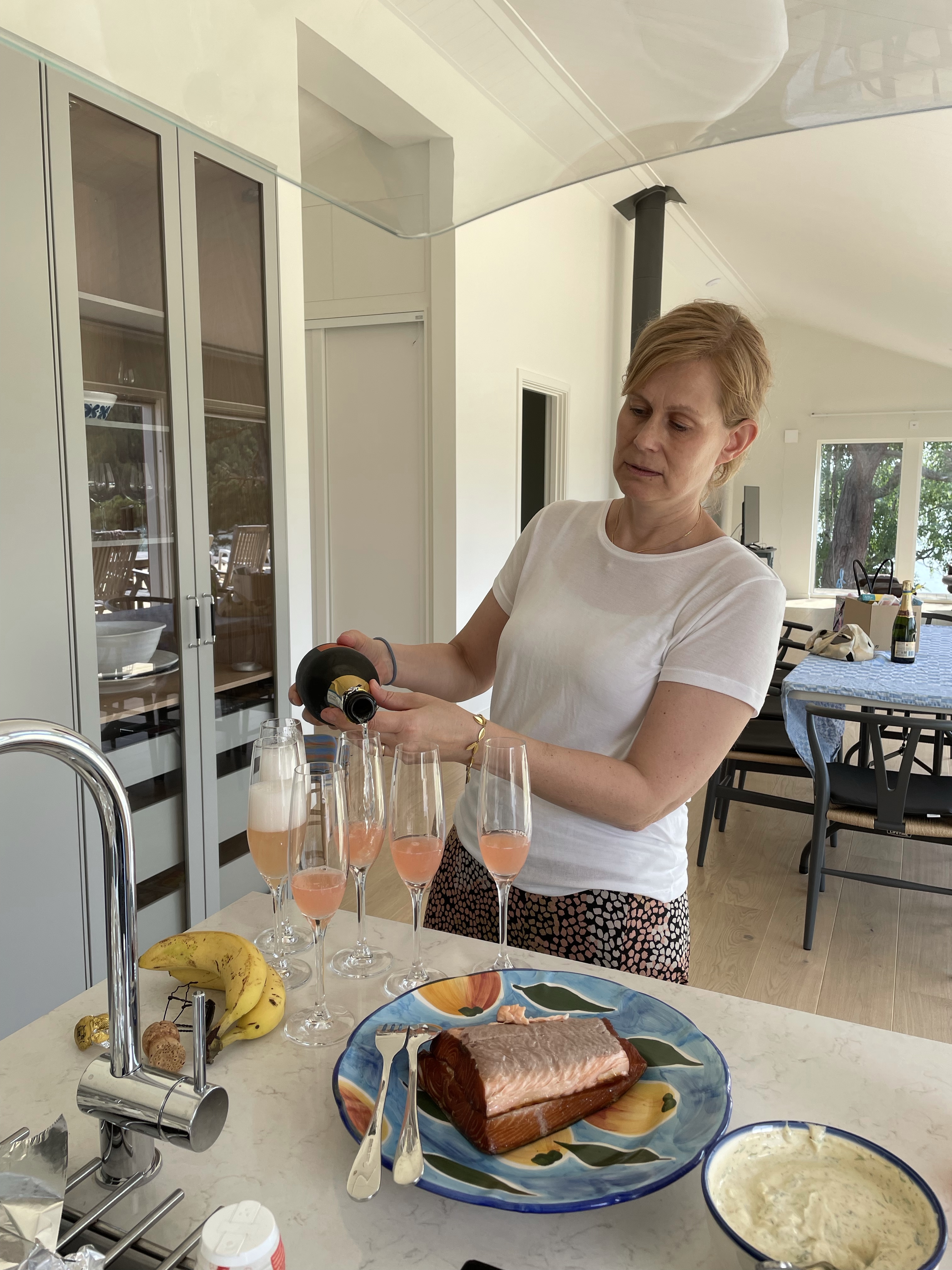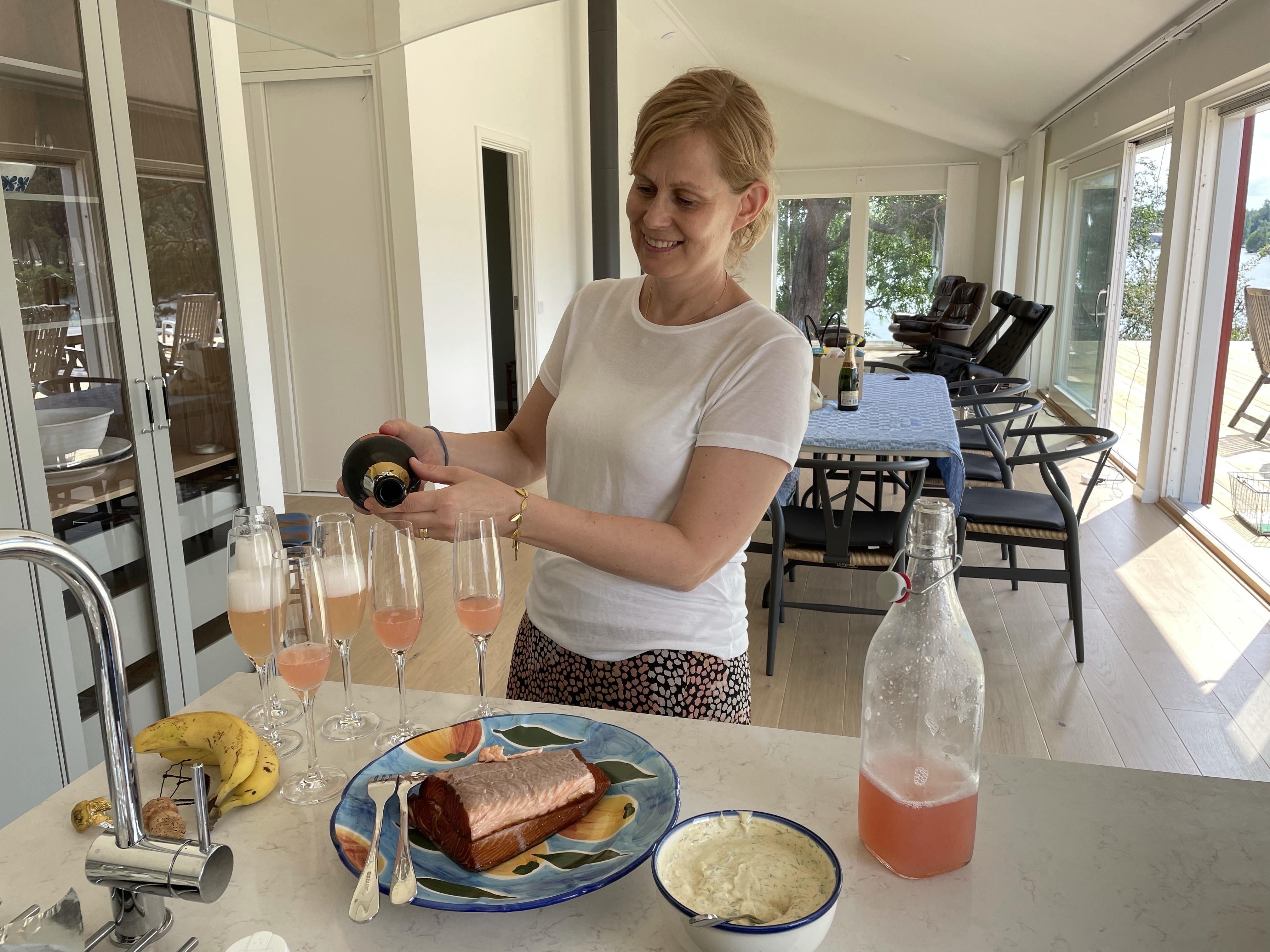 Holmarna hade med sig en sommardrink med hemgjord rabarbersaft och bubbel.