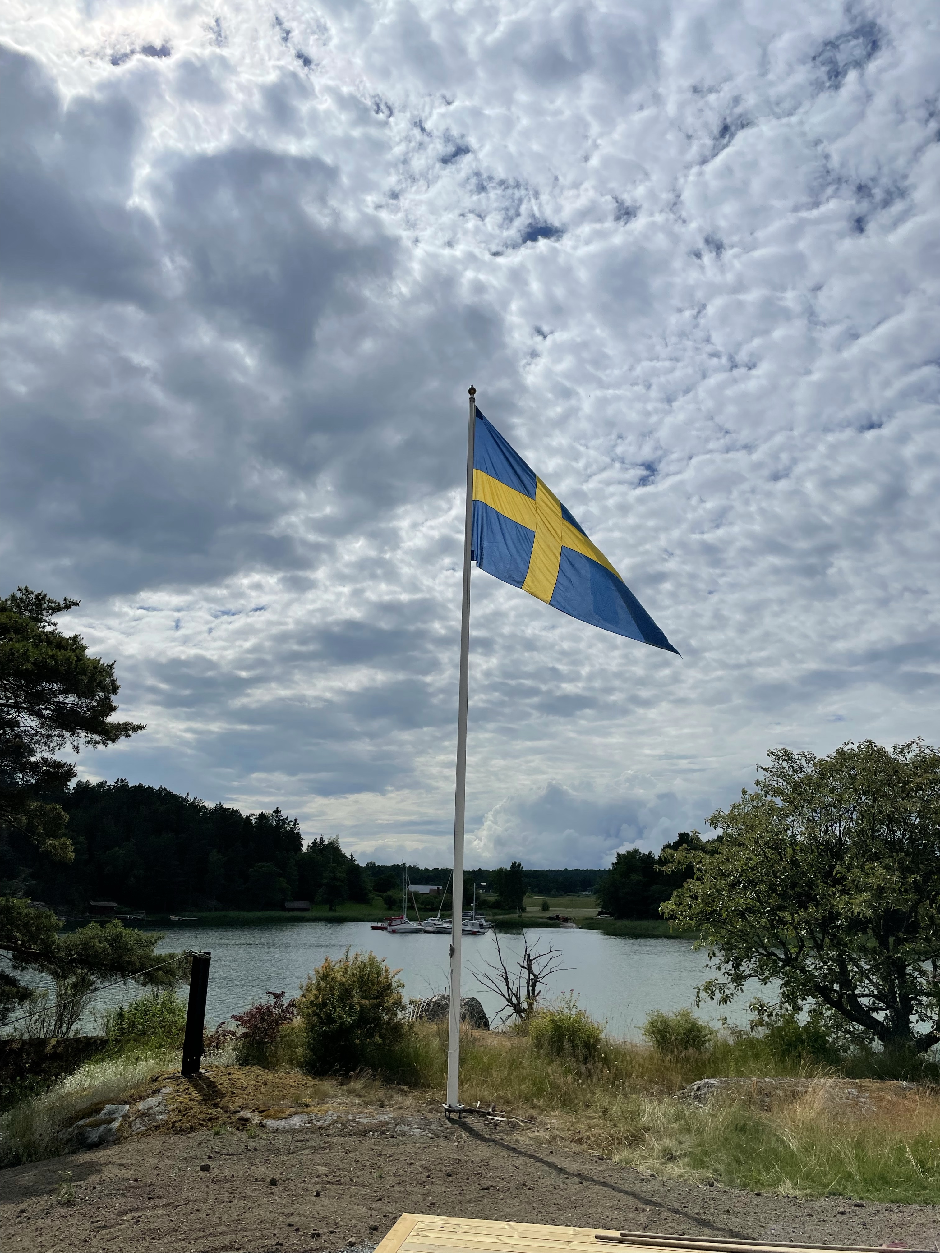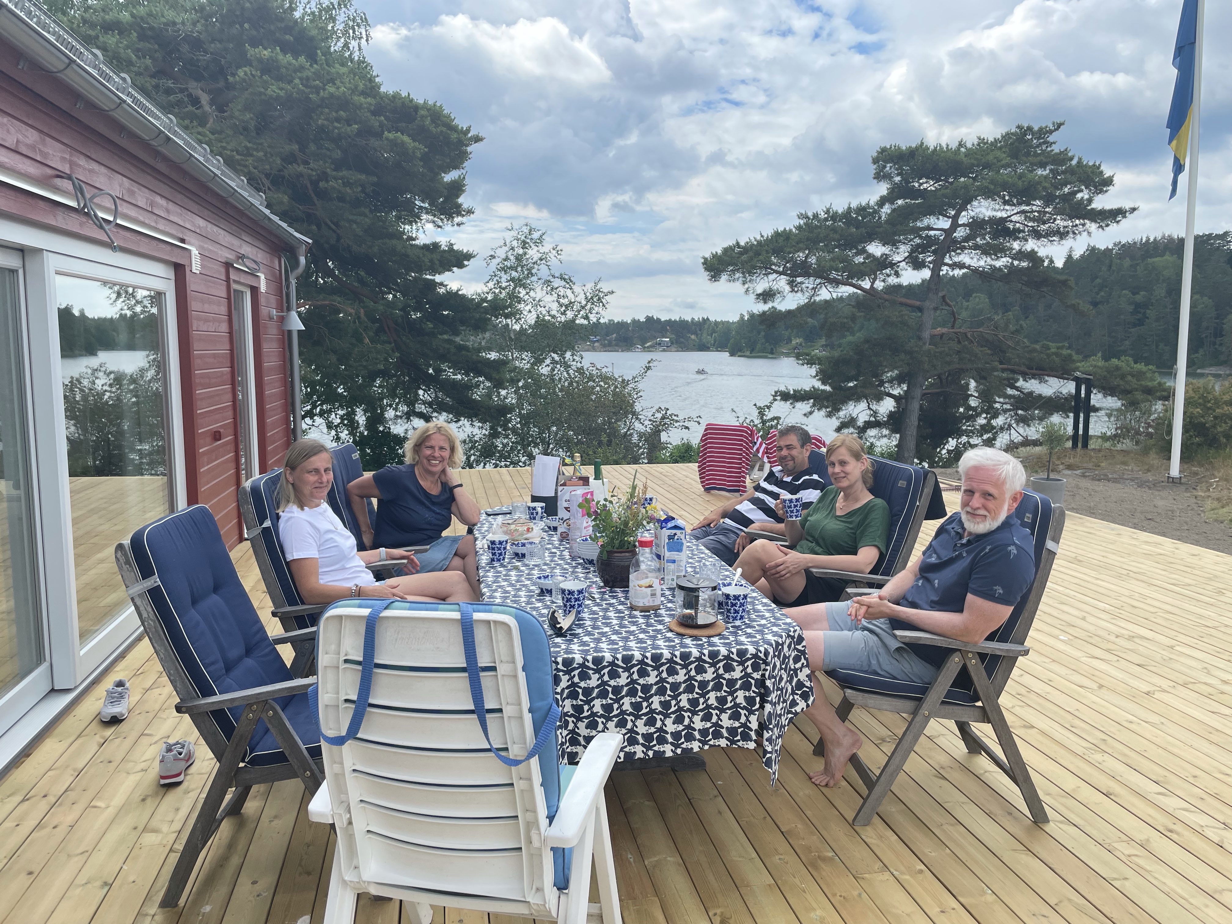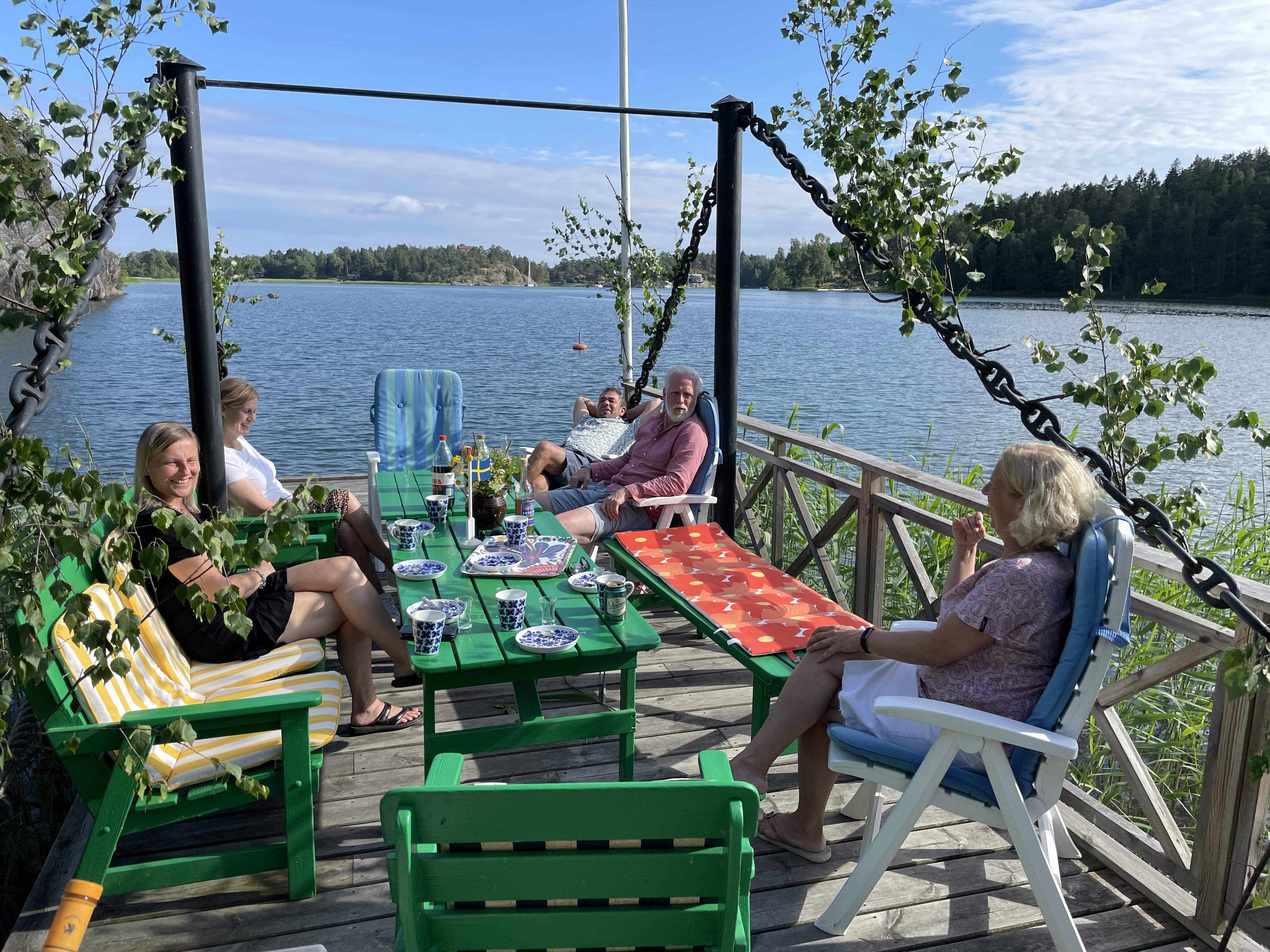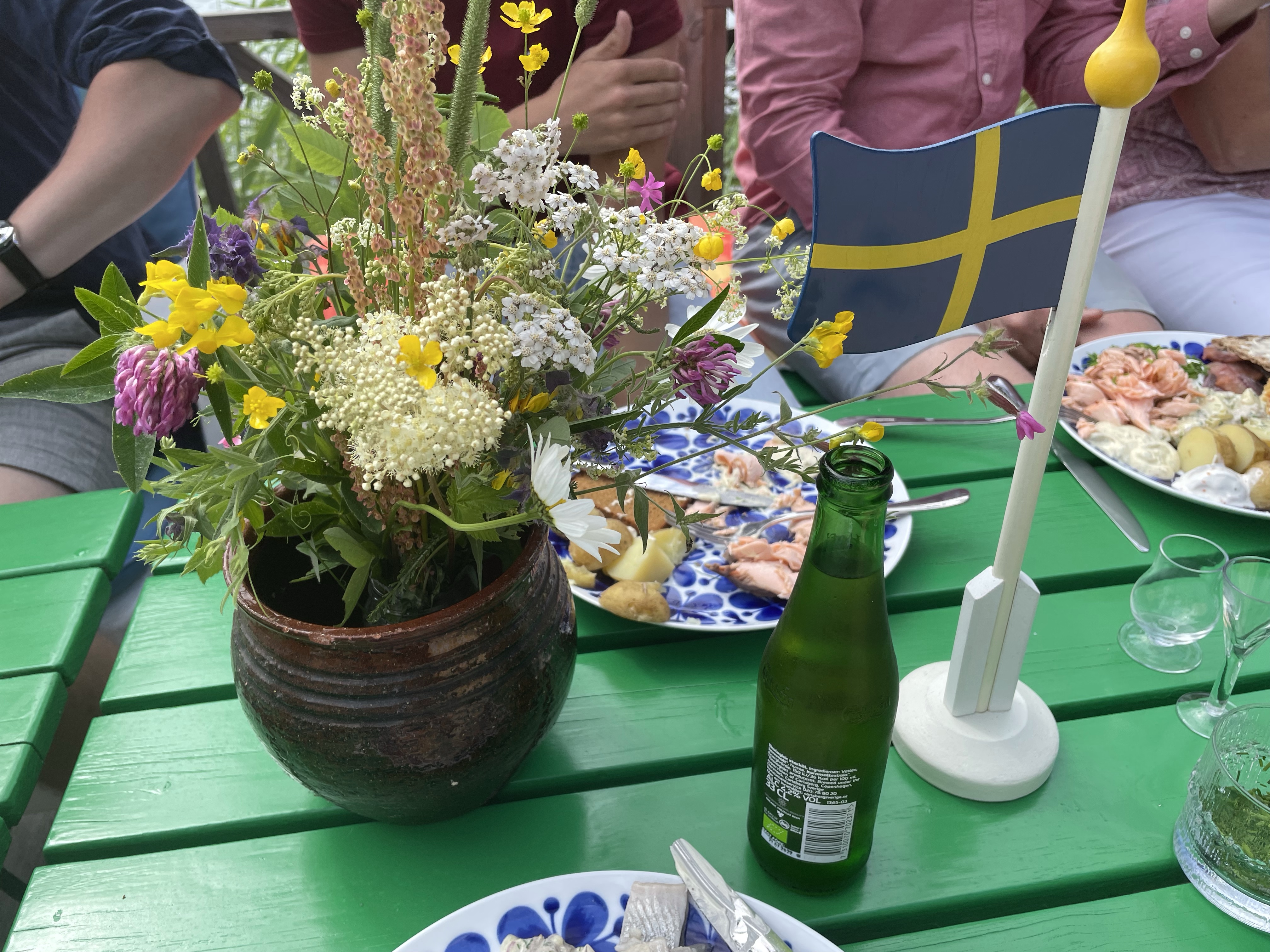 Framåt lunch hade det slutat regna och vi packade vi in oss i bilen och åkte ut till Muskö för att fira midsommar med vänner, och där var det ännu finare väder! Tove hängde med ut i egen bil , dvs MIN bil☝️🤨, just saying…, och åt sillunch med oss innan hon åkte vidare för att fira midsommar med kompisarna. Lina stannade hemma och skulle också fira med kompisar. Nya tider nu😐