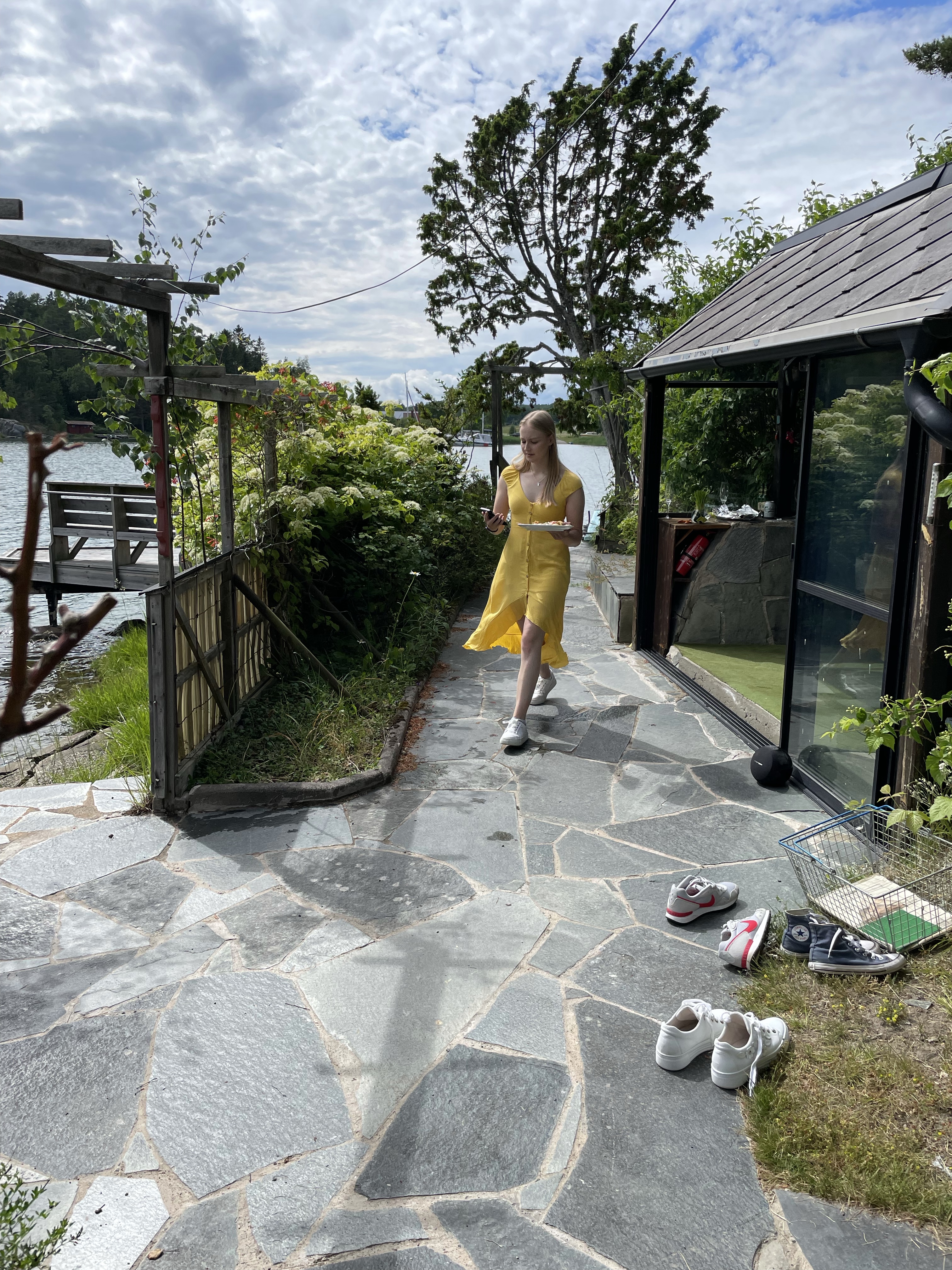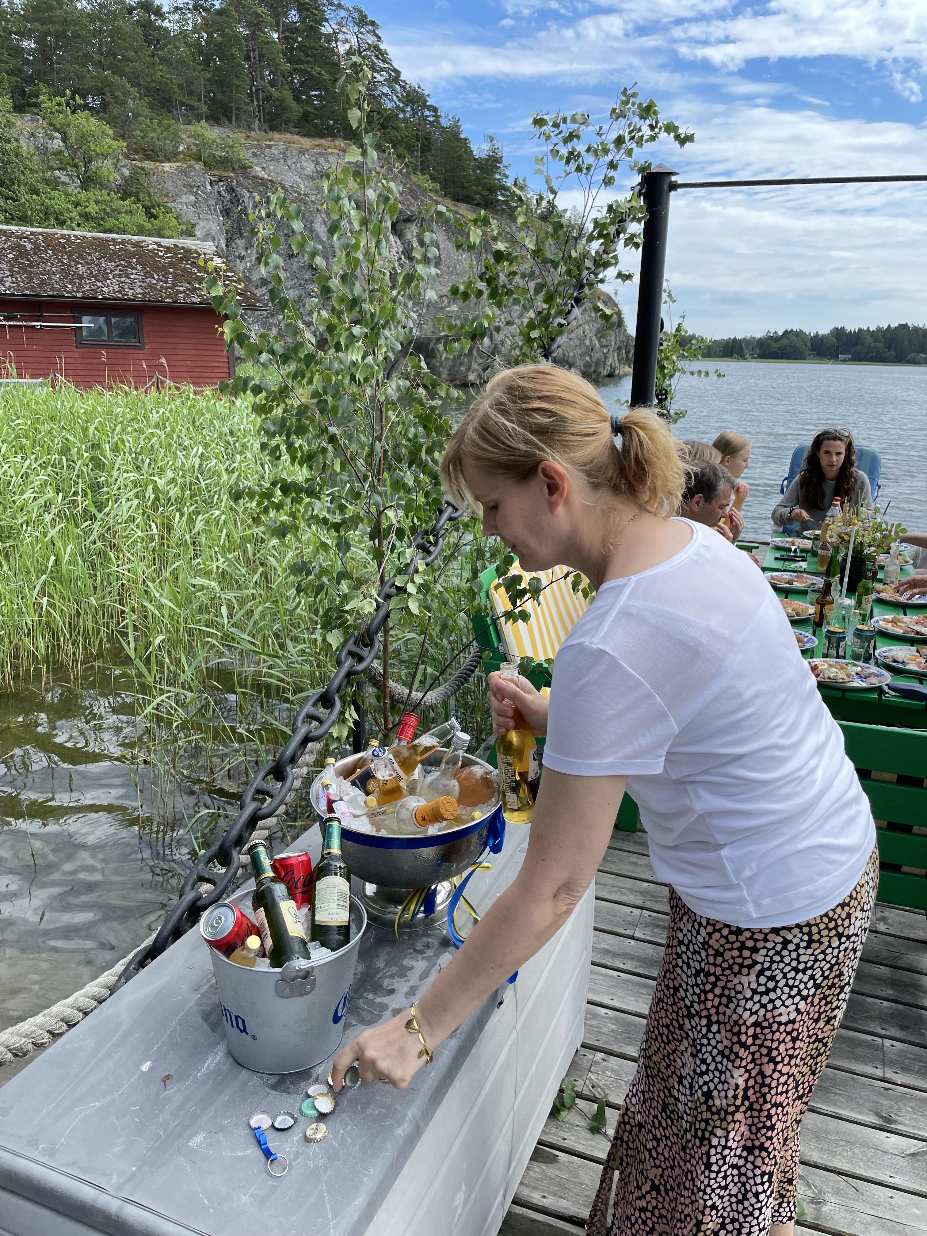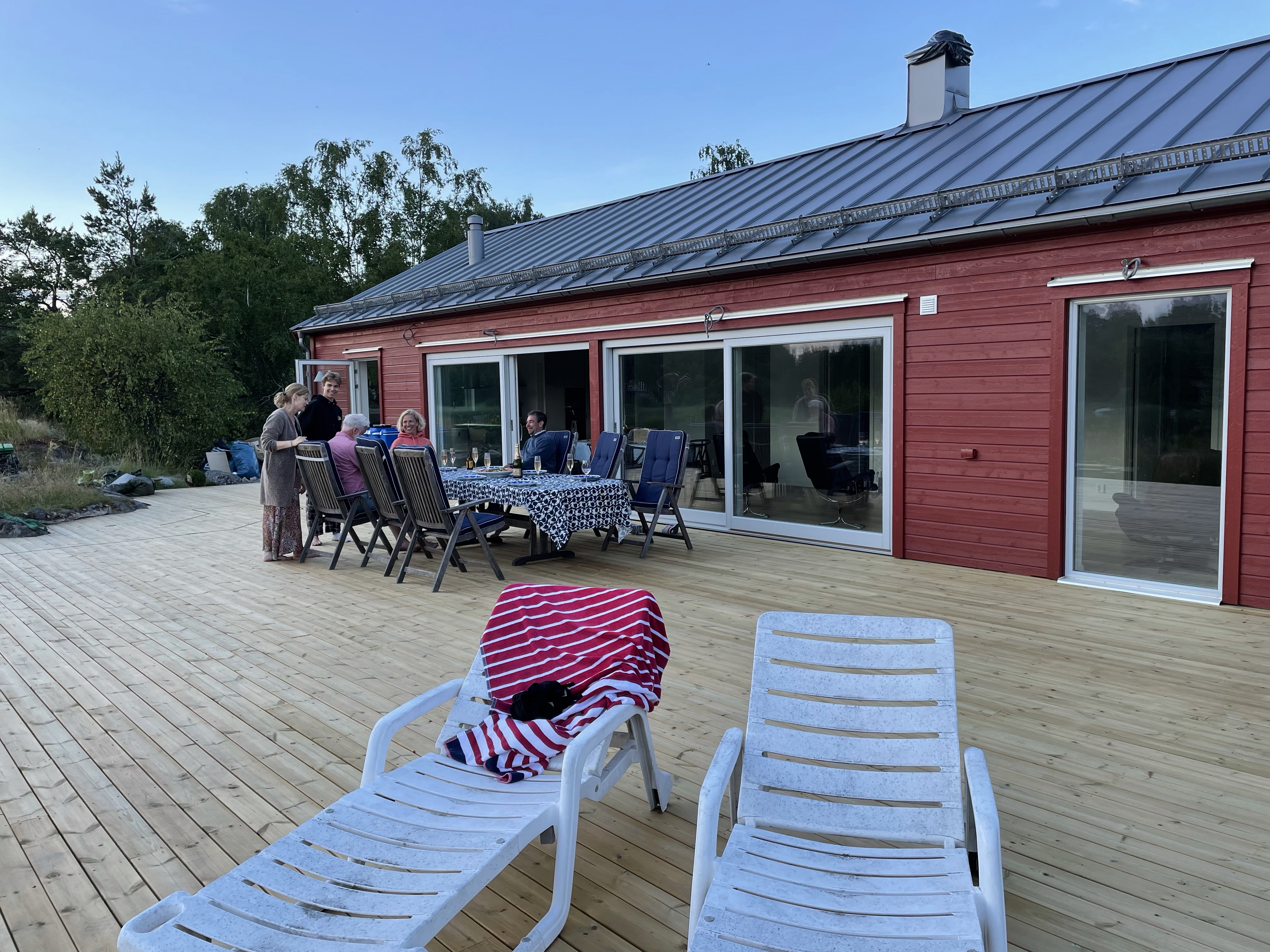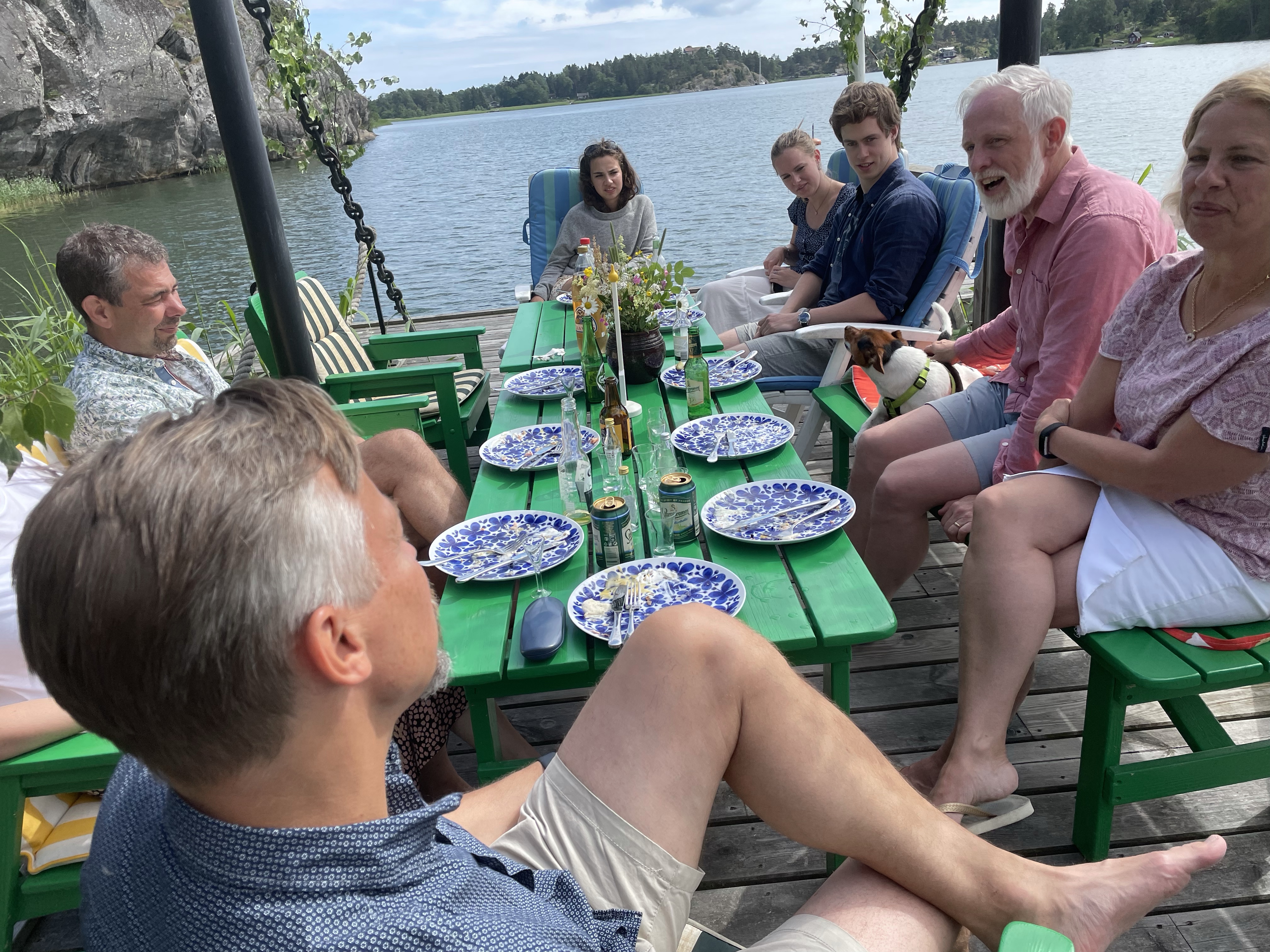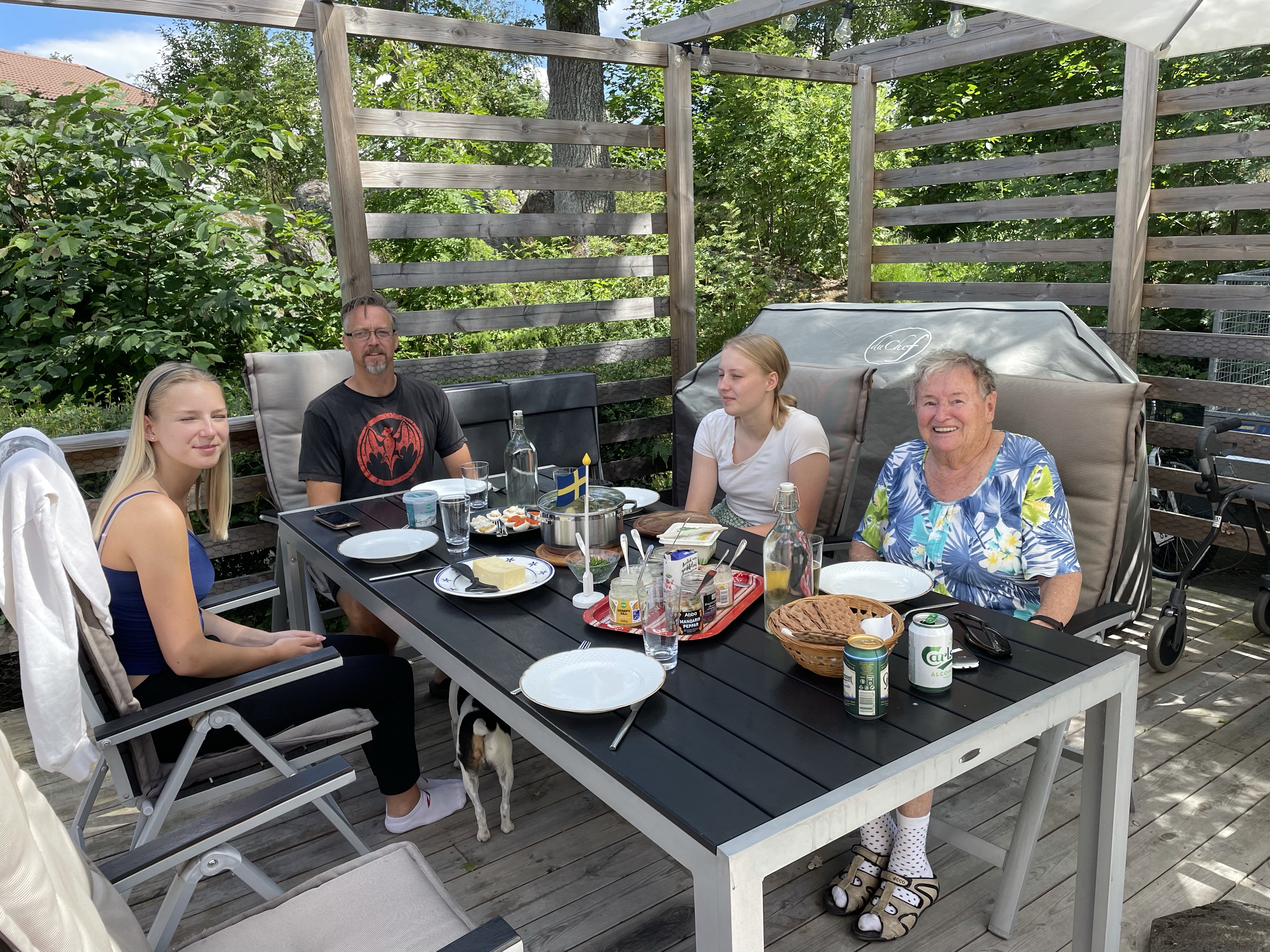 Framåt lunch hade det slutat regna och vi packade vi in oss i bilen och åkte ut till Muskö för att fira midsommar med vänner, och där var det ännu finare väder! Tove hängde med ut i egen bil , dvs MIN bil☝️🤨, just saying…, och åt sillunch med oss innan hon åkte vidare för att fira midsommar med kompisarna. Lina stannade hemma och skulle också fira med kompisar. Nya tider nu😐