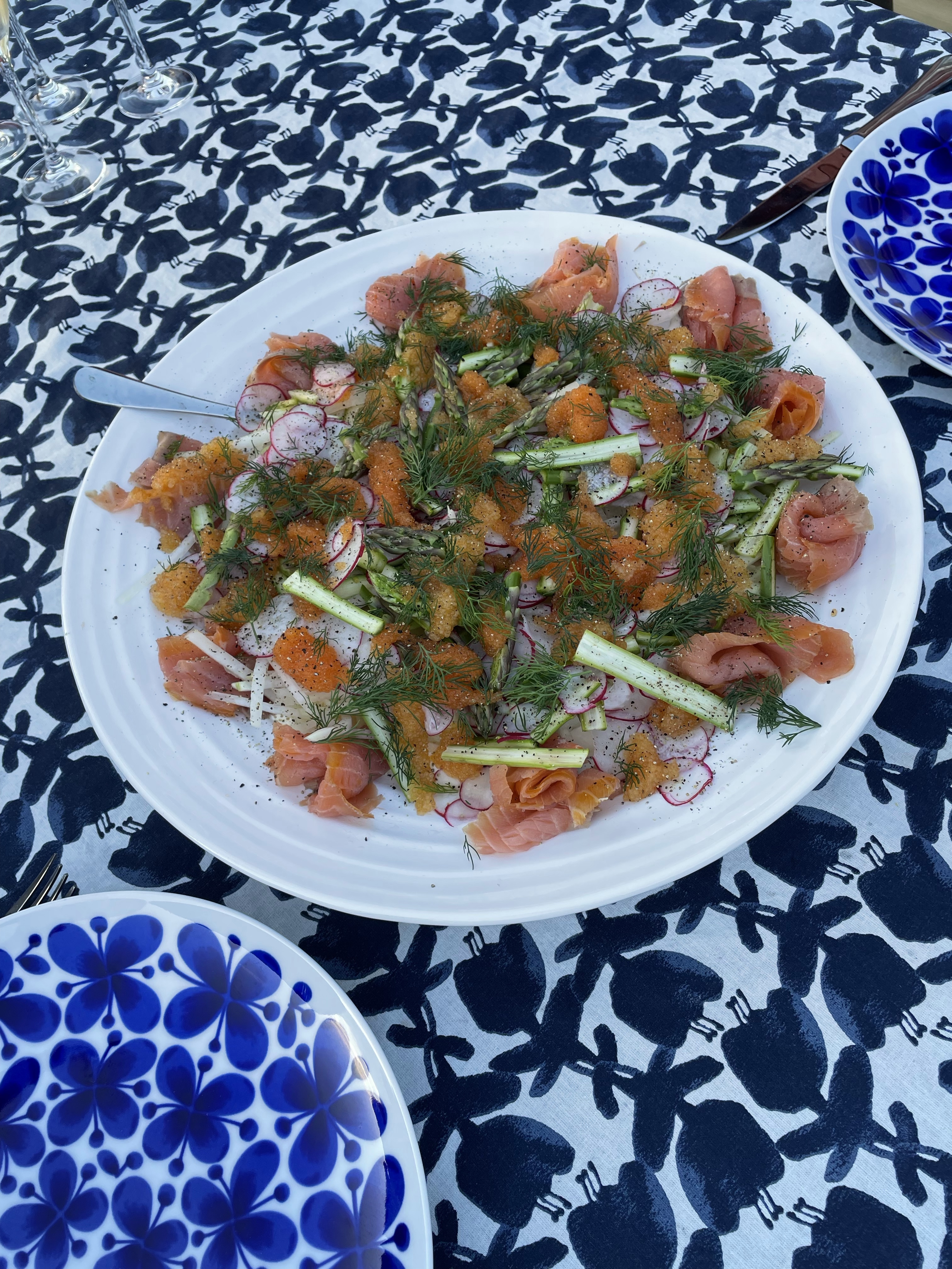 Det blev Kålrabbi med smetana och sikrom fast med lax, rädisor och sparris tillagt.
