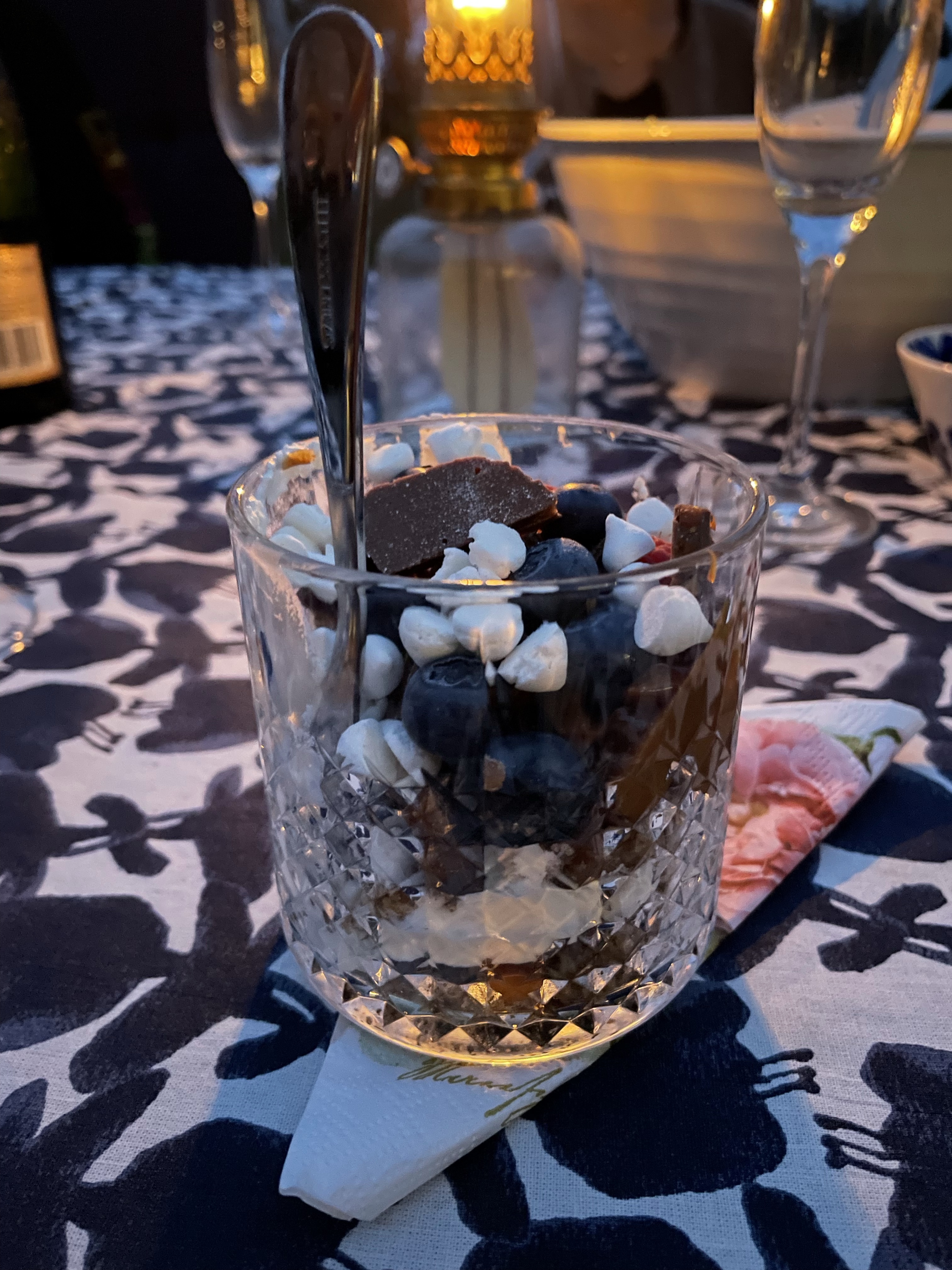Och så fixade Holmsarna god efterrätt med bär, digestive, dajm, grädde, kondenserad mjölk och maränger! Sen var man verkligen tokmätt!!