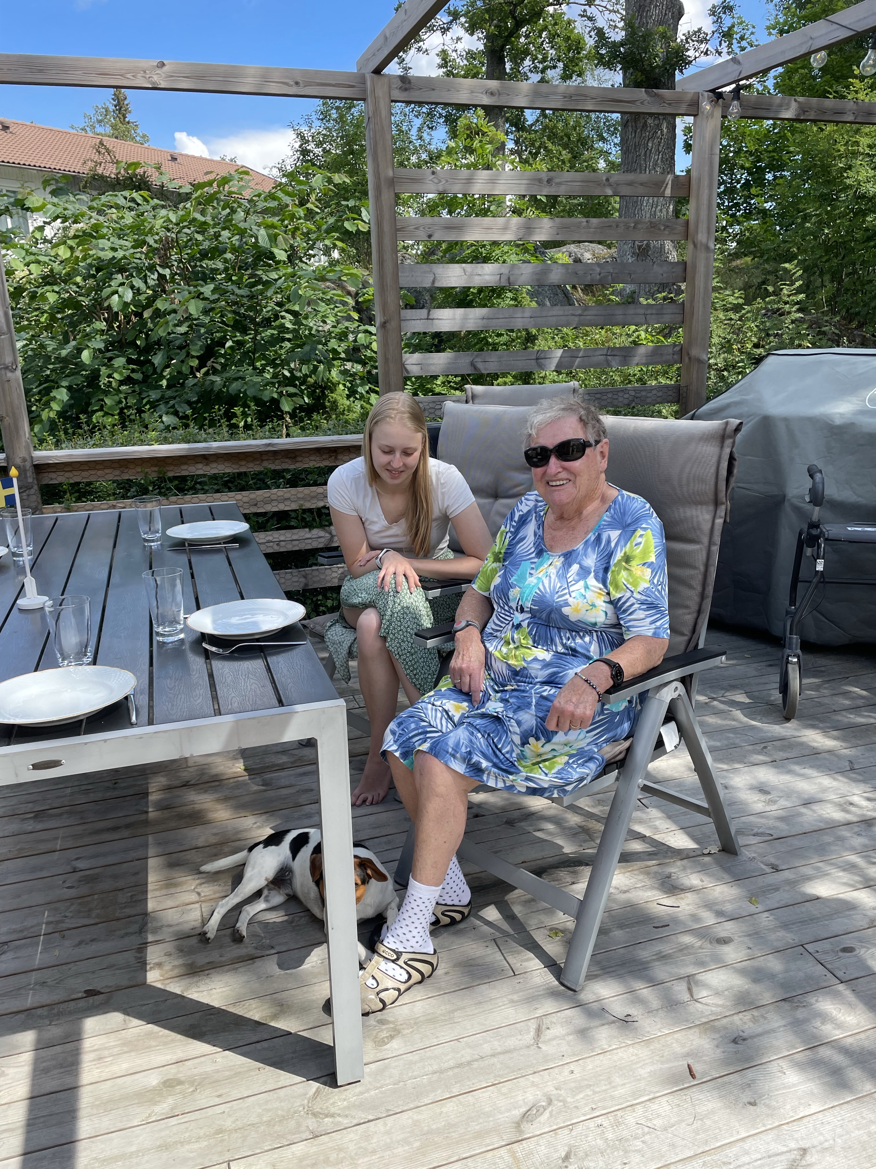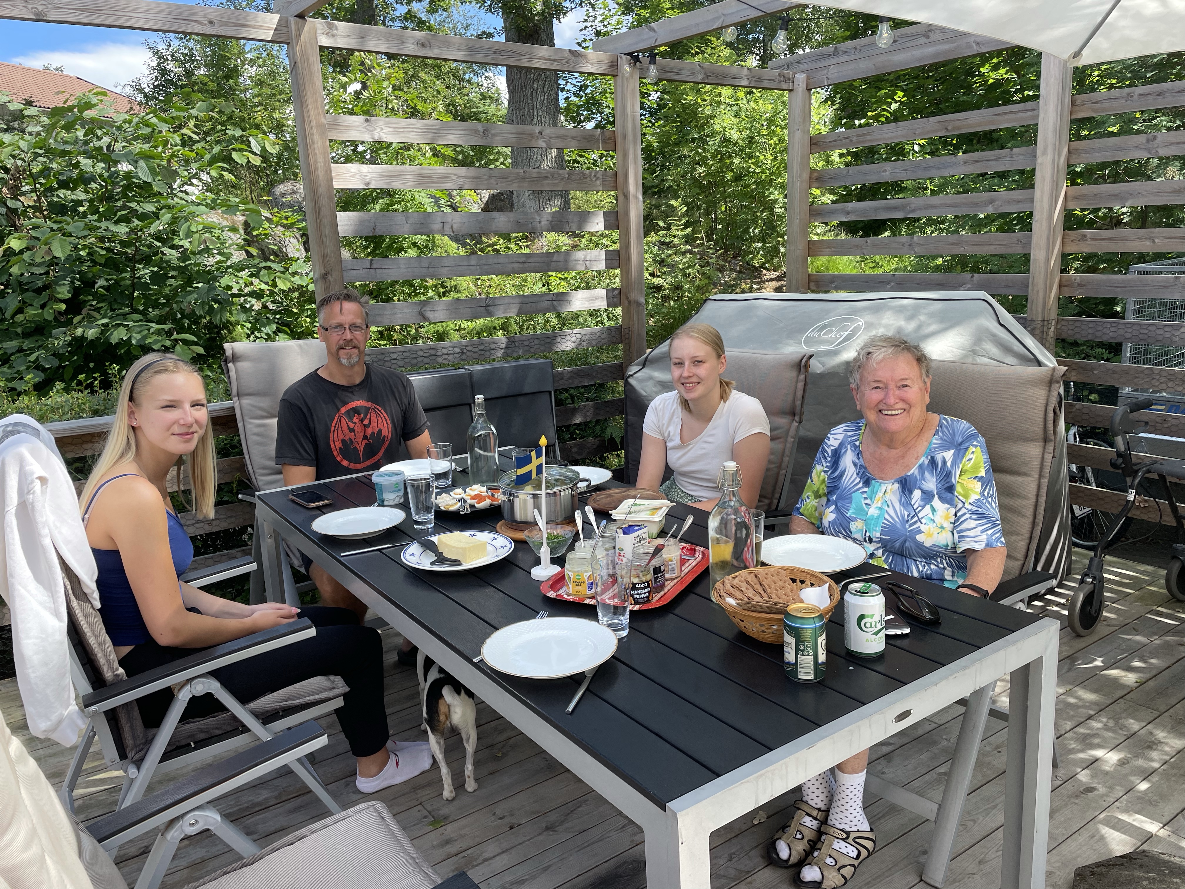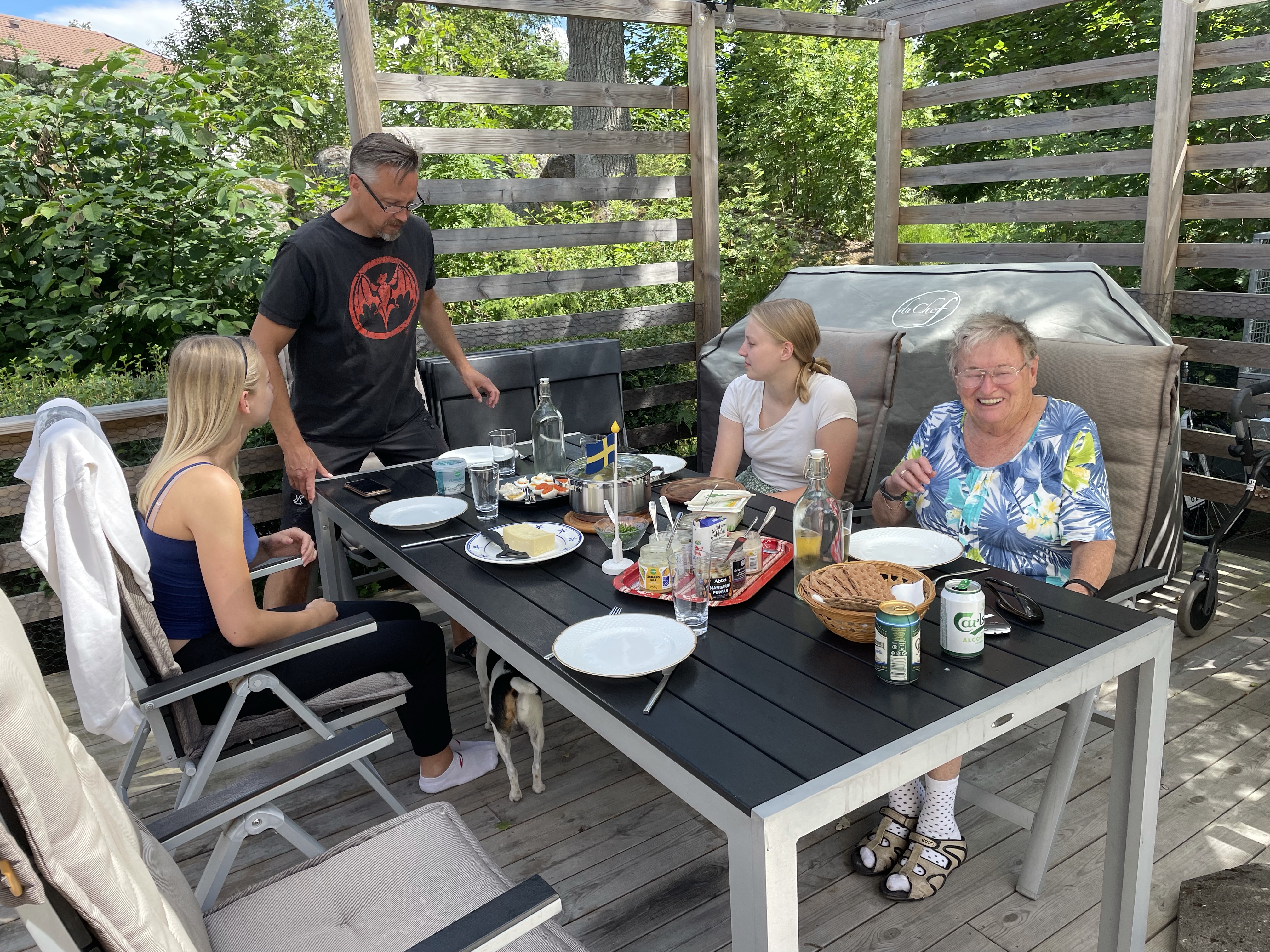 Idag har vi också haft en sen midsommarsillunch med mamma här hemma hos oss. Vi satt ute i solen nästan hela tiden med åskan mullrandes bredvid oss. Vi klarade oss hela dagen med bara 5 droppar regn!👏