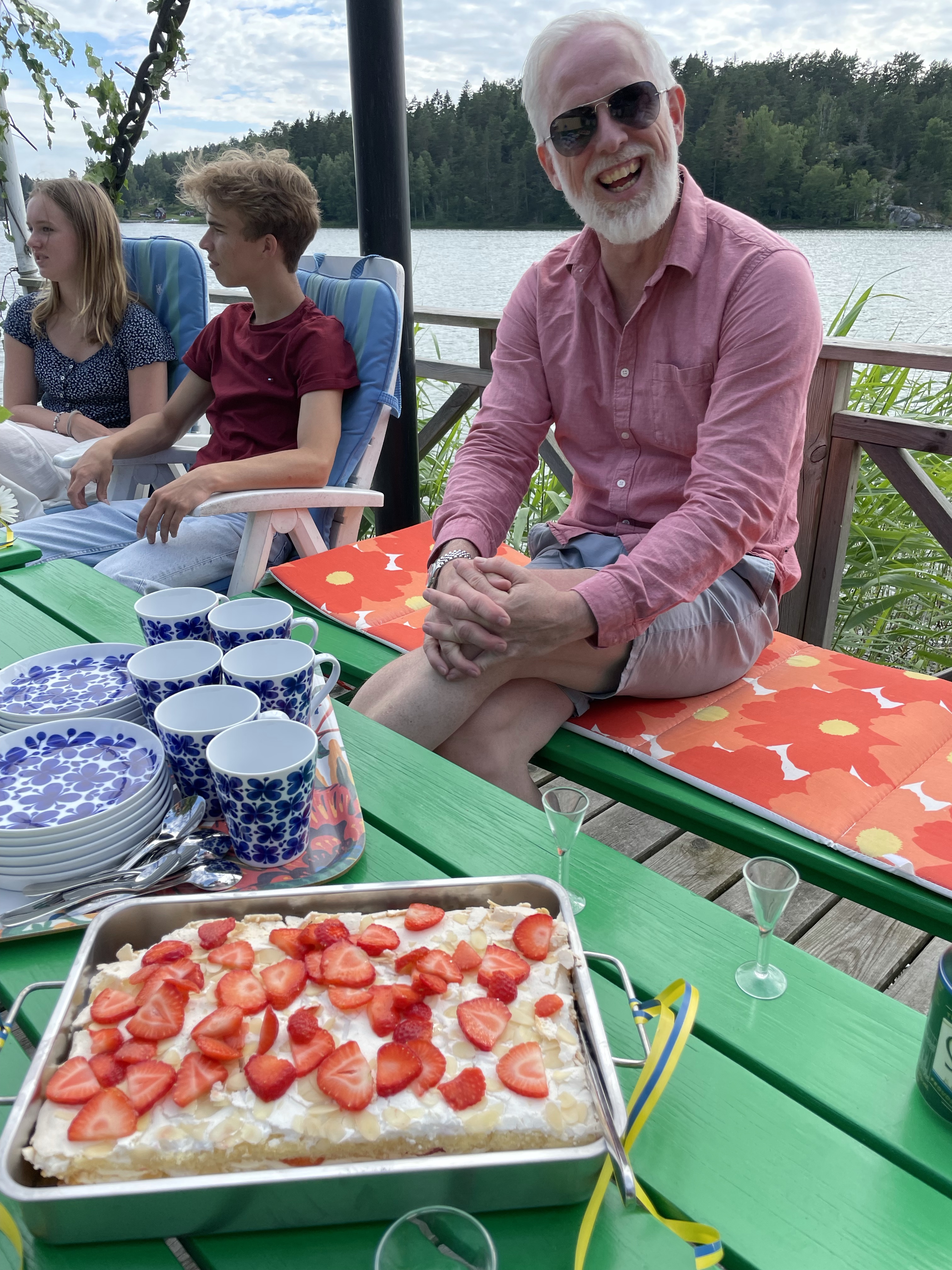 Efter sillunchen bjöd Holmarna på midsommartårta och kaffe.