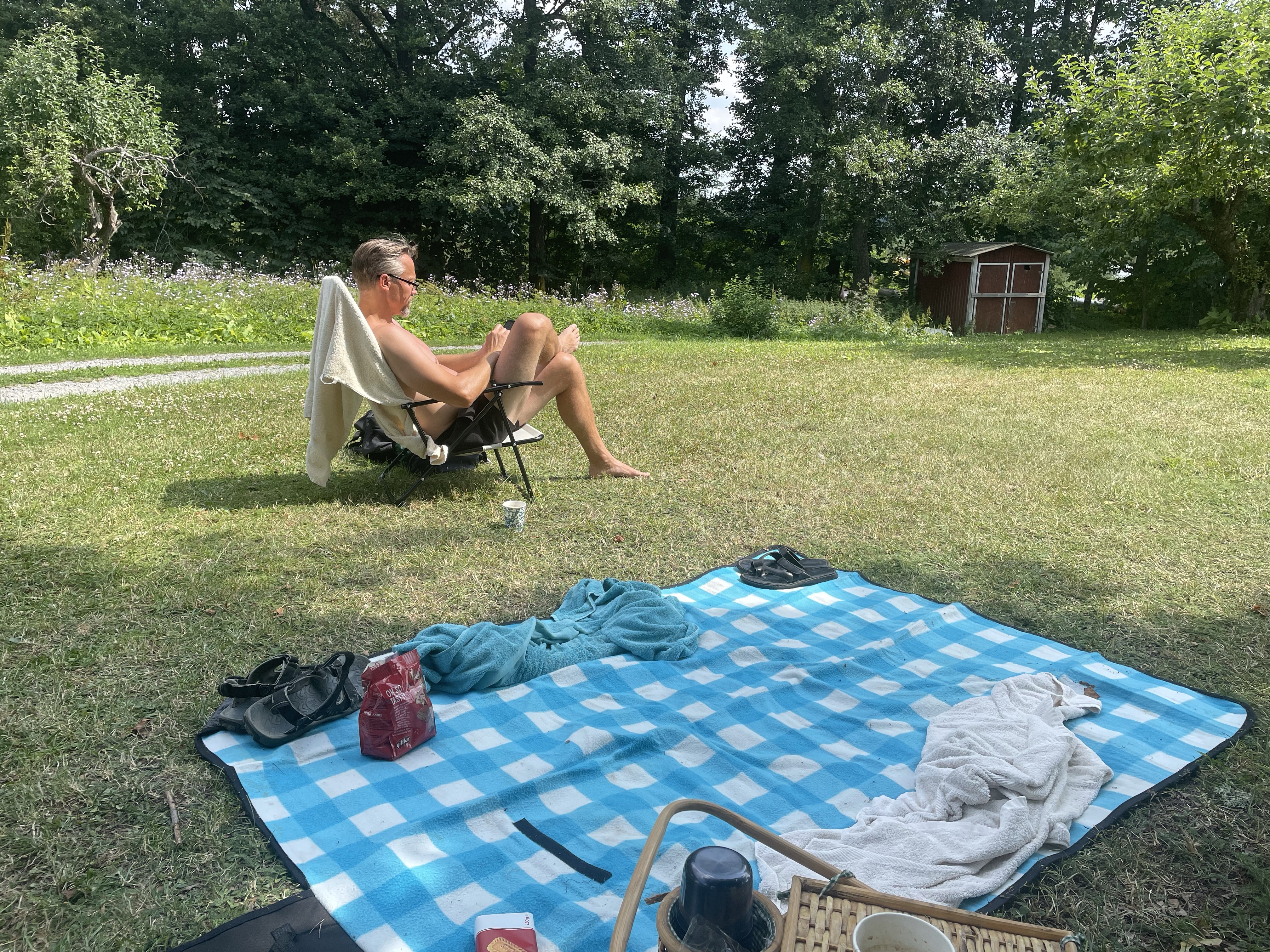 Nu har vi hÀngt nere vid badet i tvÄ dagar. JÀtteskönt verkligen! Det som ocksÄ Àr bra Àr att vi har hittat ett bra stÀlle dit Hugo kan följa med ocksÄ. Visserligen Àr hundar faktiskt vÀlkomna pÄ samtliga offentliga utomhusbad i Linköping men det kÀnns ÀndÄ inte sÄ bra att dra med Hugo till vanliga badet. Det Àr mycket folk och vÀldigt lite skugga.