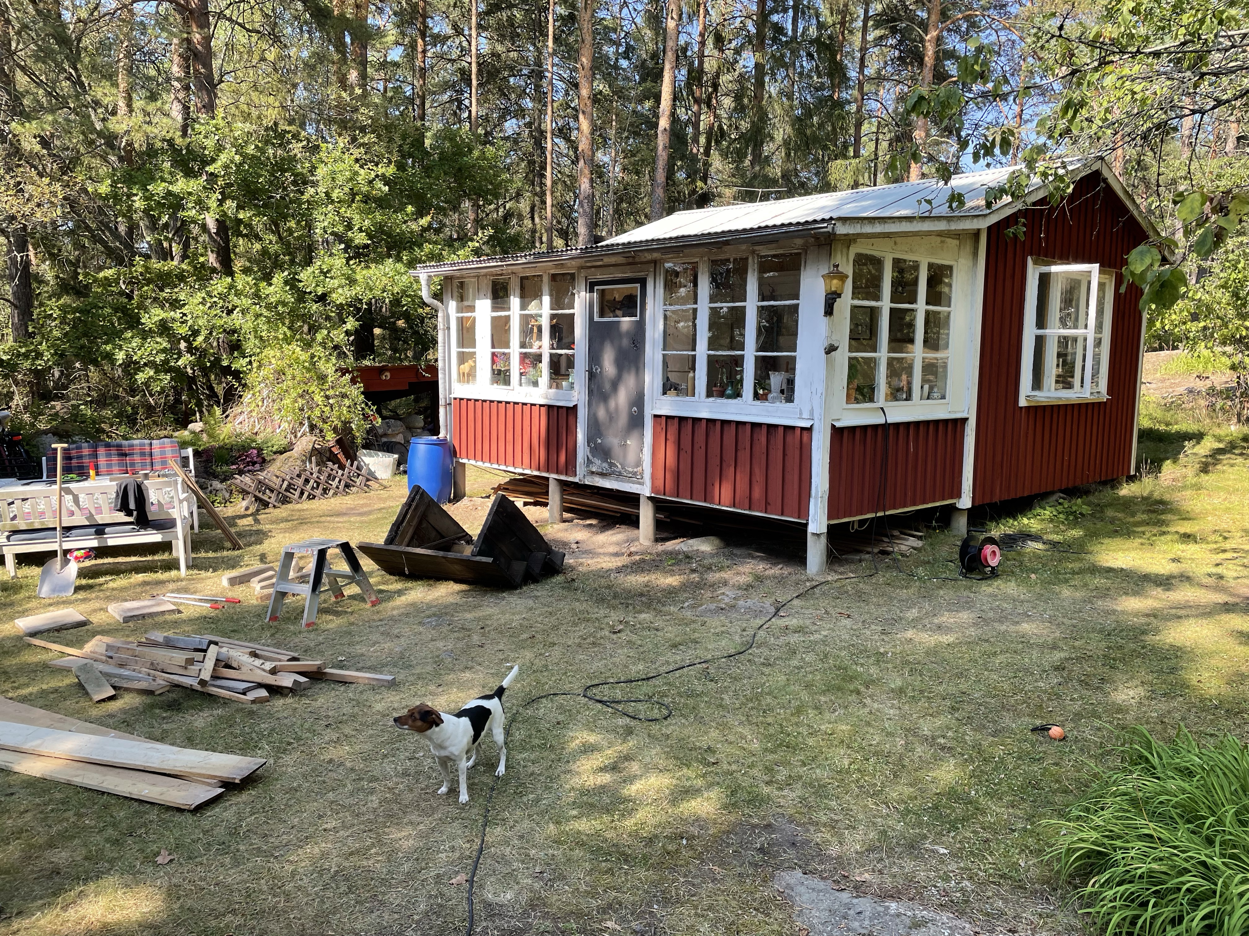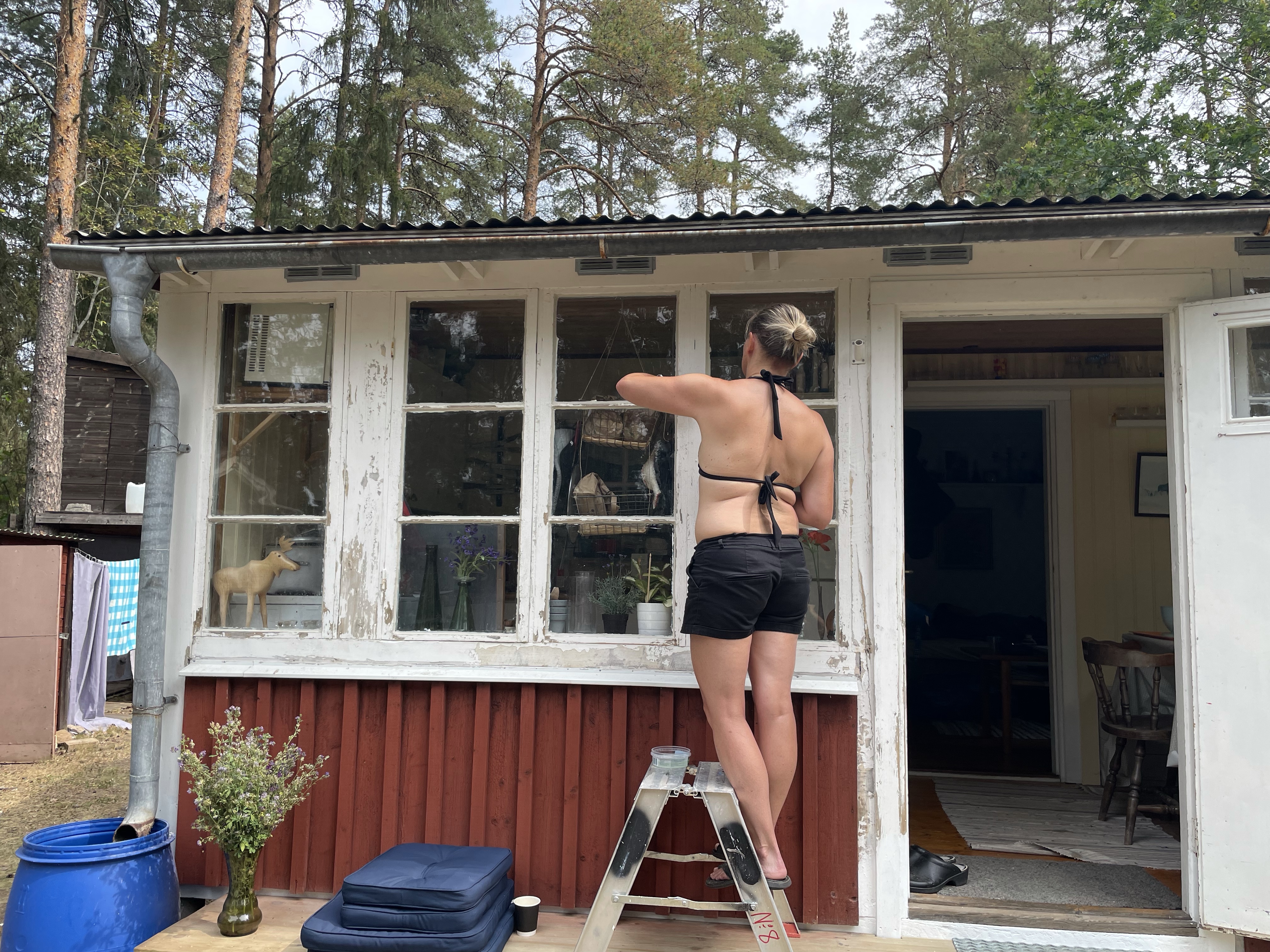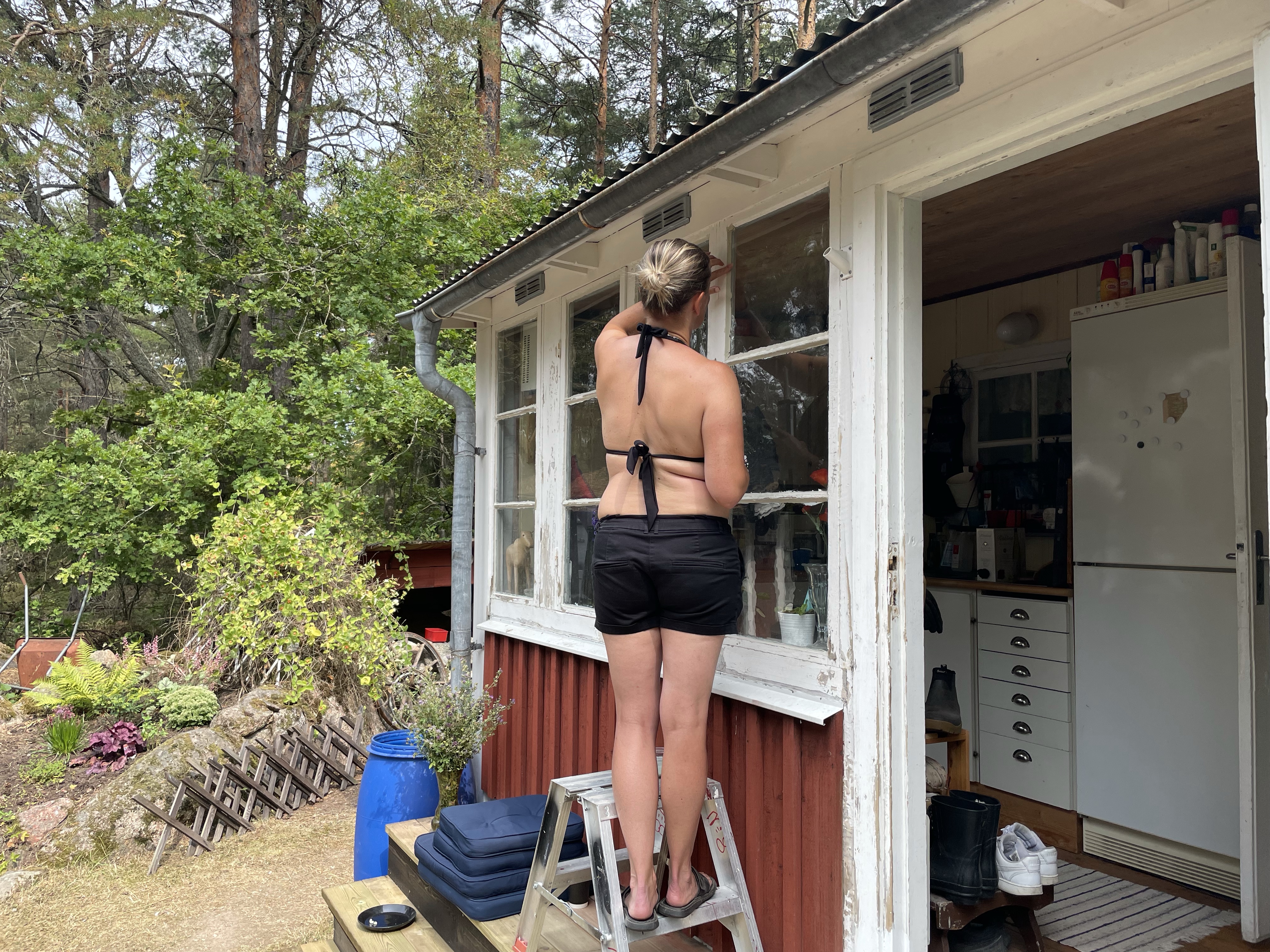 I år har vi satsat på att pimpa upp framsidan på Tallis. Så i år har vi byggt en ny trappa och dessutom har vi tvättat, skrapat, slipat, oljat, kittat och målat om alla fönster + allt annat vitt! Så när tjejerna åkte på andra äventyr så satte Magnus och jag igång och jobbade.