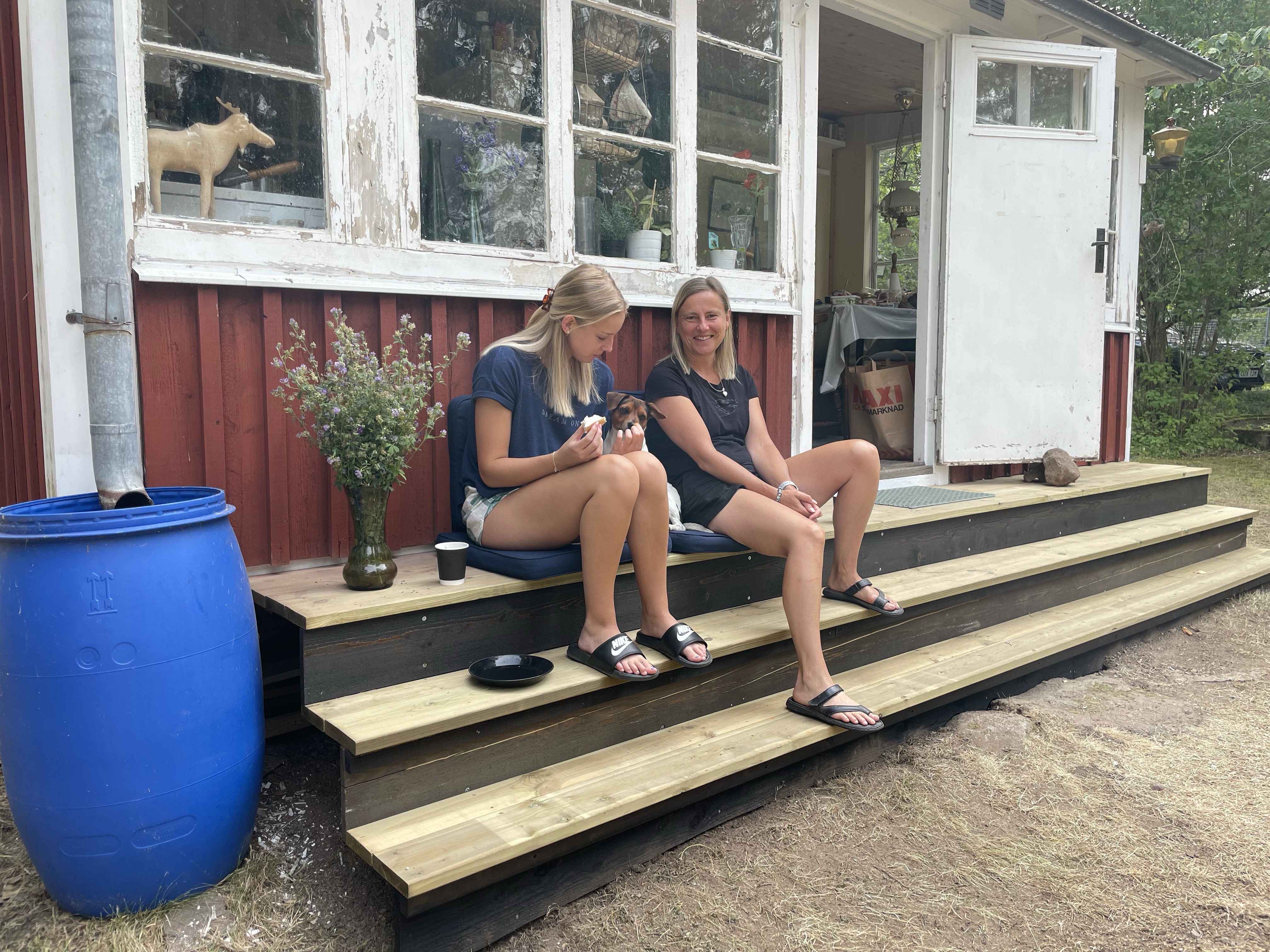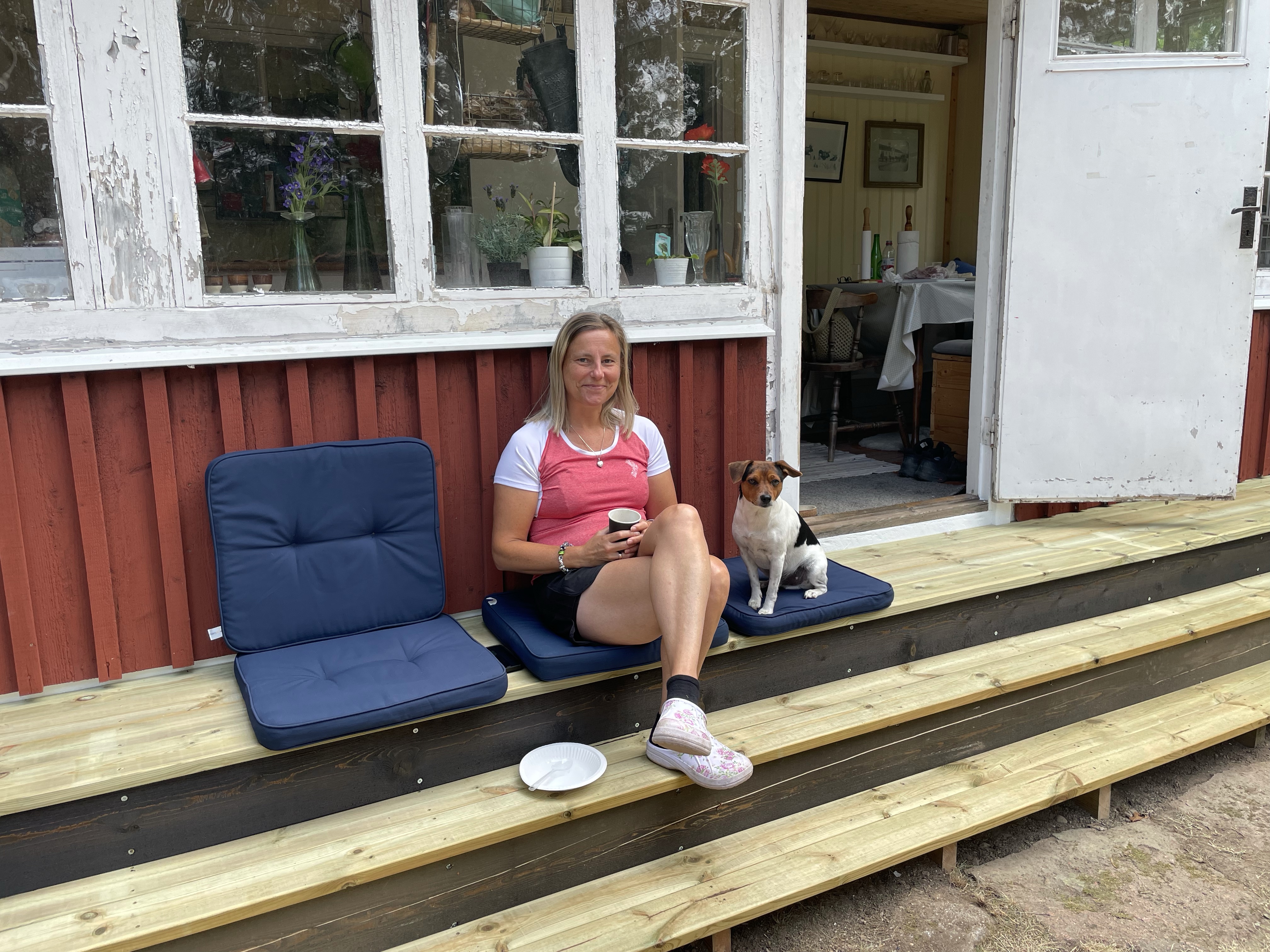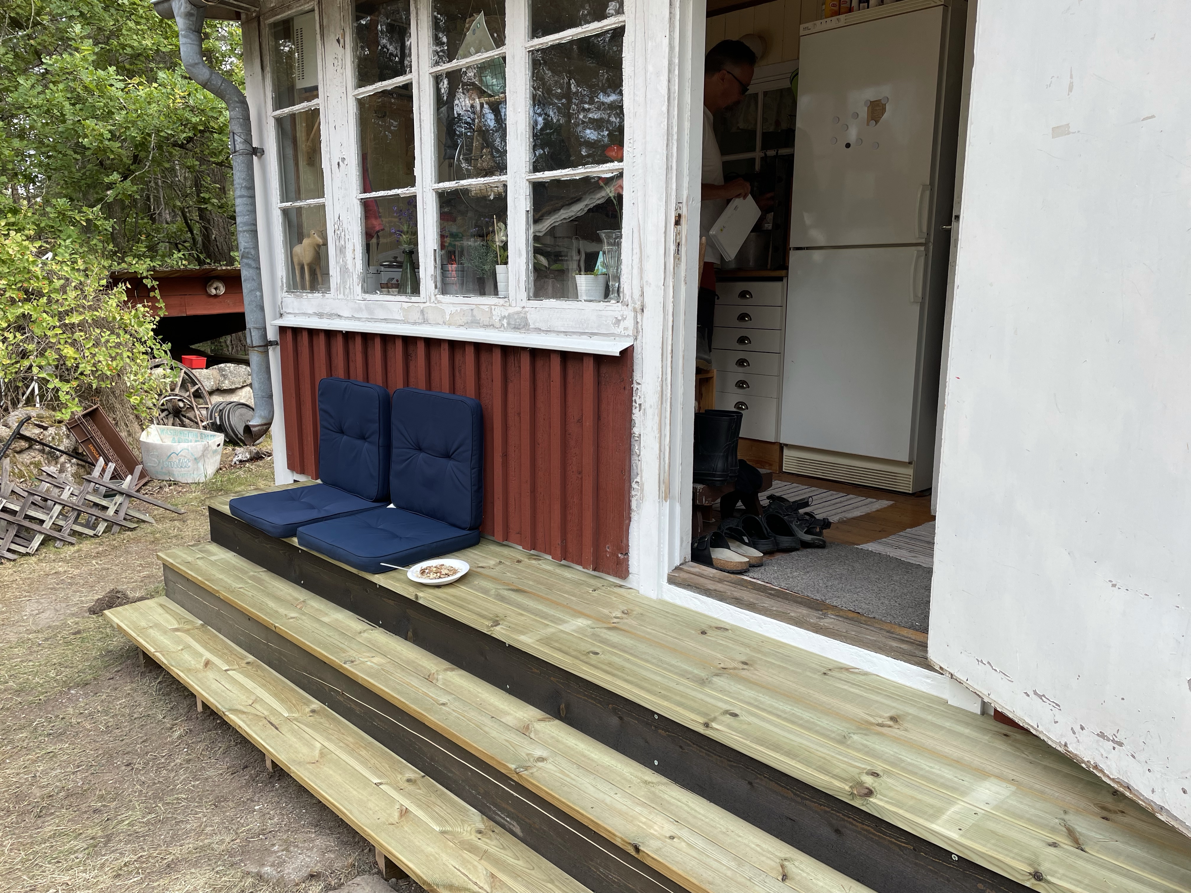 Jag ville verkligen uppdatera trappan som har tappat formen på sista tiden, och dessutom ville jag förlänga den så att den sträcker sig längs hela framsidan. Jag älskar nämligen att ta en kopp kaffe och sätta mig på trappan, men när den är så liten så sitter man alltid vägen när någon ska in eller ut🙄. Ett annat bra argumentet jag hade var ju att det blir enklare att fixa fönstren när man kan stå på en plan yta😉 Så till slut ville Magnus samma som jag och satte igång att bygga den nya lååånga trappan, yes✋😁