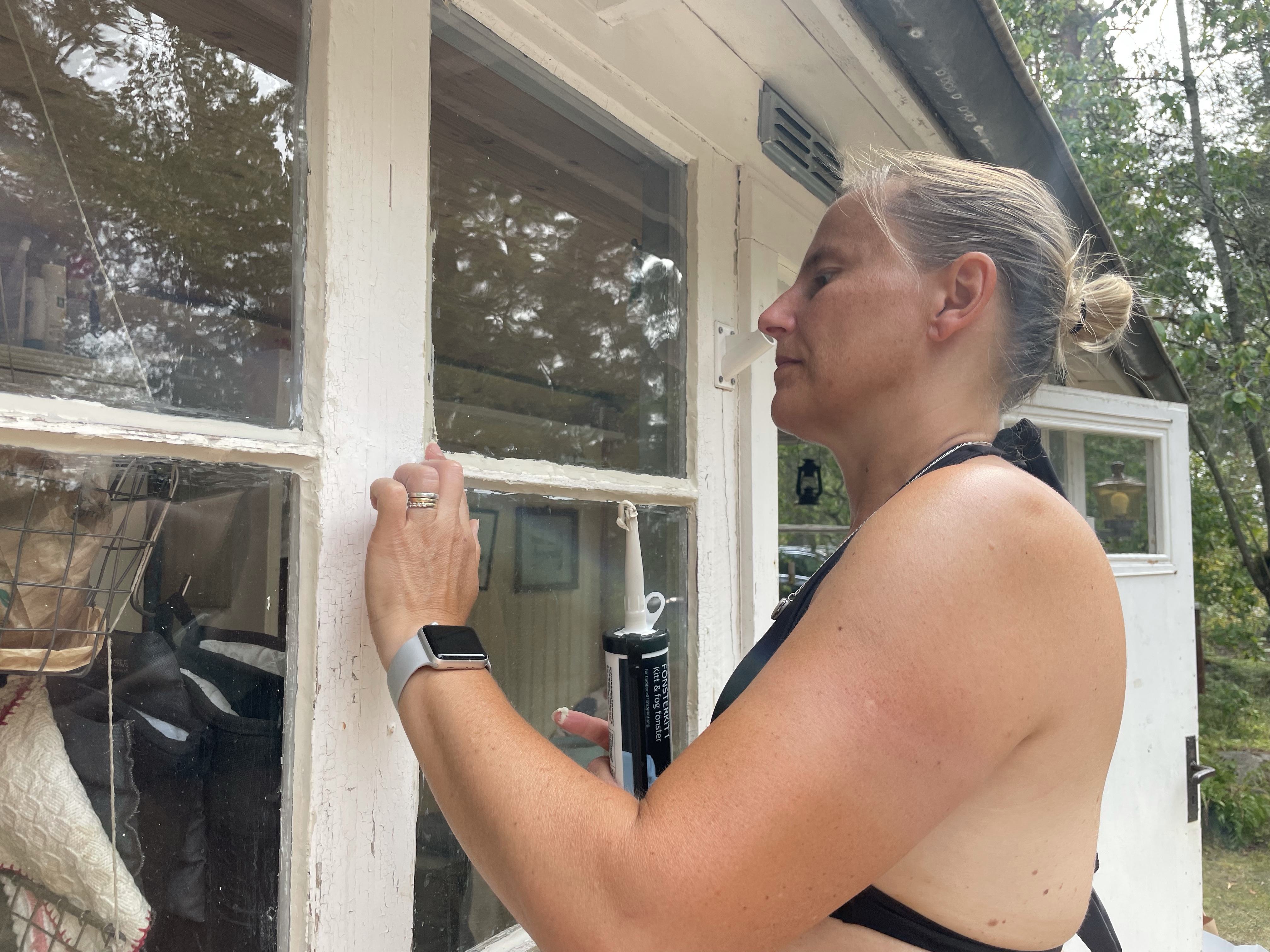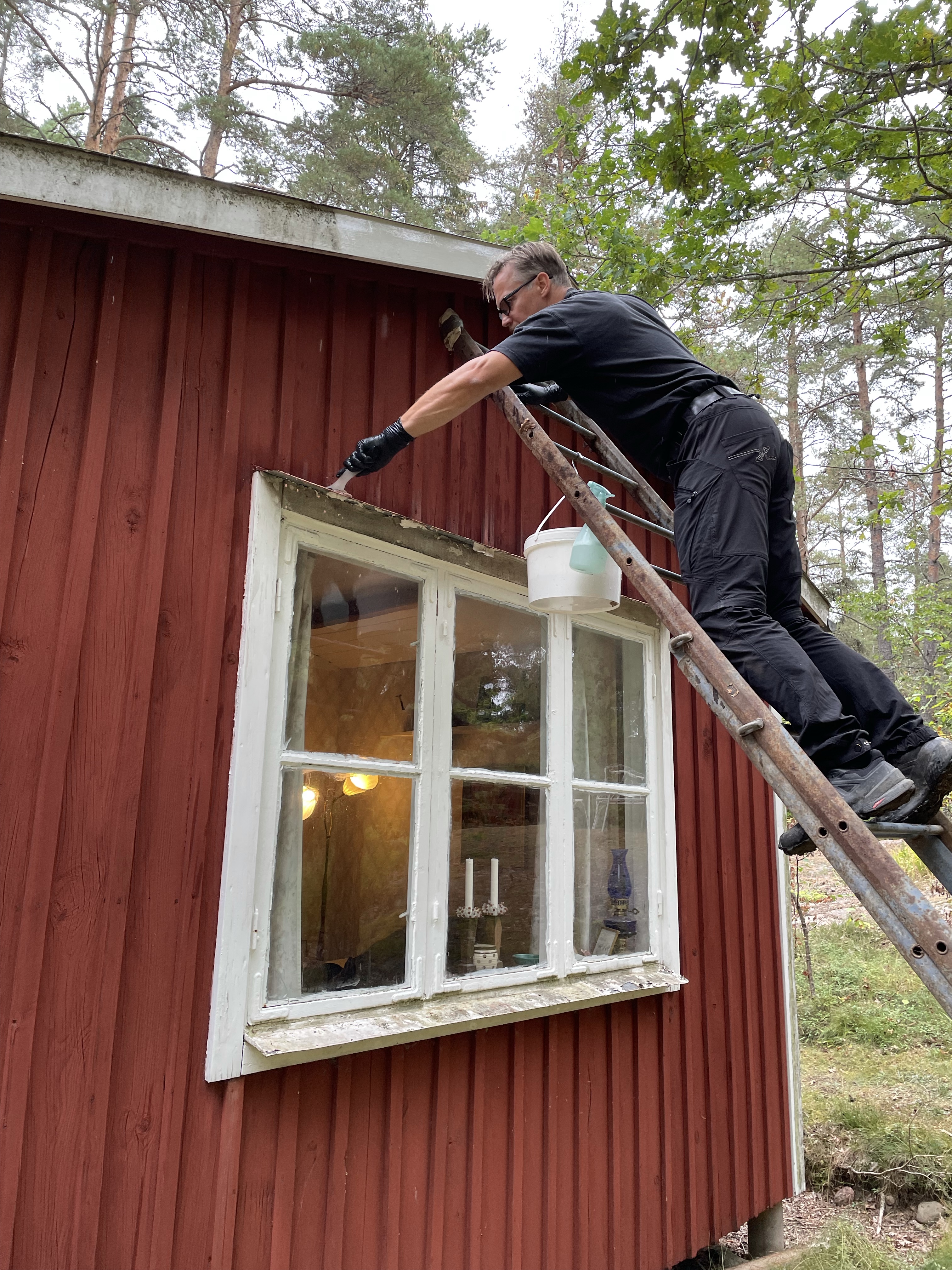 Magnus tvättade även resten av fönstren så vi blev av med svartmöglet där i alla fall. Skrapa, kitta och måla får vi göra nästa år.