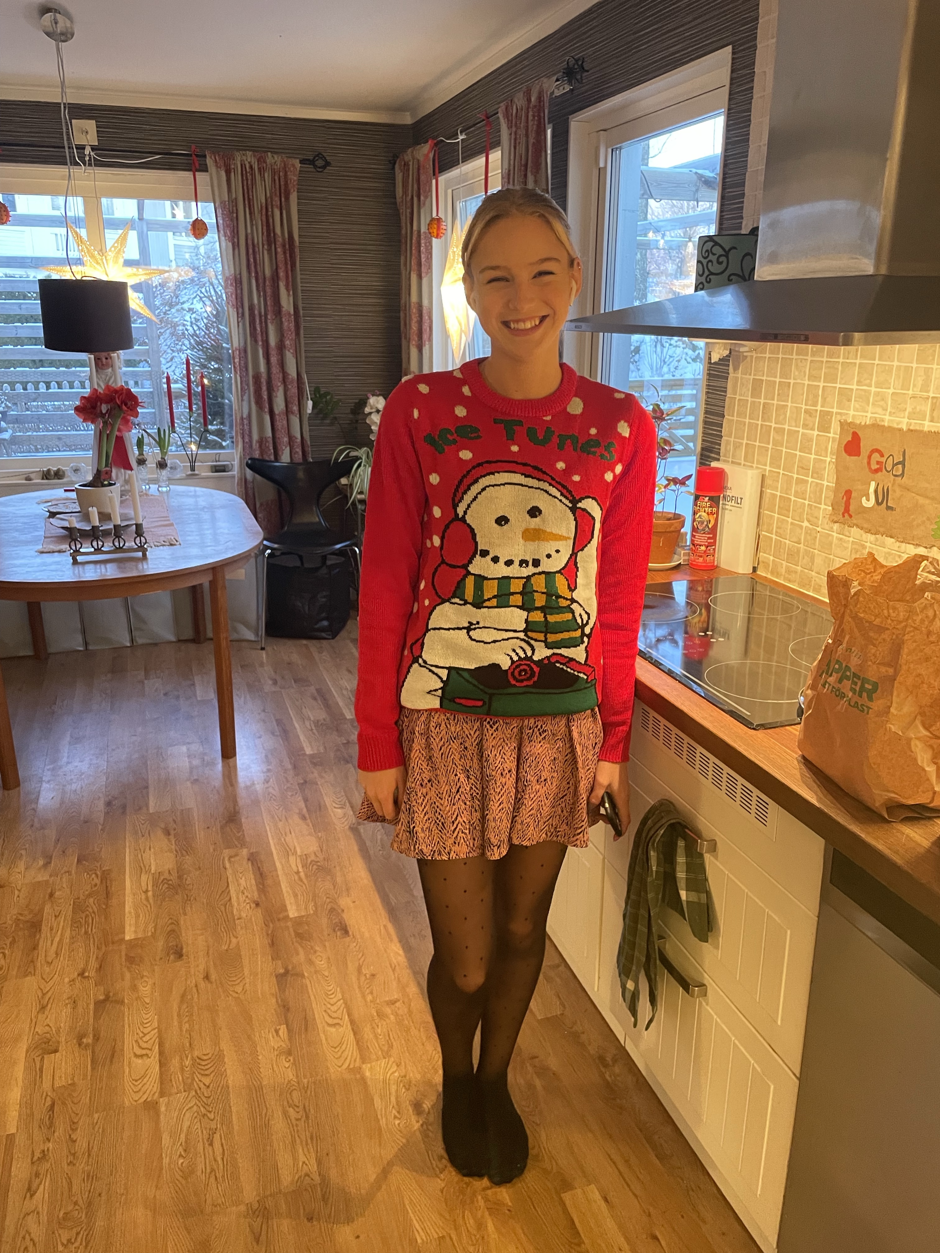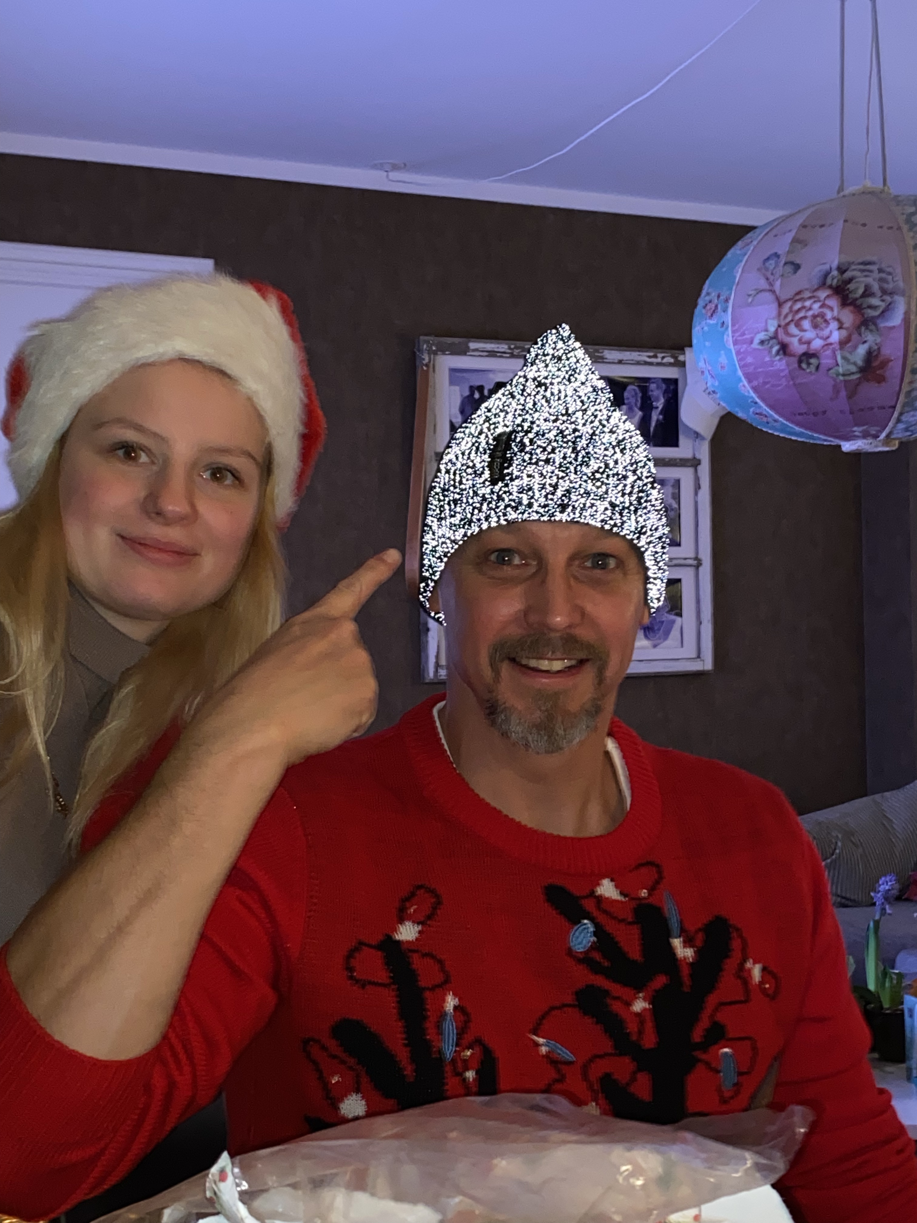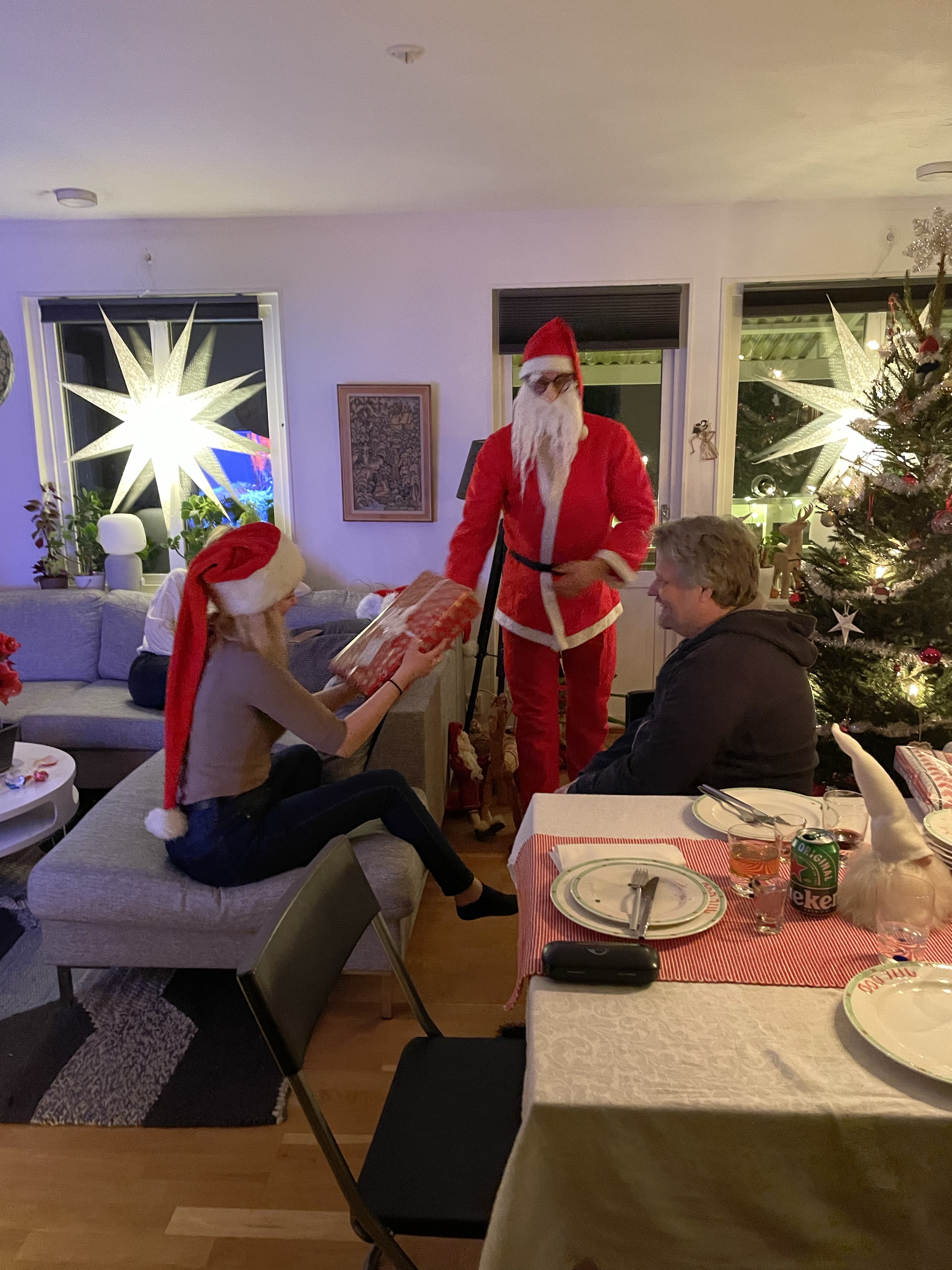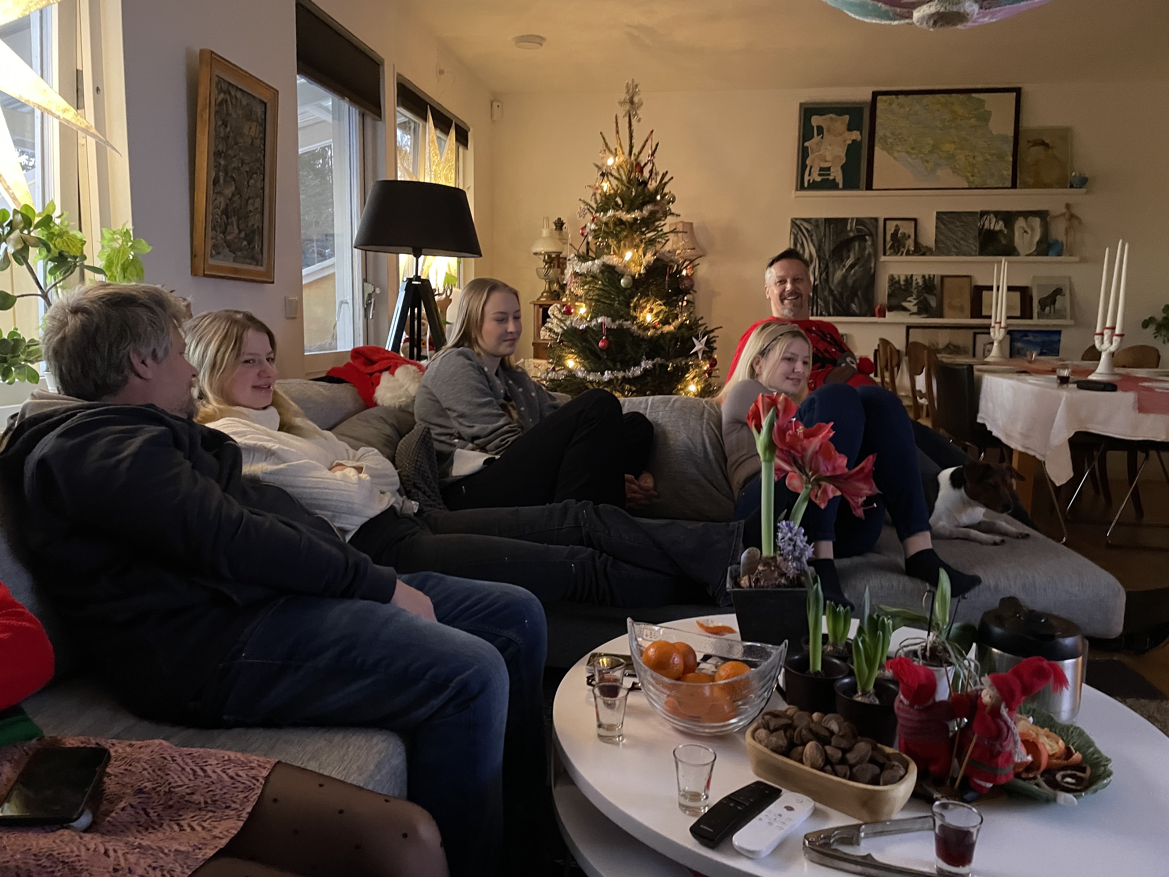 Men det gick faktiskt över förväntan! Syster Nina hade som backup erbjudit sig att vara hundvakt om det skulle bli för stökigt men det behövde vi inte utnyttja.Nu är vi redo för julen!🙏🥳🎄Julaftonsmorgon med frukost Lina med fina jultröjan på😁Alla samlade för Kalle AnkaNotera min fint blinkande tröja😁Till och med Hugo gillade Kalle😂Efter Kalle dukade vi upp matenSillsalladen i år i ny(gammal) fin skål❤️Hela gänget, Henke, Ingela, jag, Lina, Sonny, Isabella, Tove, Jonna och Magnus!Efter maten kom…😮tomten🤗Tomten hade dock väldigt dåliga glasögon🤓Men med lite hjälp från tomtenissan IsabellaSå fick alla varsitt paket till slut 😅När tomten hade åkt vidare så blev det paus i julklappsöppningen för Karl-Bertil Jonssons julaftonMen sen blev det paketutdelning!Någon hade varit väldigt snäll i år tydligen🥰Magnus och jag fick fina reflexmössor👏Superbra till sena mörka hundpromenader!Innan Broströmmarna åkte hem så körde kusinerna julklappsspel med varandra.Mycket spännande!Det blev väldigt tomt ändå när dom åkte men oj vad trött Hugo var sen, han sov resten av dagen😁