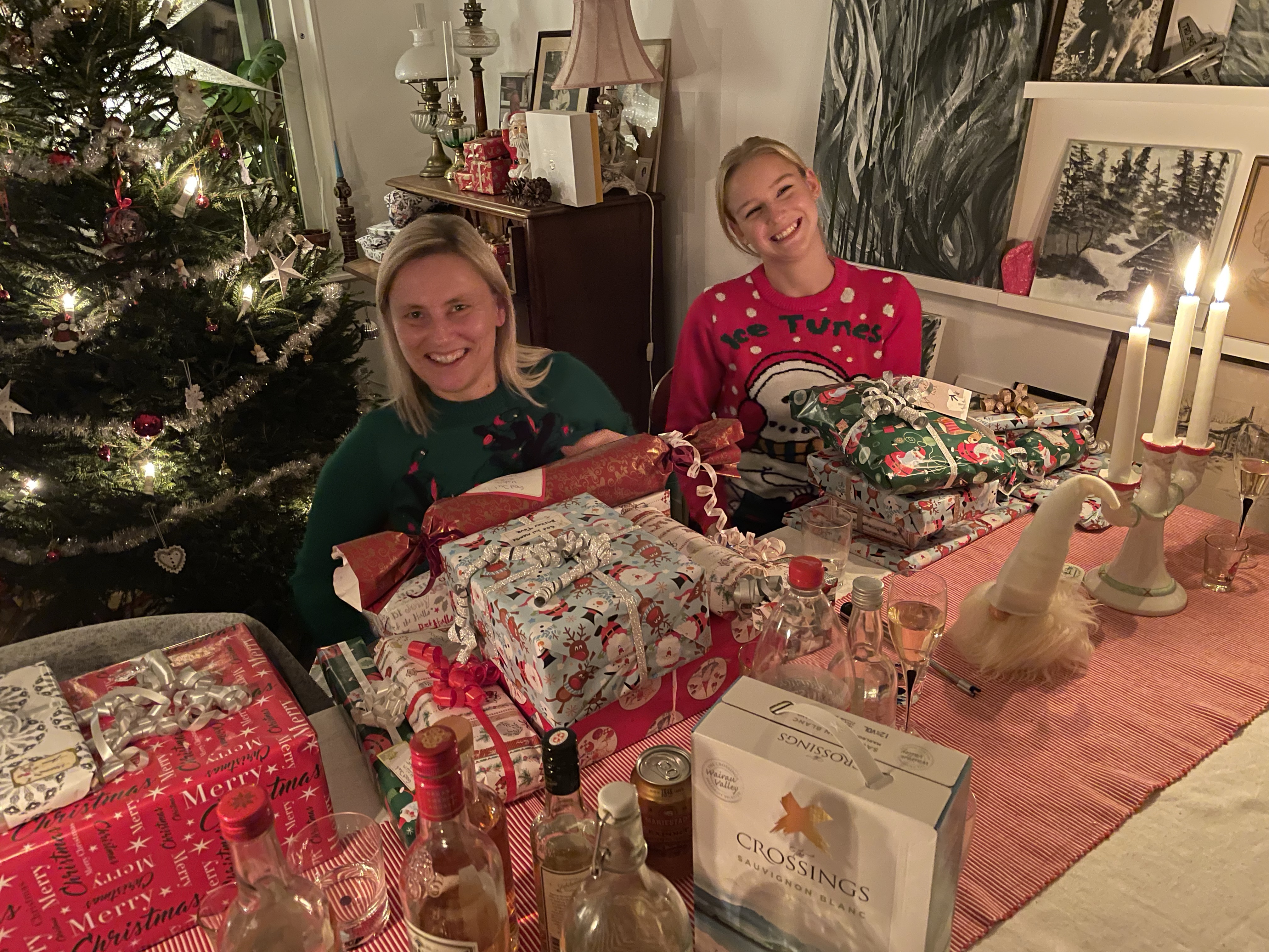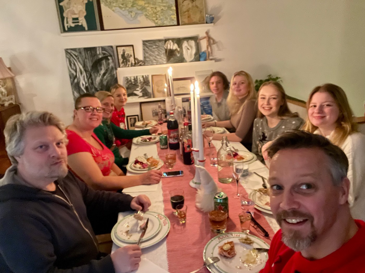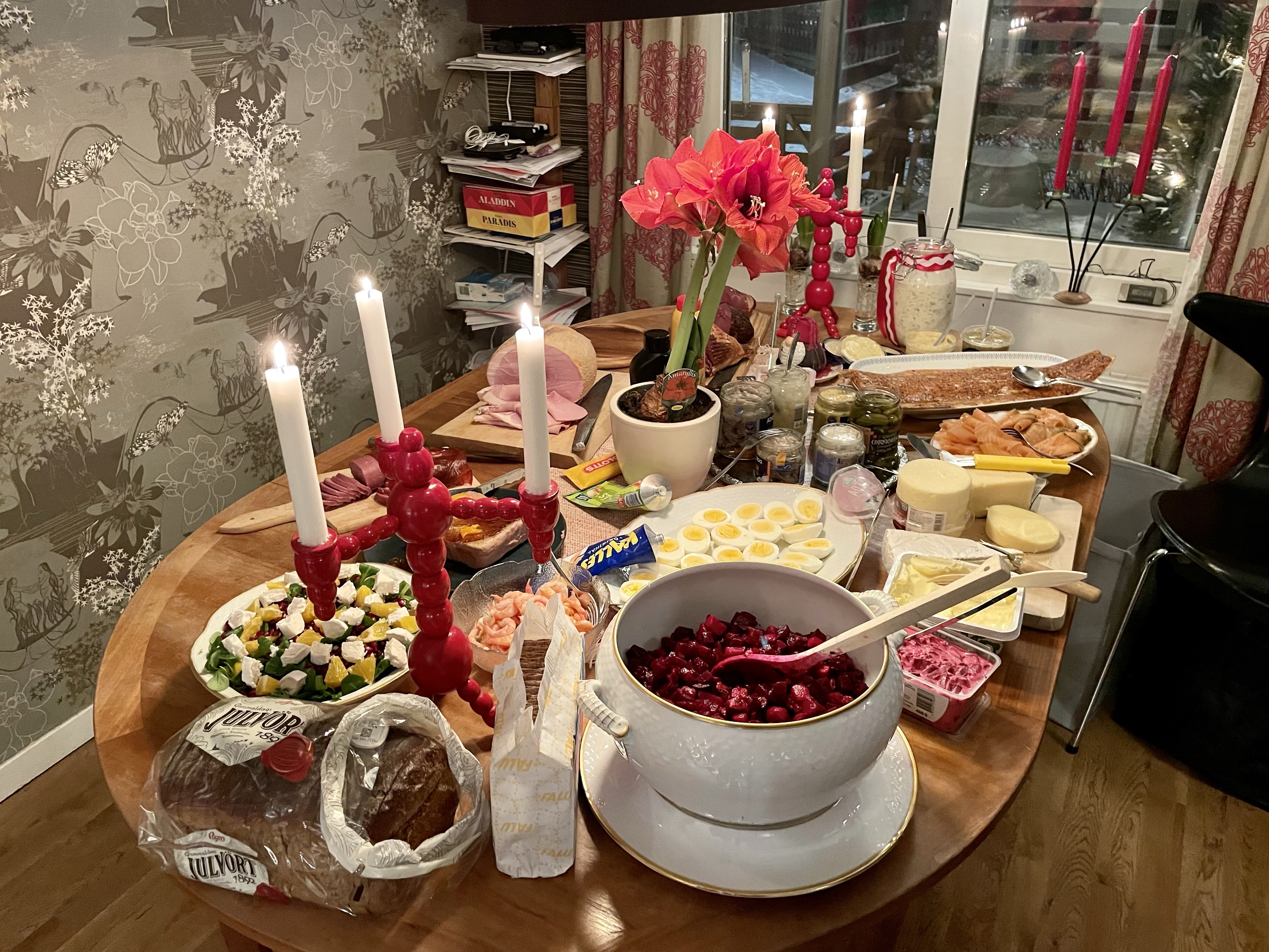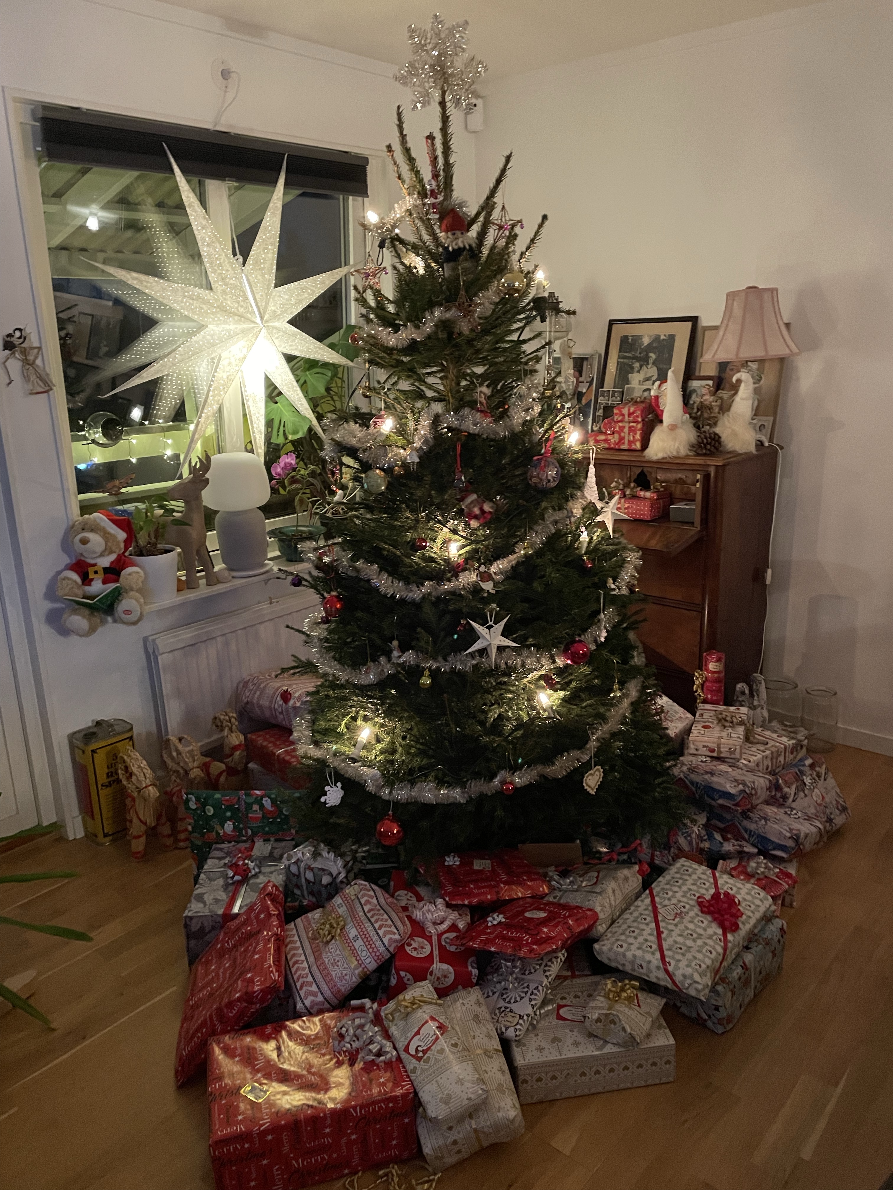 Men det gick faktiskt över förväntan! Syster Nina hade som backup erbjudit sig att vara hundvakt om det skulle bli för stökigt men det behövde vi inte utnyttja.Nu är vi redo för julen!🙏🥳🎄Julaftonsmorgon med frukost Lina med fina jultröjan på😁Alla samlade för Kalle AnkaNotera min fint blinkande tröja😁Till och med Hugo gillade Kalle😂Efter Kalle dukade vi upp matenSillsalladen i år i ny(gammal) fin skål❤️Hela gänget, Henke, Ingela, jag, Lina, Sonny, Isabella, Tove, Jonna och Magnus!Efter maten kom…😮tomten🤗Tomten hade dock väldigt dåliga glasögon🤓Men med lite hjälp från tomtenissan IsabellaSå fick alla varsitt paket till slut 😅När tomten hade åkt vidare så blev det paus i julklappsöppningen för Karl-Bertil Jonssons julaftonMen sen blev det paketutdelning!Någon hade varit väldigt snäll i år tydligen🥰Magnus och jag fick fina reflexmössor👏Superbra till sena mörka hundpromenader!Innan Broströmmarna åkte hem så körde kusinerna julklappsspel med varandra.Mycket spännande!Det blev väldigt tomt ändå när dom åkte men oj vad trött Hugo var sen, han sov resten av dagen😁