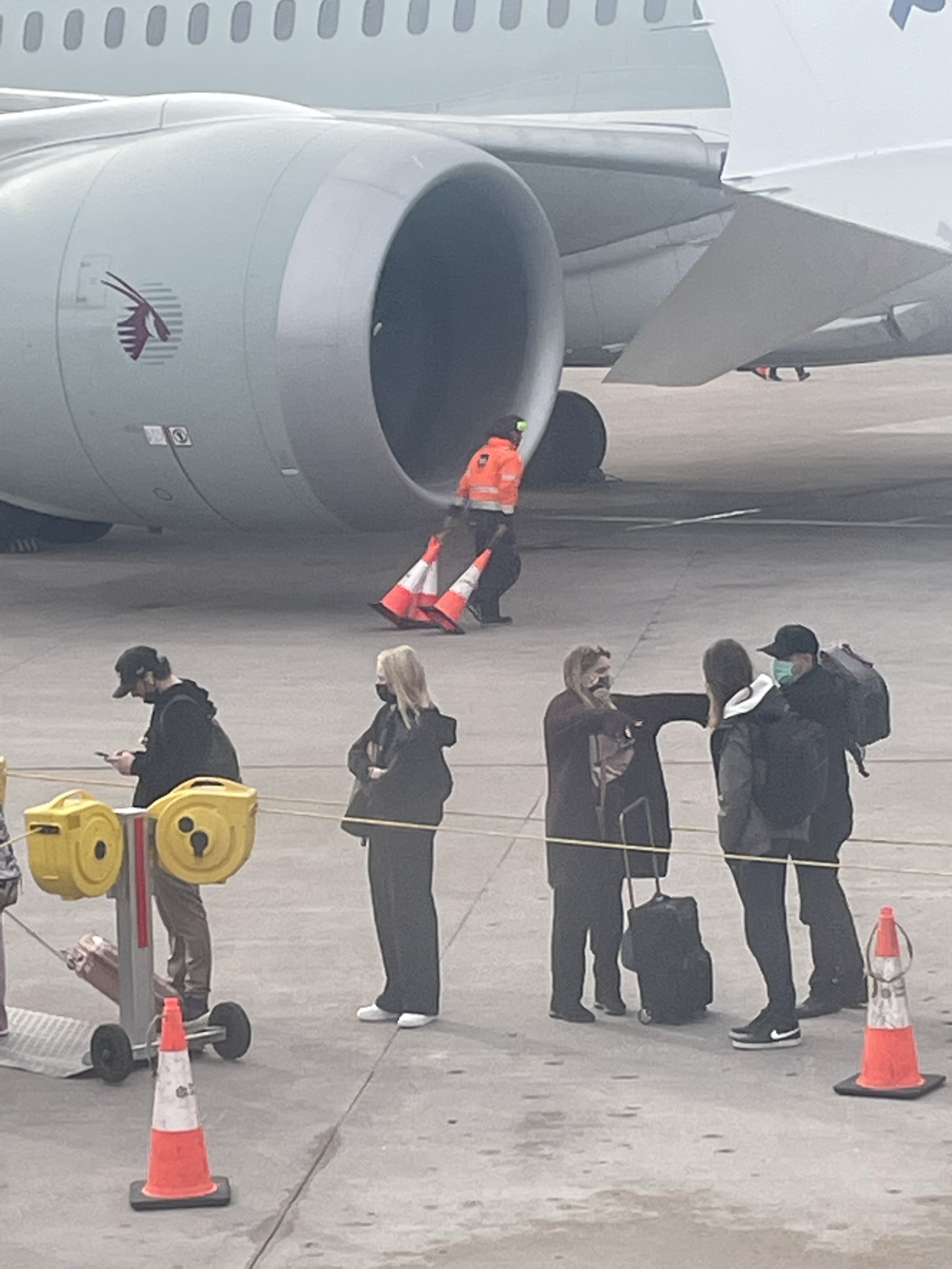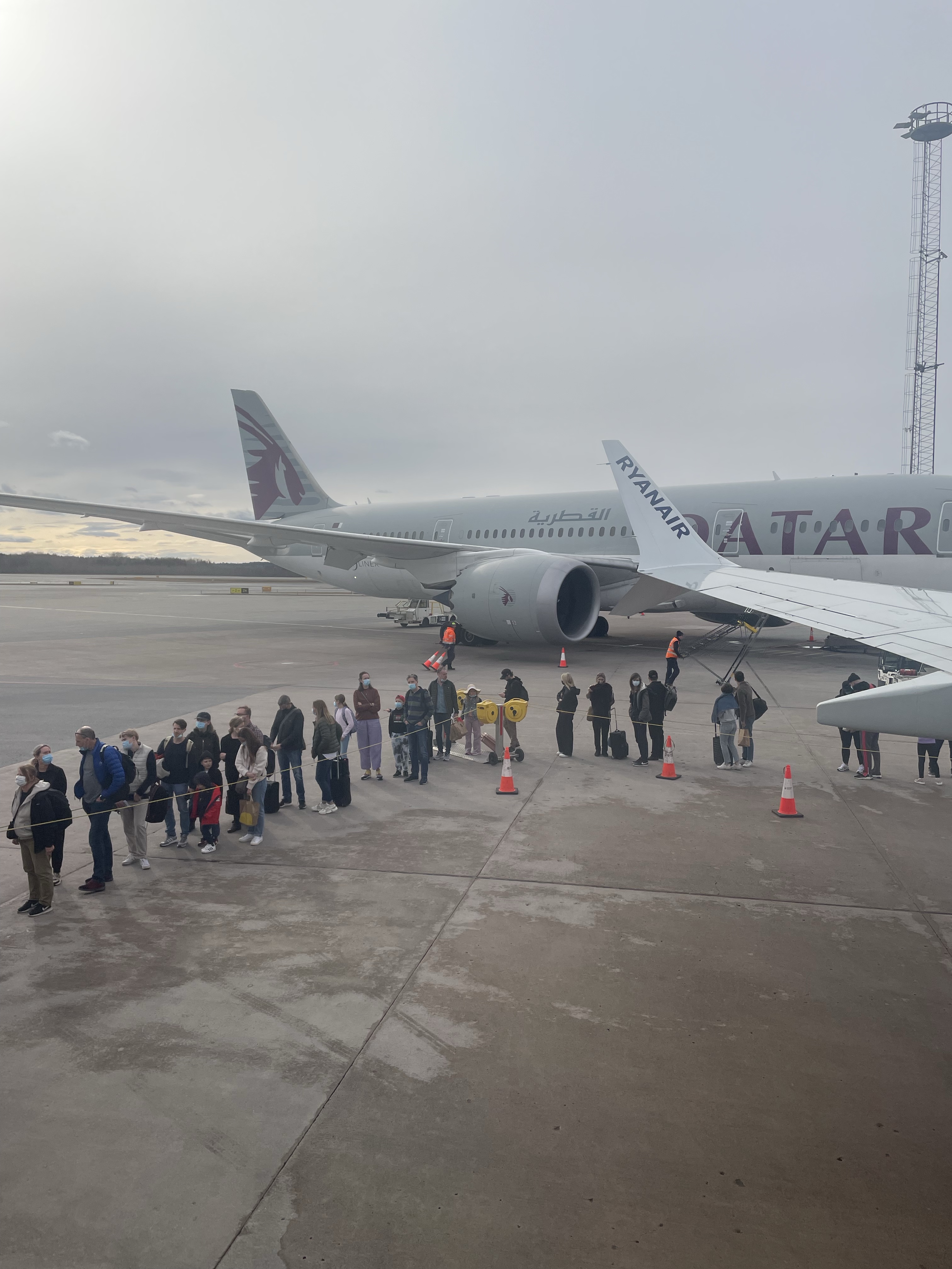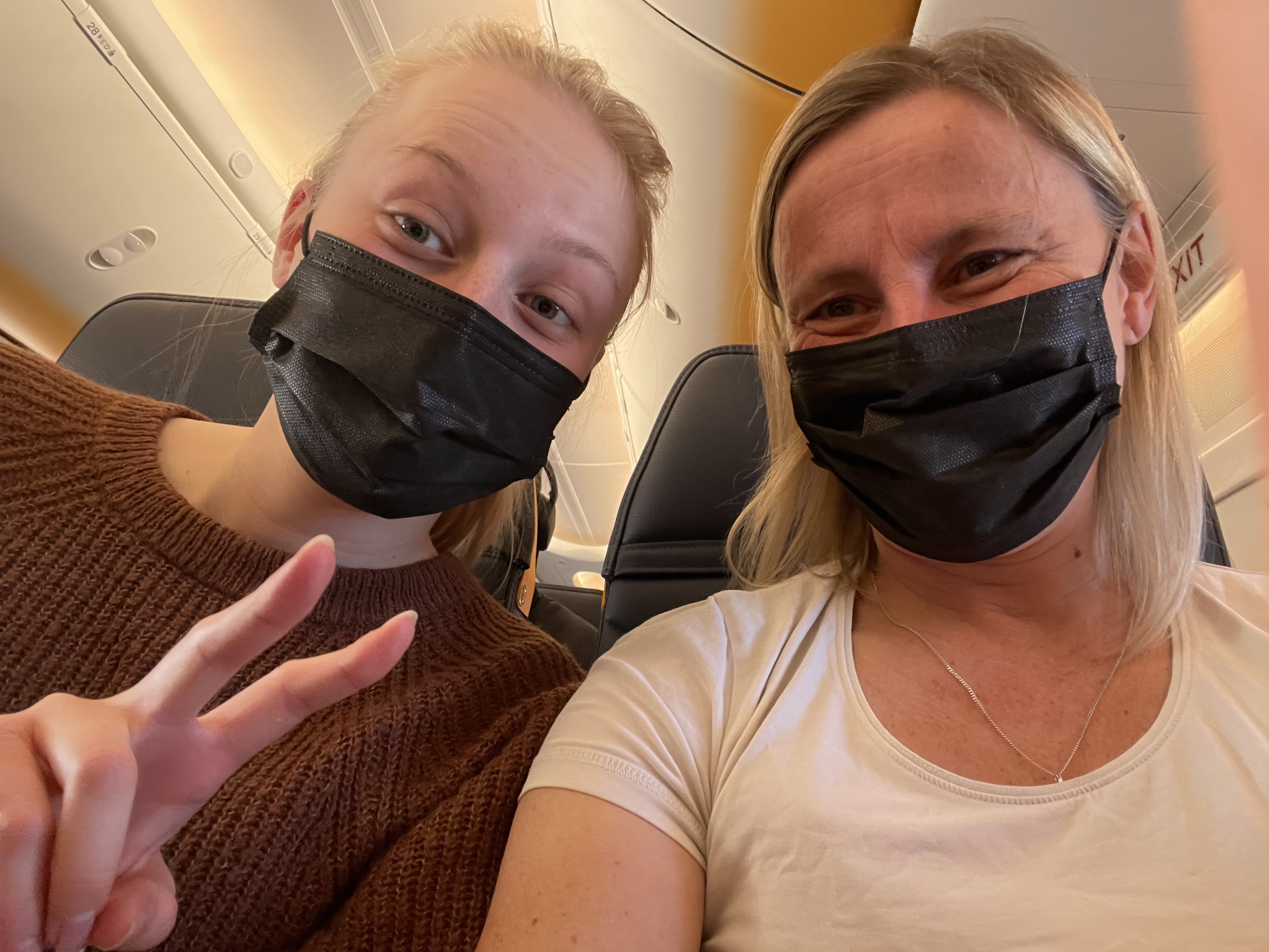 När vi kom fram och äntligen hittade var vi skulle checka in väskorna var det Sjukt lång kö till säkerhetskontrollen 😱 men……ingen fara för oss för vi var förvarnade och var där 4 timmar!!! innan flyget skulle gå😊👍Tove påväg in på flyget 😊Sådär, då var vi iväg✌️