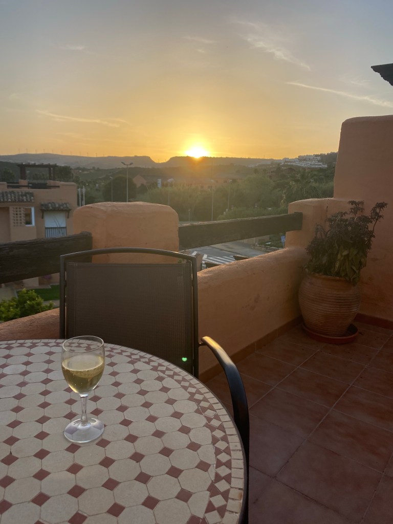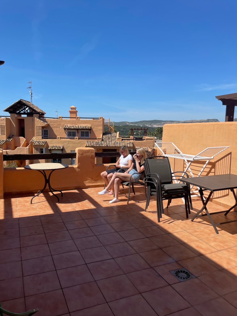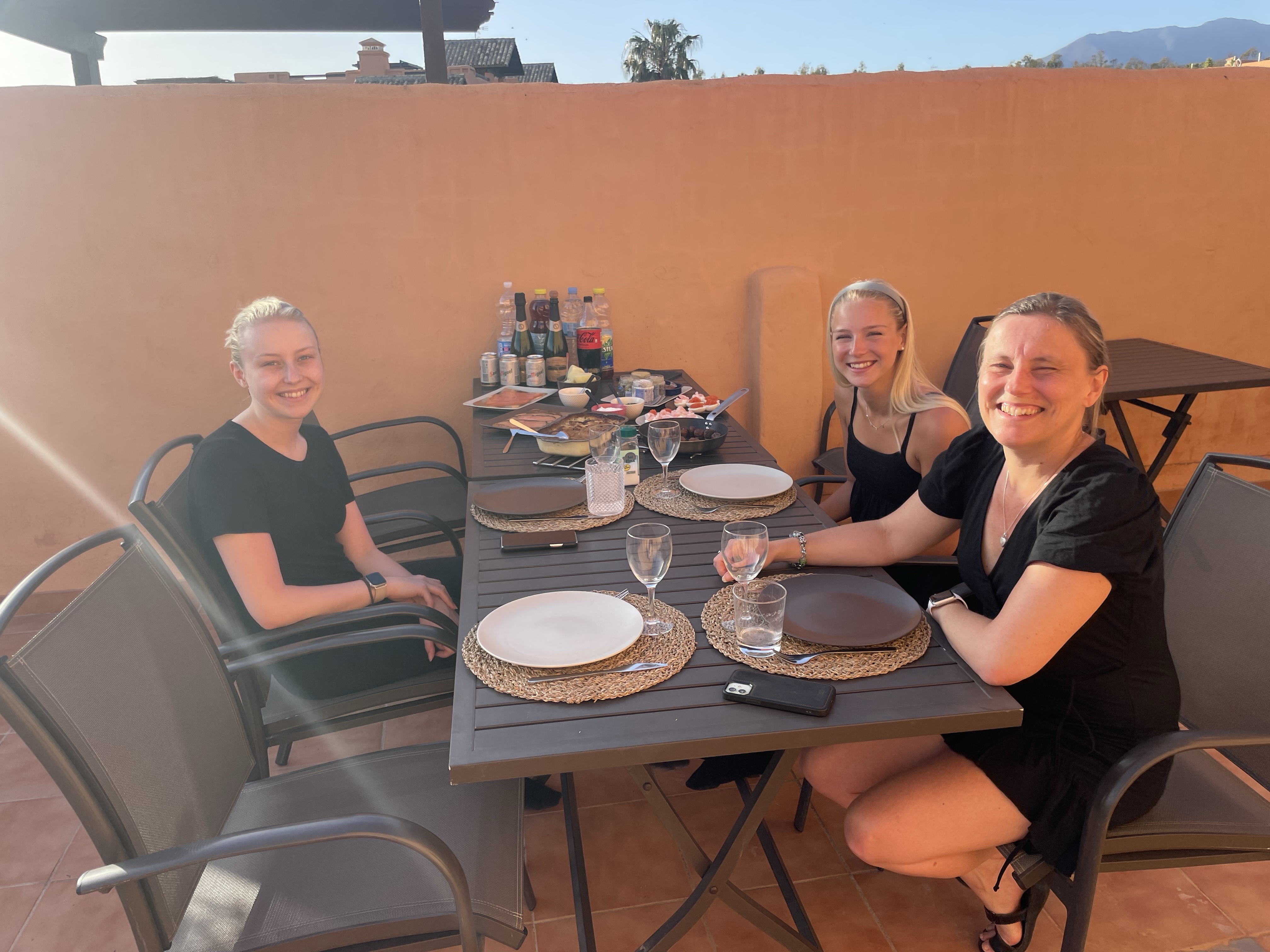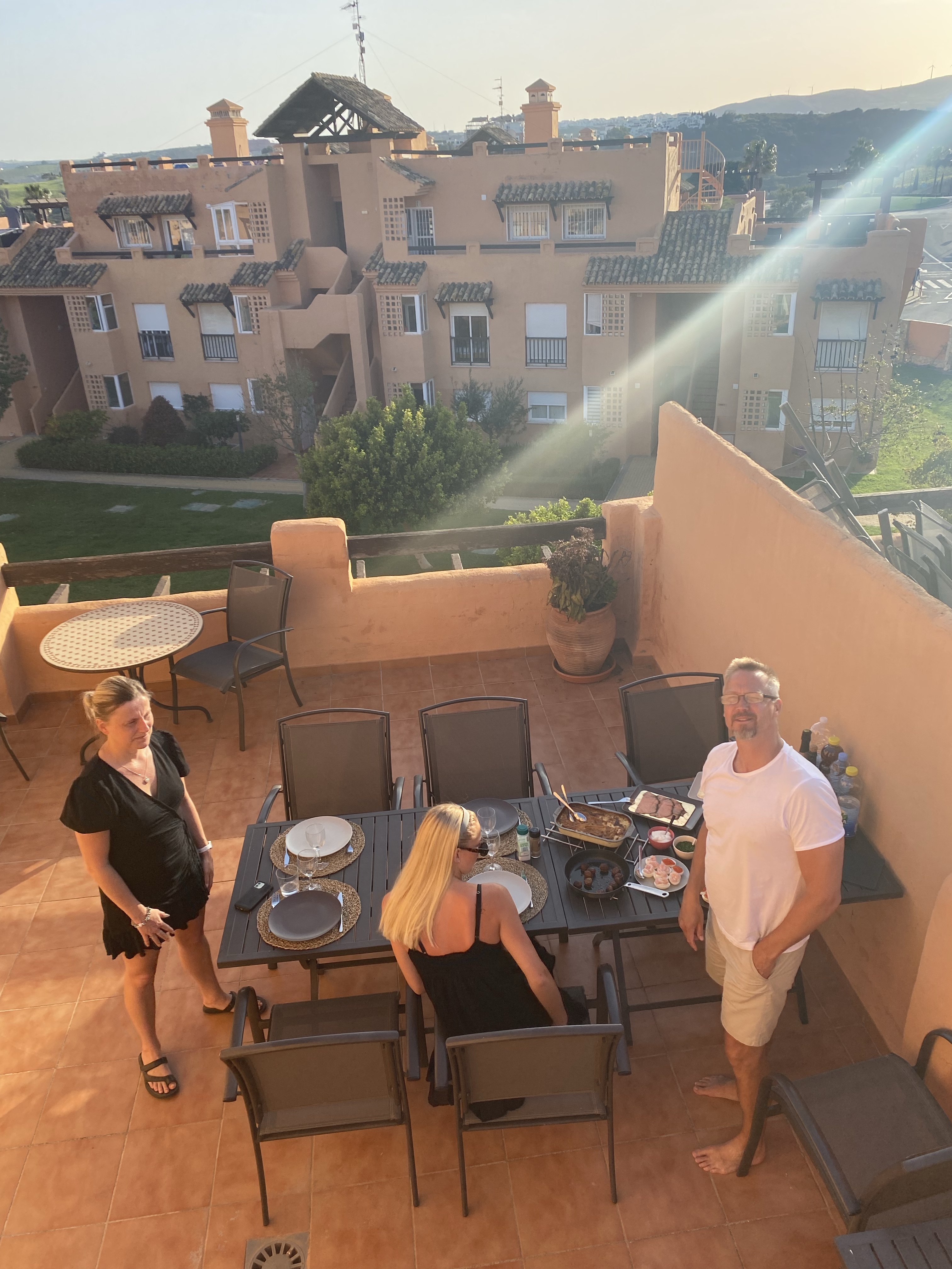 Lunchstopp, sen tänkte vi gå lite på shoppingcentret och titta bara.Lina letade efter en liten väskaOch så tittade vi på kläder medan Magnus satt ute och väntade i solen☀️😀På kvällen hade vi bokat bord på Arroyo Hondo i Casares by. Vi var här förra gången och dom hade en så god kycklingförrätt så Lina har tjatat sen dess på att vi måste åka tillbaka dit någon gångLina på plats och förväntansfull😋Förra gången var det lite varmare ute på kvällarna så då satt vi ute på den mysiga uteserveringen.Men den här gången satte vi oss inne, inte lika mysigt men det får man ta!Här är den efterlängtade rätten, lika god denna gång enligt Magnus och Lina (Tove och jag är ju pescatarianer🤷♀️) !Mätta och nöjda påväg hem Lördagmorgon, sista hela dagen i Spanien 😢 Aldrig roligt att lämna min lilla Lina…som inte äR så liten längre, halva huvudet längre än mamma liksom😳Idag ska vi äta lite påskmiddag. Lina o Magnus har varit på svenskbutiken i Fuengirola och fixat sill, lax och grejer till Jansson. Men först lite solhäng på terrassen 🙏Tjejerna hängde på övre terassen Magnus och Tove åkte och stödköpte lite till påskmiddagen och så fixade Tove en god zucchinipasta till lunch.Till och med Lina som inte gillar zucchini tyckte den var god!Lina ”Jag har nog bränt mig lite”😂 Så gulligt❤️Medan jag bloggade de tidigare inläggen så förberedde Magnus påskmiddagen. Snart dax att äta😋Förväntansfull mamma😆Terrasshäng❤️Så, allt klart!Ändå, väldigt bra fixat!👍Broströmmarna som vi brukar fira med skickade att dom hade letat påskägg ”ååh, letar dom påskägg? Man blir aldrig för gammal för att leta påskägg!”Det fick i alla falL bli en liten hälsning från oss!👋😀Sista solnedgången ❤️Sen hade tjejerna lite syskonhäng och låg och tittade på film tillsammans❤️Söndag och sista chansen att relaxa på terassen ☀️❤️🙏Sen så var det dax att säga hejdå för den här gången😭. Magnus skjutsar Lina till Fuengirola medan Tove och jag börjar städa lägenheten.Hejdå hyrbilen, den här gillade vi! Hejdå Magnus mobilhållare också, den blev kvar i bilen🤥Middag på Malaga flygplats Eftersom jag var den enda som hade handbagage och därmed prioritybiljett, så fick jag gå på före de andra, och kunde ta den här fina bilden på Magnus och Tove på väg till flyget i solnedgången 😀Det var faktiskt bara för att vi skulle få med lite av Linas varma kläder hem så hon inte har för mycket när hon ska hem sen☝️😐👋😢Nu ska vi hem och hämta det här busfröt❤️❤️