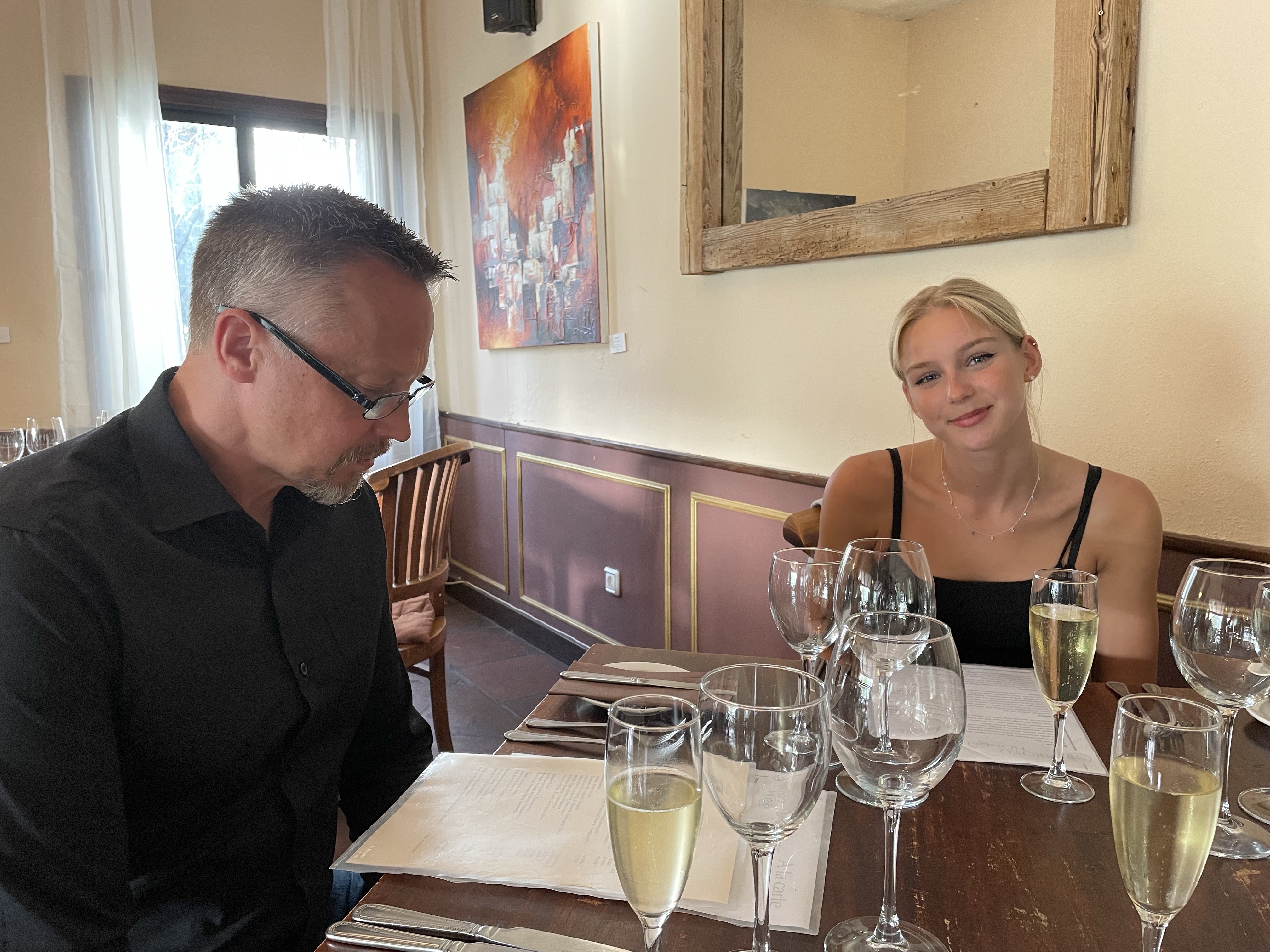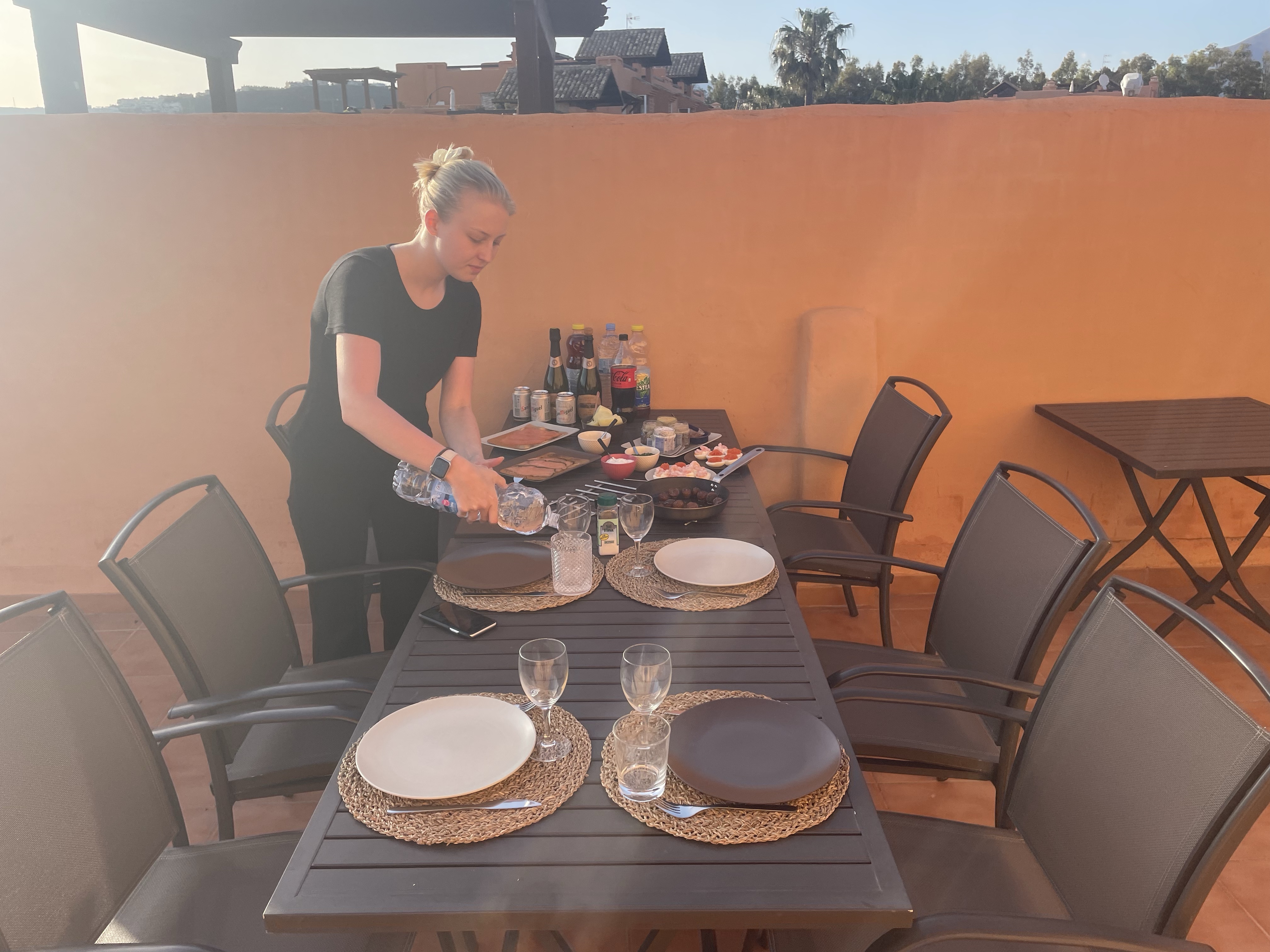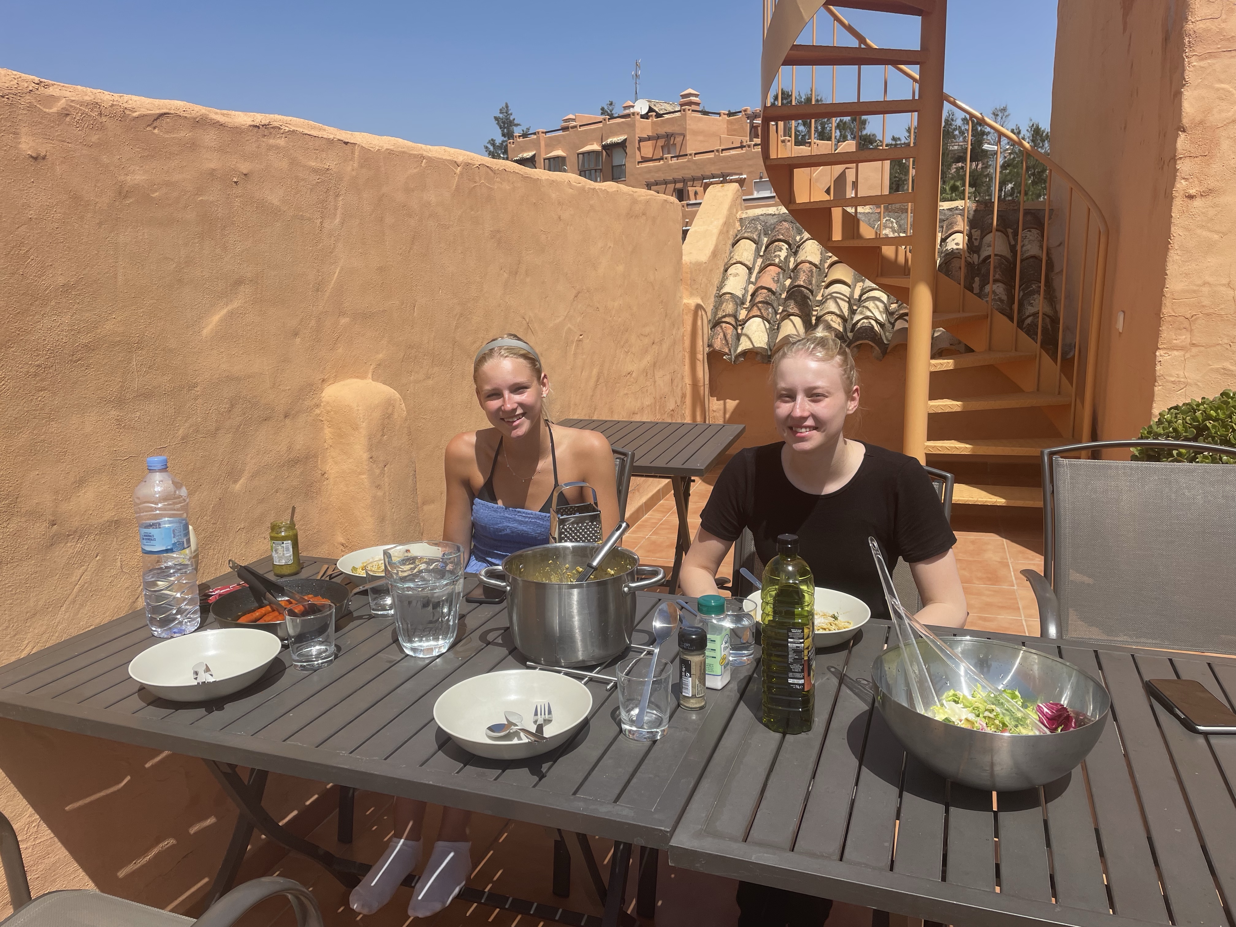 Lunchstopp, sen tänkte vi gå lite på shoppingcentret och titta bara.Lina letade efter en liten väskaOch så tittade vi på kläder medan Magnus satt ute och väntade i solen☀️😀På kvällen hade vi bokat bord på Arroyo Hondo i Casares by. Vi var här förra gången och dom hade en så god kycklingförrätt så Lina har tjatat sen dess på att vi måste åka tillbaka dit någon gångLina på plats och förväntansfull😋Förra gången var det lite varmare ute på kvällarna så då satt vi ute på den mysiga uteserveringen.Men den här gången satte vi oss inne, inte lika mysigt men det får man ta!Här är den efterlängtade rätten, lika god denna gång enligt Magnus och Lina (Tove och jag är ju pescatarianer🤷♀️) !Mätta och nöjda påväg hem Lördagmorgon, sista hela dagen i Spanien 😢 Aldrig roligt att lämna min lilla Lina…som inte äR så liten längre, halva huvudet längre än mamma liksom😳Idag ska vi äta lite påskmiddag. Lina o Magnus har varit på svenskbutiken i Fuengirola och fixat sill, lax och grejer till Jansson. Men först lite solhäng på terrassen 🙏Tjejerna hängde på övre terassen Magnus och Tove åkte och stödköpte lite till påskmiddagen och så fixade Tove en god zucchinipasta till lunch.Till och med Lina som inte gillar zucchini tyckte den var god!Lina ”Jag har nog bränt mig lite”😂 Så gulligt❤️Medan jag bloggade de tidigare inläggen så förberedde Magnus påskmiddagen. Snart dax att äta😋Förväntansfull mamma😆Terrasshäng❤️Så, allt klart!Ändå, väldigt bra fixat!👍Broströmmarna som vi brukar fira med skickade att dom hade letat påskägg ”ååh, letar dom påskägg? Man blir aldrig för gammal för att leta påskägg!”Det fick i alla falL bli en liten hälsning från oss!👋😀Sista solnedgången ❤️Sen hade tjejerna lite syskonhäng och låg och tittade på film tillsammans❤️Söndag och sista chansen att relaxa på terassen ☀️❤️🙏Sen så var det dax att säga hejdå för den här gången😭. Magnus skjutsar Lina till Fuengirola medan Tove och jag börjar städa lägenheten.Hejdå hyrbilen, den här gillade vi! Hejdå Magnus mobilhållare också, den blev kvar i bilen🤥Middag på Malaga flygplats Eftersom jag var den enda som hade handbagage och därmed prioritybiljett, så fick jag gå på före de andra, och kunde ta den här fina bilden på Magnus och Tove på väg till flyget i solnedgången 😀Det var faktiskt bara för att vi skulle få med lite av Linas varma kläder hem så hon inte har för mycket när hon ska hem sen☝️😐👋😢Nu ska vi hem och hämta det här busfröt❤️❤️