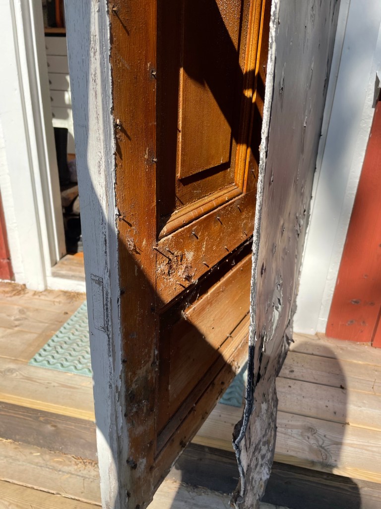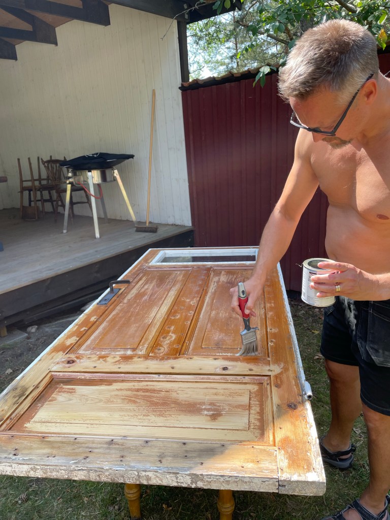 Jag har ganska länge, kanske några år, försökt få Magnus att gå med på att vi ska ta bort den gamla masonitskivan som sitter på ytterdörren på Tallis.