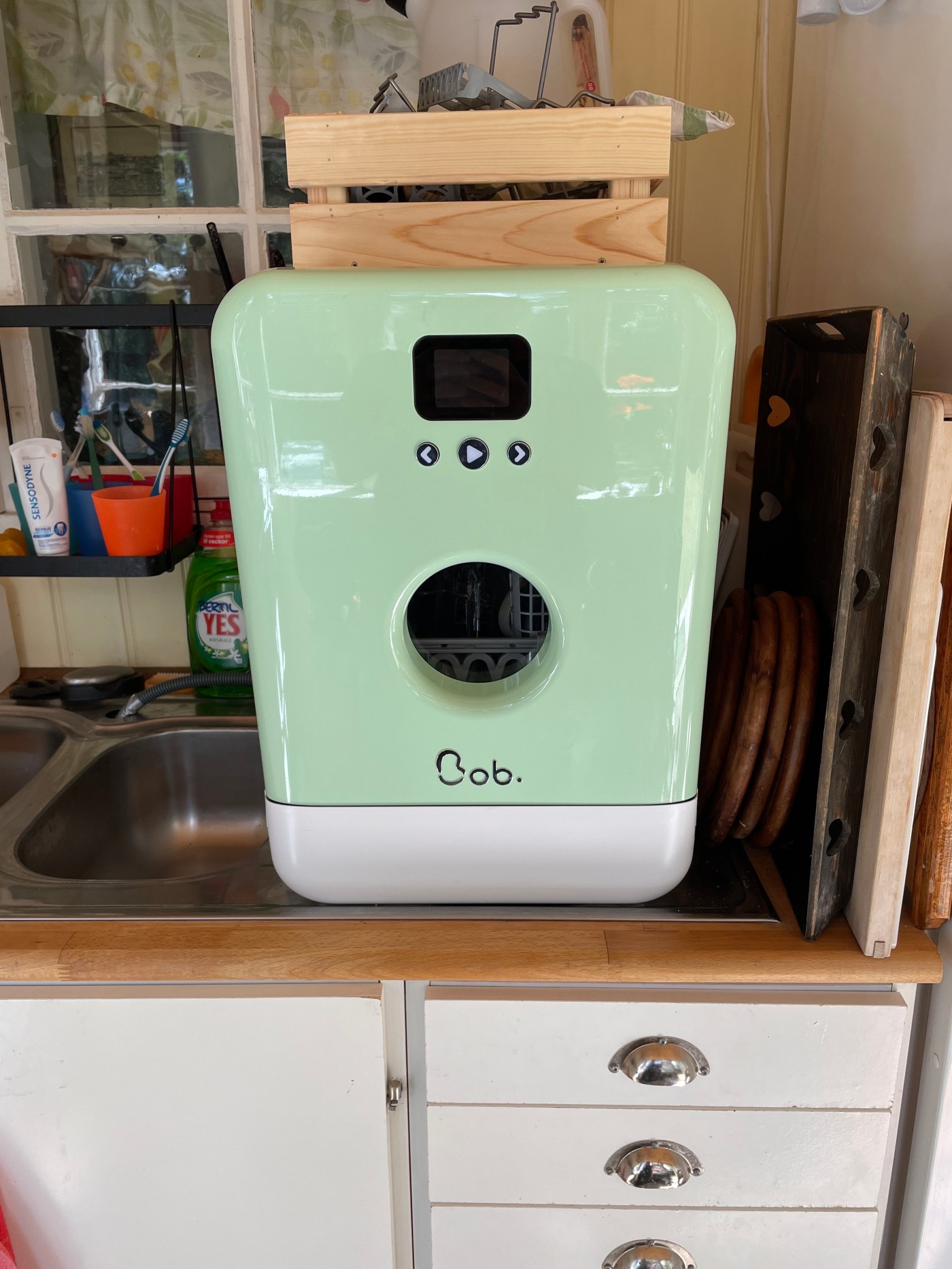 Meet Bob! Det bästa köp vi någonsin gjort! Vi som inte har rinnande vatten, blir ju lite snåla med att diska och därmed har vi använt såååå mycket engångsartiklar. Det har ju aldrig känts riktigt bra men på senare tid har det känts ännu sämre! Men nu!!! Har Magnus hittat en diskmaskin som man kan fylla på vatten manuellt i en behållare, hur bra är inte det!!! Så nu kan vi äta på vanligt porslin och med vanliga bestick 🙏👏🤗