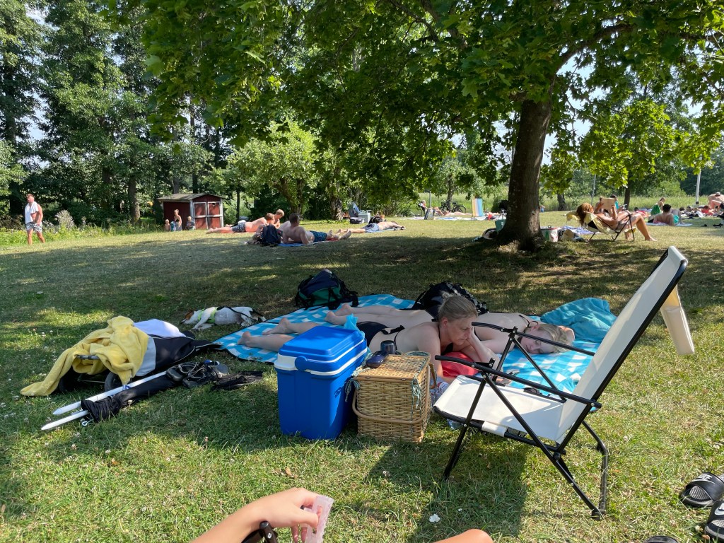 Då låg vi på badet!Jag var rädd att vi skulle stekas där nere,men, även om det var jättevarmt,så var det skönare där än på Tallis!Även för Hugo, fast han tyckte det var jobbigt!