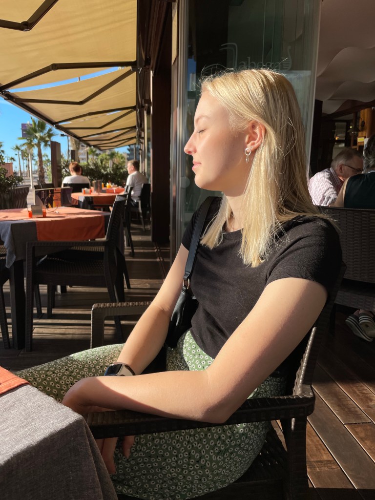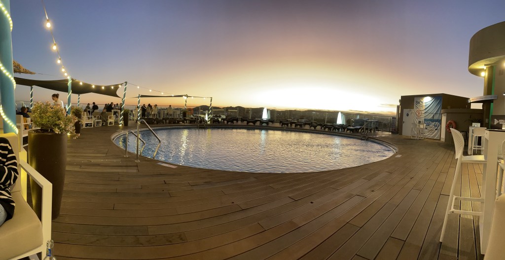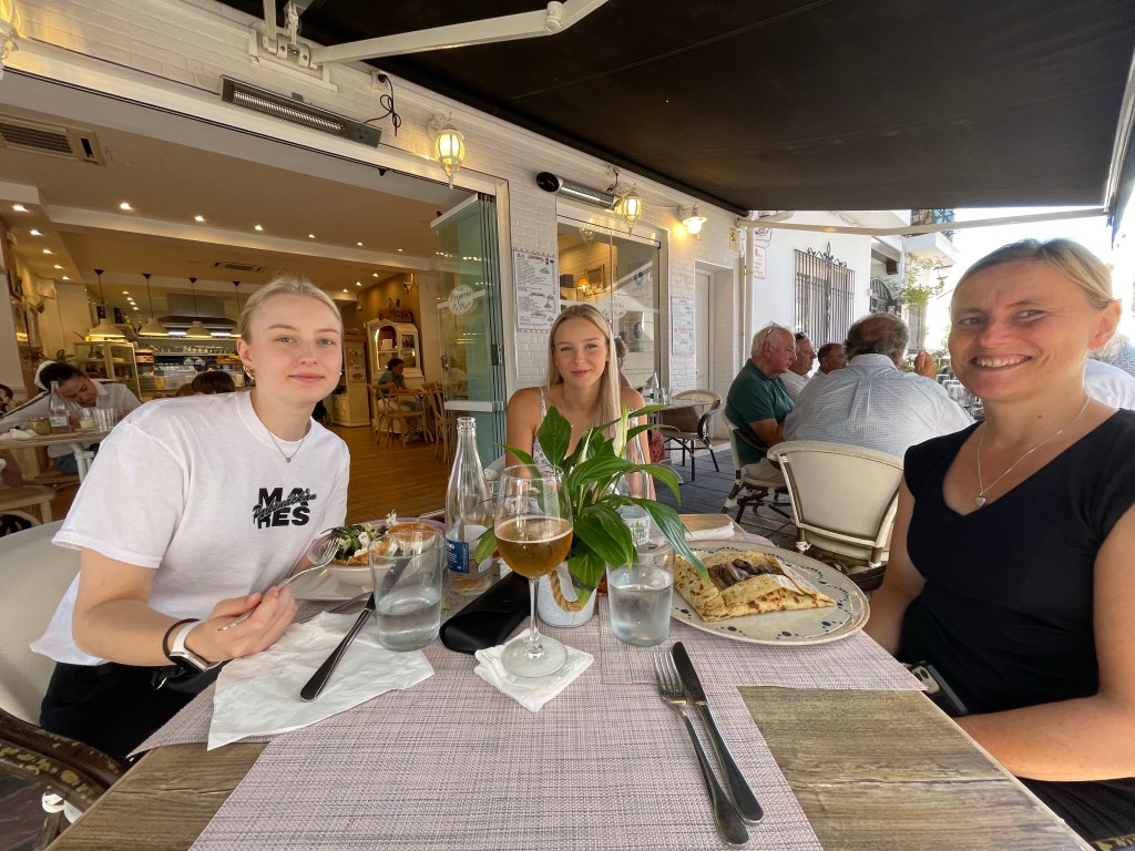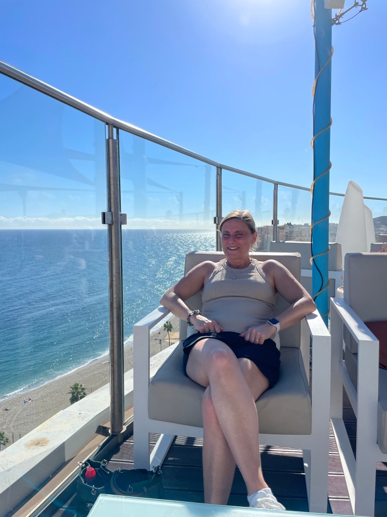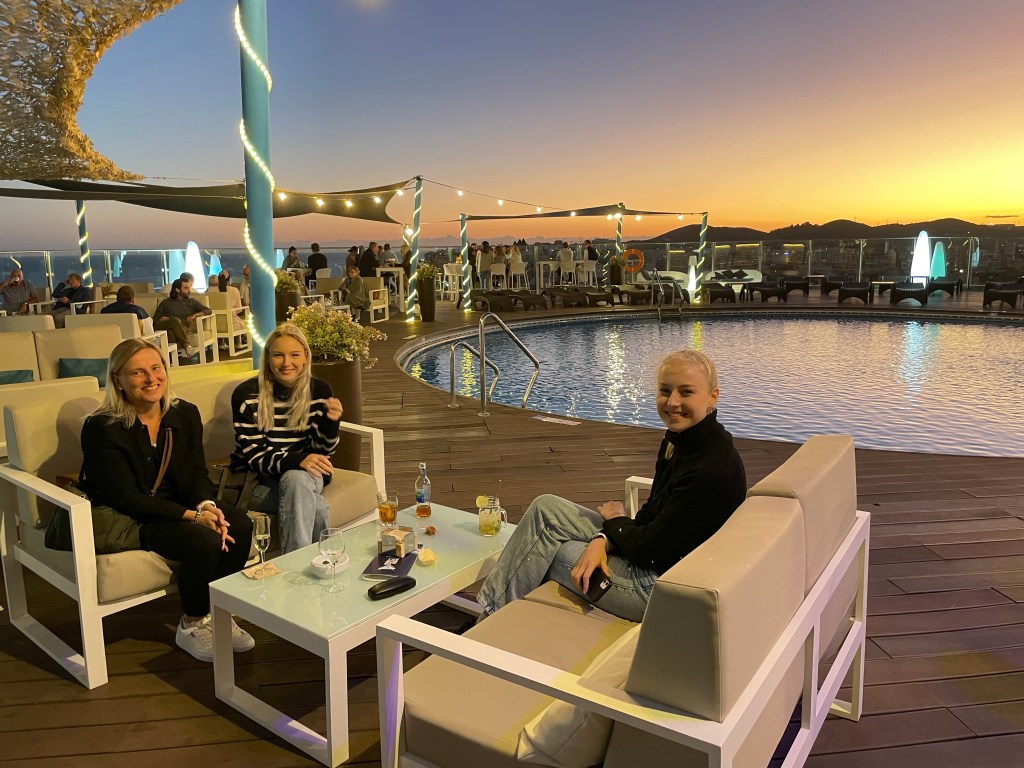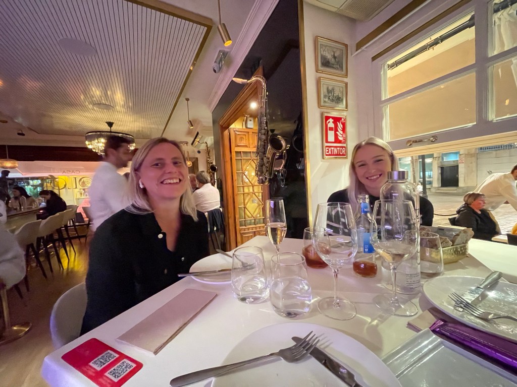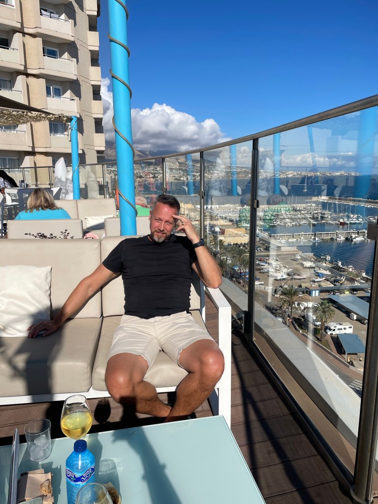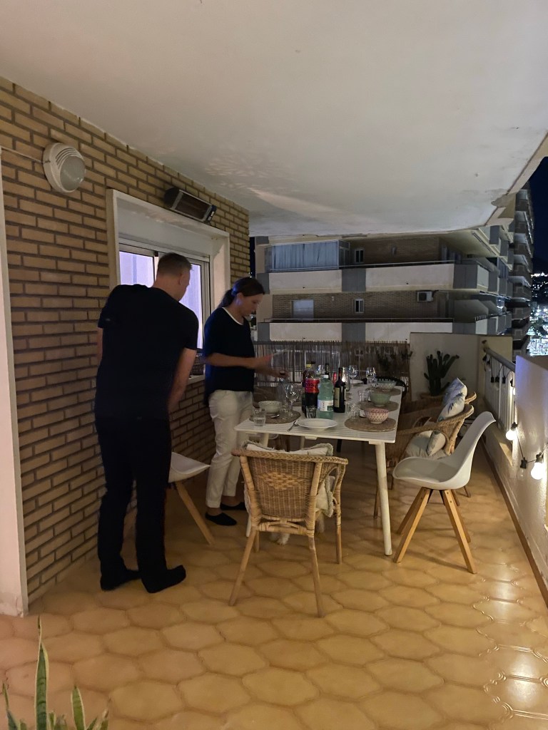 ❤️Bästa gulliga tjejerna hade fixat fin frukost på sängen❤️Och blommor..…och paket också🥰Glad mamma🙏😊Efter frukosten var Lina tvungen att göra sig iordning och gå till skolan……men Tove följde med på en promenad innan det var dax för henne att koppla upp sig och plugga.Då passade Magnus och jag på att kolla in om takbarer fortfarande hade öppet.Och det hade den. Det var så mysigt där uppe så vi satte oss där en stund Kolla vilken proffsbild Magnus tog på sin Sangria 😊Och fiskmåsarna surfande på andra sidan glasväggen!Lite senare började vi kvällen på samma ställeSista kvällen på stan för den här gången.Stilbild på pappa Och så passade Tove på att ha en liten foto shoot med Lina i solnedgången Väldigt fint där uppe!Men det kändes ändå lite udda med en pool där. Det var ändå någon enstaka som badade🫣Sen hittade Tove en jättebra restaurang som låg mitt på ”turisttorget” som vi gick till.Casa Colón hette det. Dom hade allt möjligt gott på menyn. Bra blandning för oss som är två köttälskare och Två ”allt annat”-älskare🥰Vilken bästa bästa-dag för en som älskar födelsedagar💕Sen vandrade vi hem längs stranden mätta och belåtna 🙏Fredag och dax att packa för hemfärd🙁 Men vilken vecka vi har haft! Innan vi åkte bakade Tove en kladdkaka.Men vi hann aldrig vänta tills den hade svalnat så den fick vi lämna kvar till Lina 🙄Ombord på planet och smygfotade av en glad Magnus men……behind the scenes…😅Tack och hej från en tjej som tydligen aldrig kommer bli stor🤷♀️😁