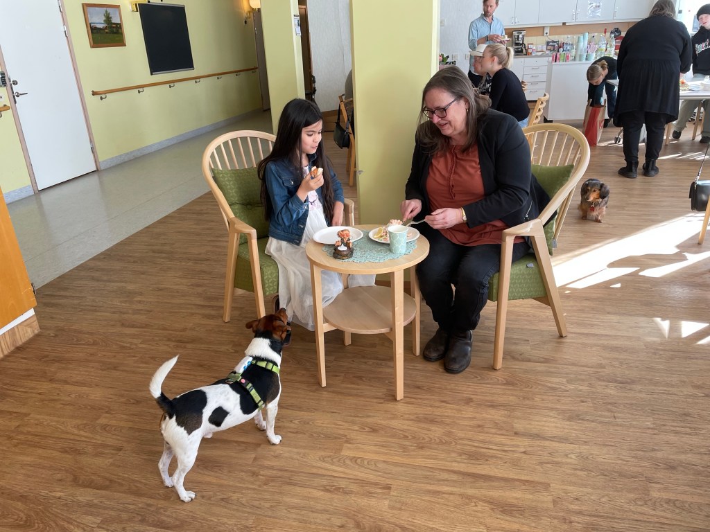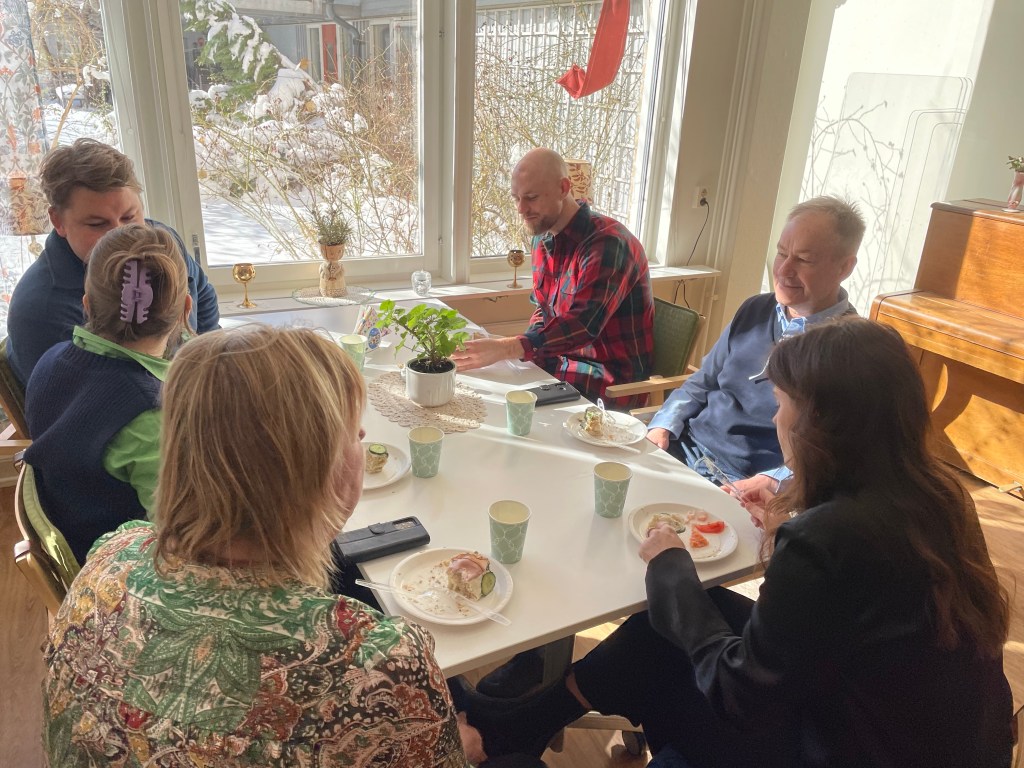 Nina fixade skyltar sĂ„ alla skulle hitta dit.Mamma var sĂ„ fin i klĂ€nning och hatt!Hugo fick ocksĂ„ gĂ„ pĂ„ fest och det fick brorsans Merlin ocksĂ„ đ Det gick jĂ€ttebra, dom var sĂ„ duktiga bĂ„da tvĂ„!Lina som kom hem frĂ„n Spanien förvirrade mamma först âmenâŠvad gör du hĂ€r?!? Ăr inte du i Spanien? Vilken överraskning âđâSer ni hur dom har stavat?!?â Det Ă€r tufft för en pensionerad lĂ€rare att se âfelstavadeâ namn Ă€ven om det Ă€r med flit som namnet pĂ„ lokalenđApropĂ„ felstavade ord⊠Fina ballonger men vad stĂ„r detđ§ eo?Undrar vem som ligger bakom denna upphĂ€ngning đđ€SĂ„, fixat!đ Jaja, det var ingen som sĂ„gđ€Ł Mamma ser dock ut som att det kommer ta ett tag att komma över dettađNina, Marcus, Kerstin och Agneta SmörgĂ„stĂ„rtor pĂ„ plats, dax att hugga in!Lina bakom blommorna, Olle, Hannes och Robin Mamma, Tove, Lina, Olle och Suzanne Isabell, Nina, Emma och Robin MerlinMathias och HannesFamiljen Arvidsson, Agneta, Josefina, Niklas, Marcus, Peter och Kerstin Cassandra med farmor Annika och en vĂ€ldigt korvsugen Hugo đHugo chillar i solen, Merlin tycker det Ă€r jĂ€ttetrĂ„kigt đUngdomarna pĂ„vĂ€g ut pĂ„ hundpromenad â€ïžAlla goda fikatĂ„rtorđ„° Jag smakade allađSen blev det paketöppning Kusin Gunilla och hennes Roger som satt fast i köer hann precis fram sĂ„ de kunde vara med pĂ„ skönsĂ„ng för mammađđ¶Ja mĂ„ hon levađ¶âŠoch ett fyrfaldigt leve, hurra hurra hurra hurra!Hugo somnade som en stock nĂ€r vi kom hemđŽ