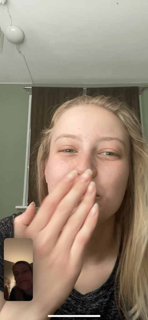Födelsedagen på tisdagmorgonen firades med skönsång och Tove på FaceTime.
