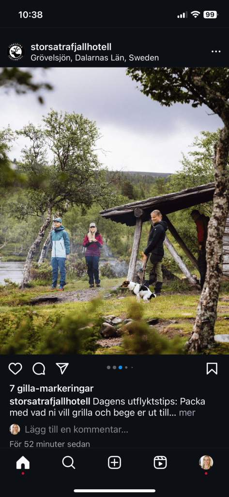 6,5 timmar😱 Det är längre än man tror. Det ligger ganska nära Idre på gränsen till Norge.Så för Hugos skull stannade vi över i Mora på vägen upp.På Mora hotell😊 Hundvänligt hotell så klart!Hugo fick till och med vara med på restaurangen om vi satt på uteserveringen. Och det gjorde inget för de hade värmare starkare än Bahamas sol, så vi frös inte!God mat och trevlig ägare som satt och pratade med oss en stund. Kolla in min efterrätt!Kolla mängden jordgubbar, gött! 🍓 😋Kvällspromenad förbi Zornstatyn.Dagen efter körde vi sista biten och kom fram till det här mysiga stället!Hugo klarade faktiskt resan bättre än vi hade vågat hoppas på, så duktig! 🙏Första lilla minipromenaden runt hörnet vittnade redan om att det är nära till naturen här!På eftermiddagen började uppdraget med fotograf Isabella Ståhl och Andreas och Malins kompisar från Järvsö.Det blev en båtutflykt på Grövelsjön. Charmig båt och en kapten som verkligen var bra på att berätta historier om området.Turen gick bland annat förbi kvarlevorna från ett kraschat tyskt flyg från andra världskriget,Och vidare över norska gränsen och tillbaka, premiär på båttur för Hugo!På vägen hem stannade vi på ytterligare fotografering.Men vad håller matte på med?!?Hugo tyckte verkligen vi agerade konstigt 😂På kvällen åt vi middag vid brasan. Det var lite ruggigt väder när vi var där så mysfaktorn med brasan var inte fel!😍Mitt under middagen bestämde sig en älg för att ta vägen över gräsmattan till alla middagsgästers förtjusning!Ståtliga djur det där.Nästa dag var vi tillbaka vid Grövelsjön…För lite fotografering vid vindskyddet.Inte helt tur med vädret den här dagen heller, 10 grader och regn😬Men en brasa på det kan göra vem som helst på bra humör!Fin natur är det hur som helst!Isabella, som också är gravid ska tilläggas, gjorde i alla fall allt för fotokonsten och tog bilder på allt från regndroppar på vattenytan till ovana tafatta fotomodeller😂Korvgrillning, kaffe och nybakade bullar från hotellet i vindskyddet, inte helt fel❤️…Hugo gillar också korv😂Filéafton på kvällen, jag hängde med på förrätten, sillfilén, men sen hoppade jag över köttvarianten som för övrigt såg väldigt god ut om man äter kött och fick en god torskfilé istället😊Egen snaps har de också 👍Köttbild på Magnus begäran😁Morgon efter bestämde vi oss snabbt för att åka hem, Tove var nämligen så dålig så hon hade varit inne på akuten två gånger medan vi var i Storsätra 😬 Vi fick så bråttom att vi glömde betala notan🙄 (men det har vi naturligtvis fixat!). Sen glömde vi lämna tillbaka rumsnyckeln och upptäckte det i Mora och så glömde jag mina nattkläder under kudden😂 PS Tove mår bra nu!De första bilderna har kommit ut nu på Storsätras Insta, spännande!😊Lite kul att se hur det blev!Magnus berömda scoutbrasa😊Va, att vi skulle bli fotomodeller ändå!💭Skål på det!🥂