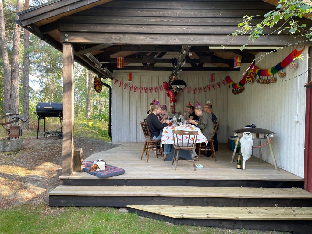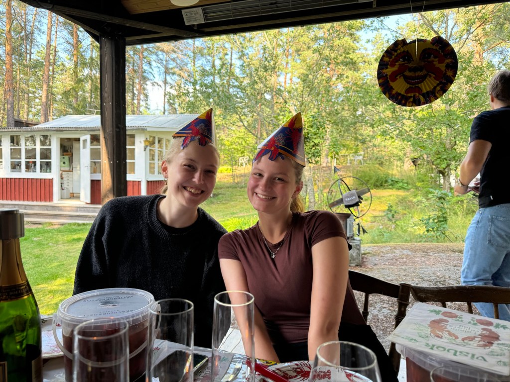 Eftersom vi var på vinprovning på fredagen så sov Tove över hos oss och hängde med Hugo för att vi skulle kunna åka så tidigt som möjligt till landet.På vägen ner hämtade vi upp Lina i sin fina lånade lägenhet i Linköping, när vi gick utanför hörde Tove ett svagt ”Tove, Tove🤗”…Och det var ju Lina på våning 5😁Framme på landet!Broströmmarna har anlänt!På plats, pyntat och klart ✅ Nu kör vi!Tove kämpar med partyhatten som ville fastna överallt utom på huvudet. Jonna fick rycka ut och tråckla ut den ur örhänget😊Isabella och Magnus Magnus och LinaTove och JonnaHela gänget!…och Hugo❤️ Foto: HenricHan ser ju beskedlig ut men sen visade det sig att han också hade tagit sig ett glas bubbel, utan att fråga matte!☝️🤨Nya fina trappan!Skogen en sommarkväll, hur fint är inte det🫶