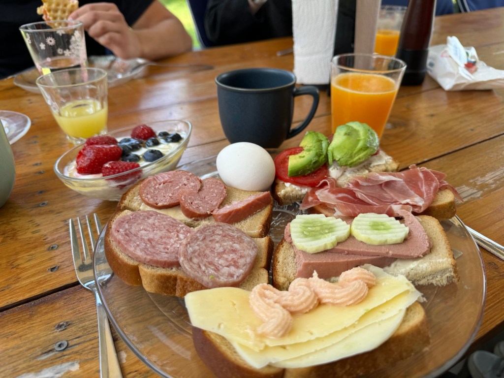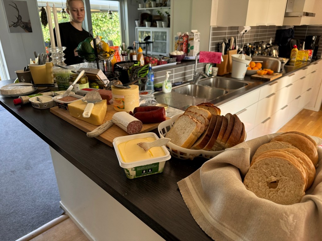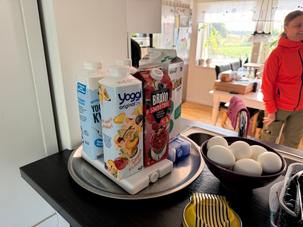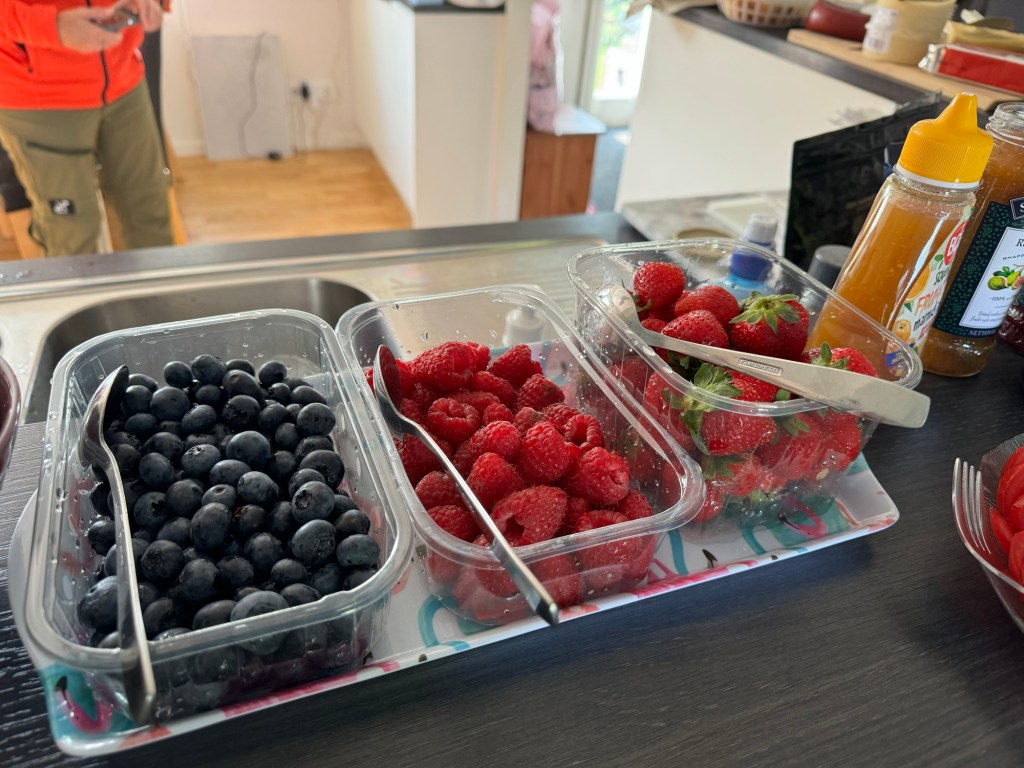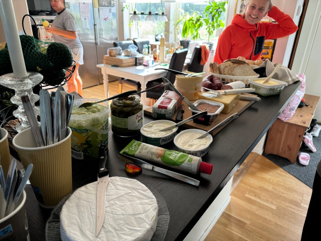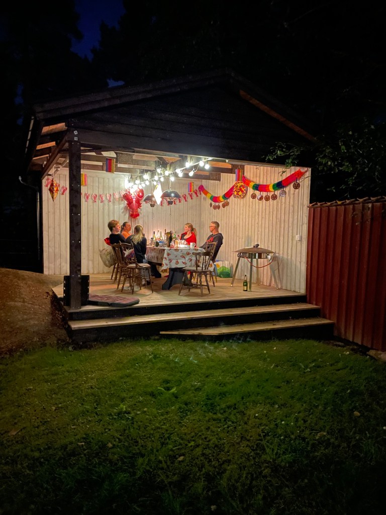 Bra att spara till nästa år om det visade sig att de slitna sånghäften vi har från Mona (tror jag) inte går att använda nästa år😂Den är mysig vår lilla veranda!Och nu kan man sitta läääänge för Sonny har fixat både lyse och infravärme🙏…och ny utebelysning på friggan!🥳 Mysig liten innegård vi har!Morgonen efter var det dax för Lötenfrukost, årets lyxigaste frukost/brunch!!!Kolla in bara, färska bär…Och grönsaker…Diverse val av yoghurt, kvarg, smoothies…Müsli, Lötenhonung, skinka, Nutella…Olika bröd och ostar…Och andra pålägg…Kaffe och mängder med tesorter…Färskpressad juice…Och VÅFFLOR, vilken fest!👌