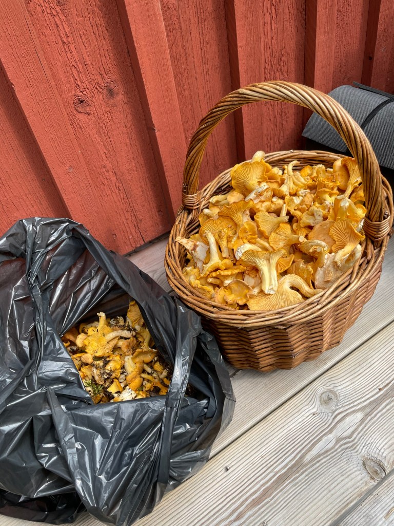 Lyxigt!😋Lite fotokonst?😁Magnus ser redo ut att börja☺️ Då kör vi!Kusintjejerna❤️ Foto: Ingela Magnus frukost, runda 1😁Jag tyckte det var supergott (som synes😂)! Bra tradition!På vägen hem tog jag och tjejerna en tur i skogen…Och hittade massor med svamp!Nya tricket är att rensa i skogen direkt, men det var så mycket myggor ute så till slut fick även jag ge upp som inte är lika hårt drabbad av myggen som tjejerna!🦟🦟🦟🦟🦟🦟🦟Men trots myggorna blev det så här mycket kantareller 🤗Skogens guld 💛💛💛