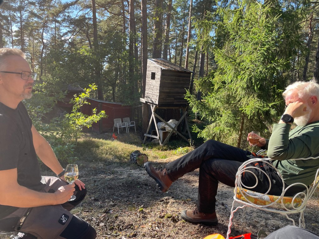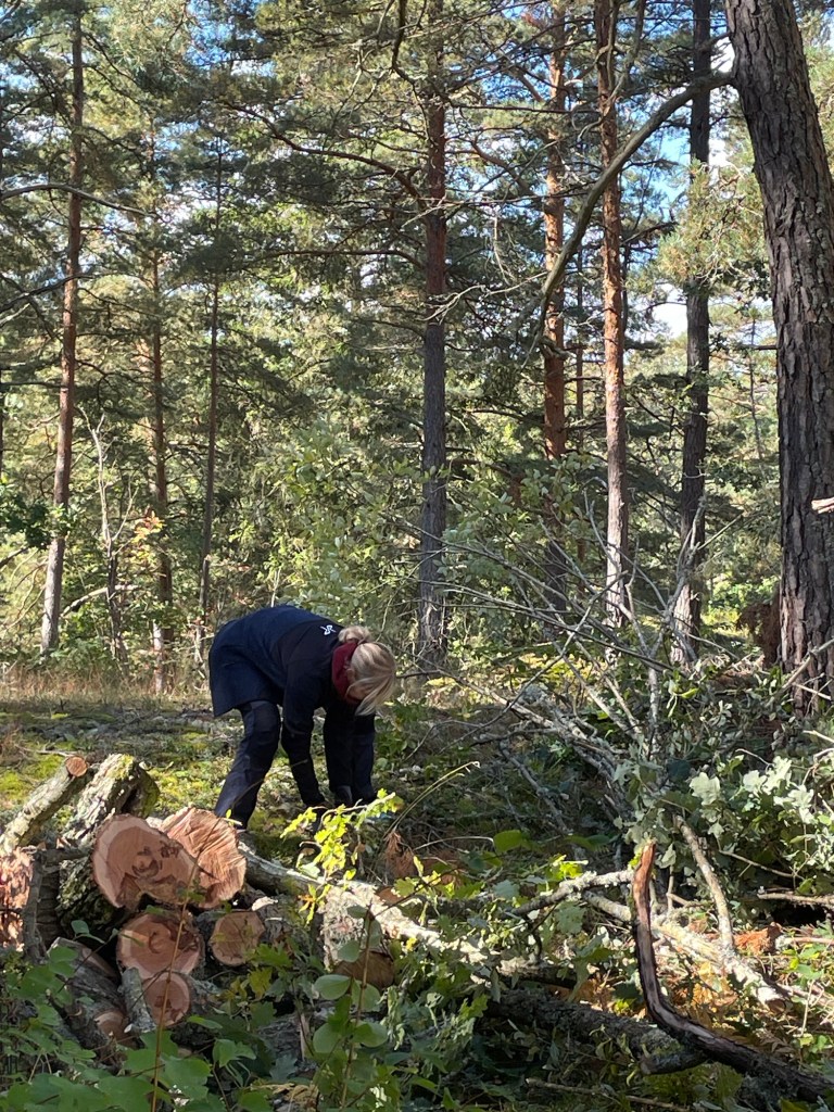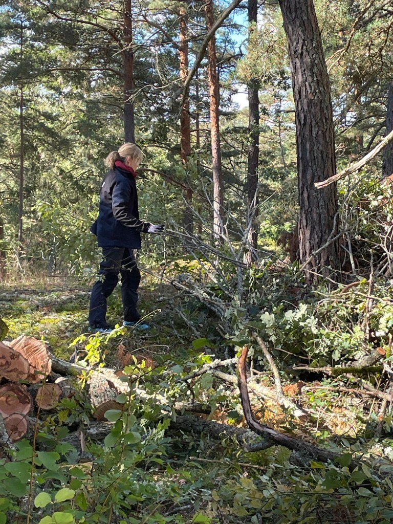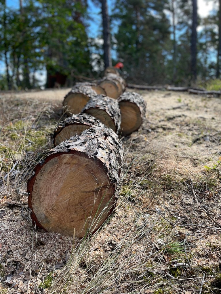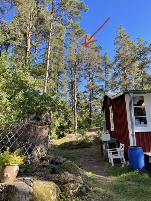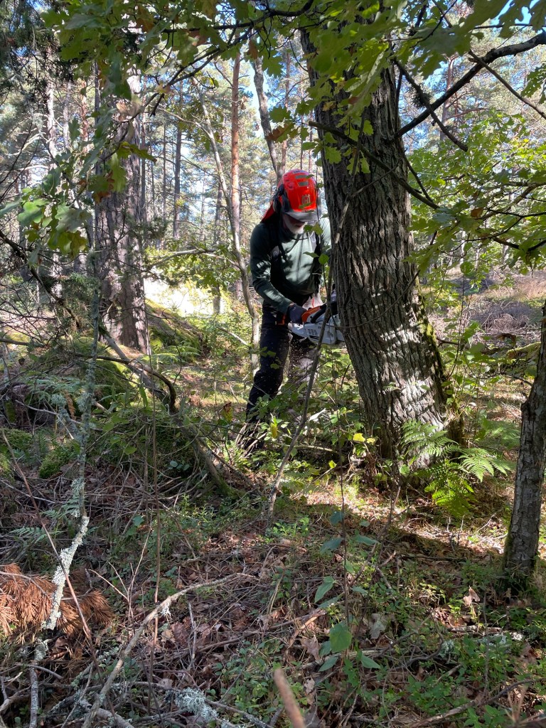Vi har haft några träd som har dött och nu lutar lite oroväckande mot husen på landet. I helgen fick vi hjälp av familjen Holm med Peter i spetsen, han har ju gått och utbildat sig till trädfällare👍
