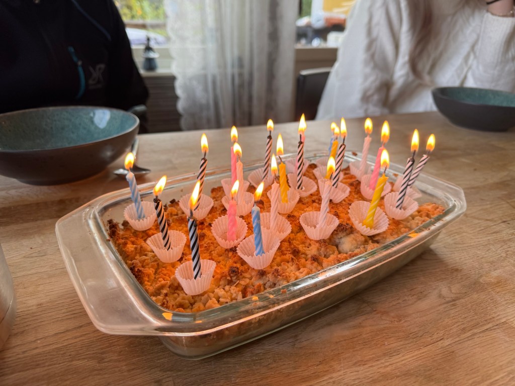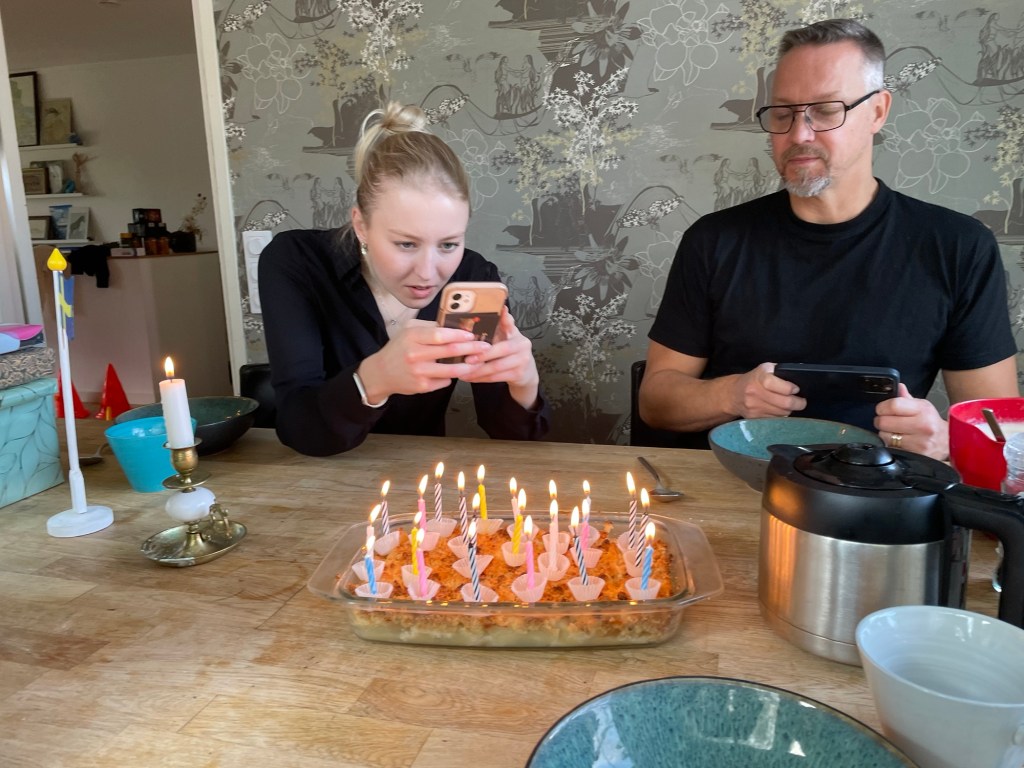 I Ă„r var det nya tider pĂ„ Toves födelsedag. Hon bor ju inte hemma lĂ€ngre sĂ„ den vanliga morgonrutinen med tĂ„rta, sĂ„ng och paket pĂ„ sĂ€ngen funkar med andra ord inteđ«€