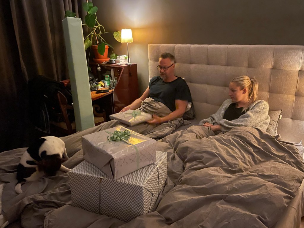 4 juni, Magnus födelsedag!🥳 Lina och jag kom hem från Linköping igår där vi har varit och packat ihop Linas saker, hon har sommarlov nu och flyttar hem över sommaren. Vad vi också har gjort är att fixa fina paket till pappa Magnus😁 För här ska det firas!