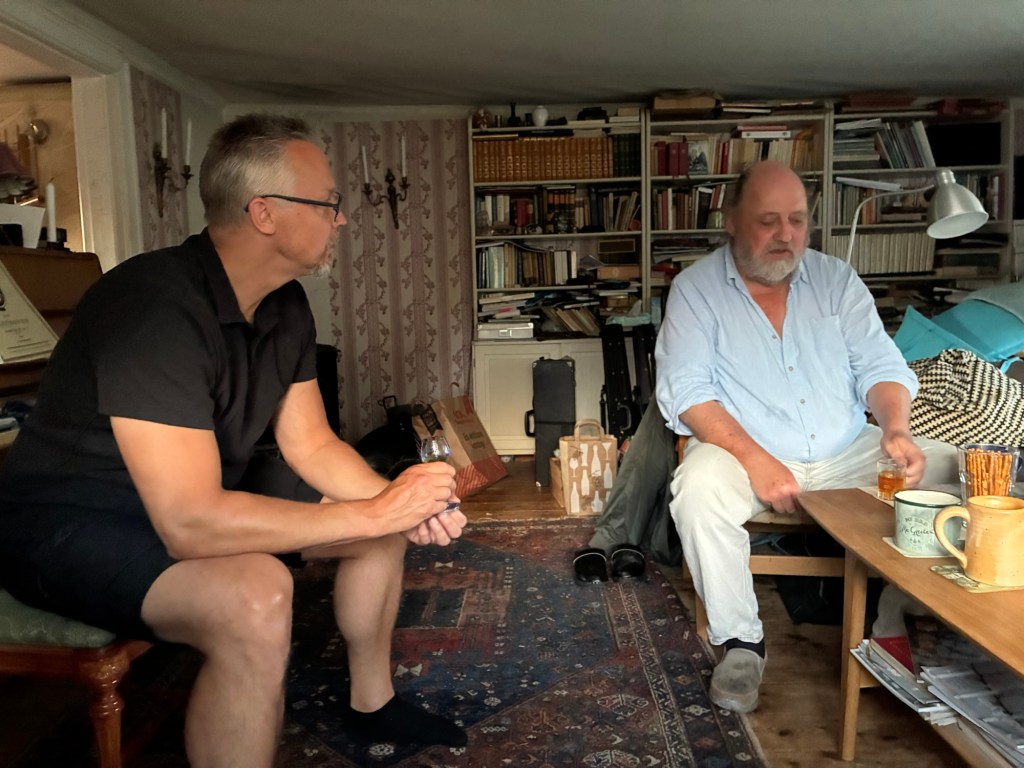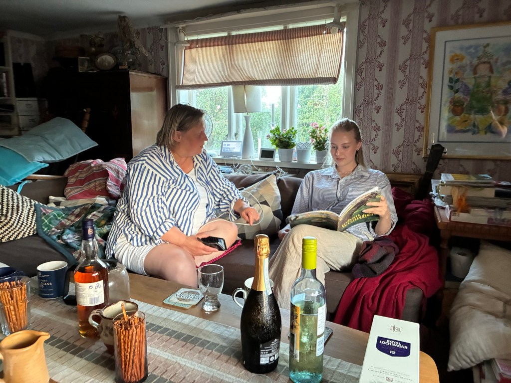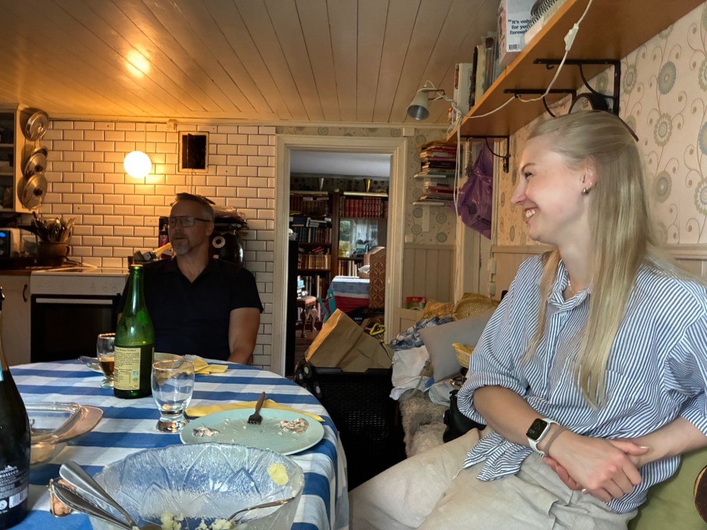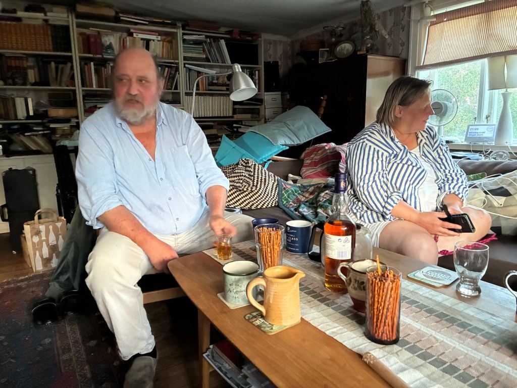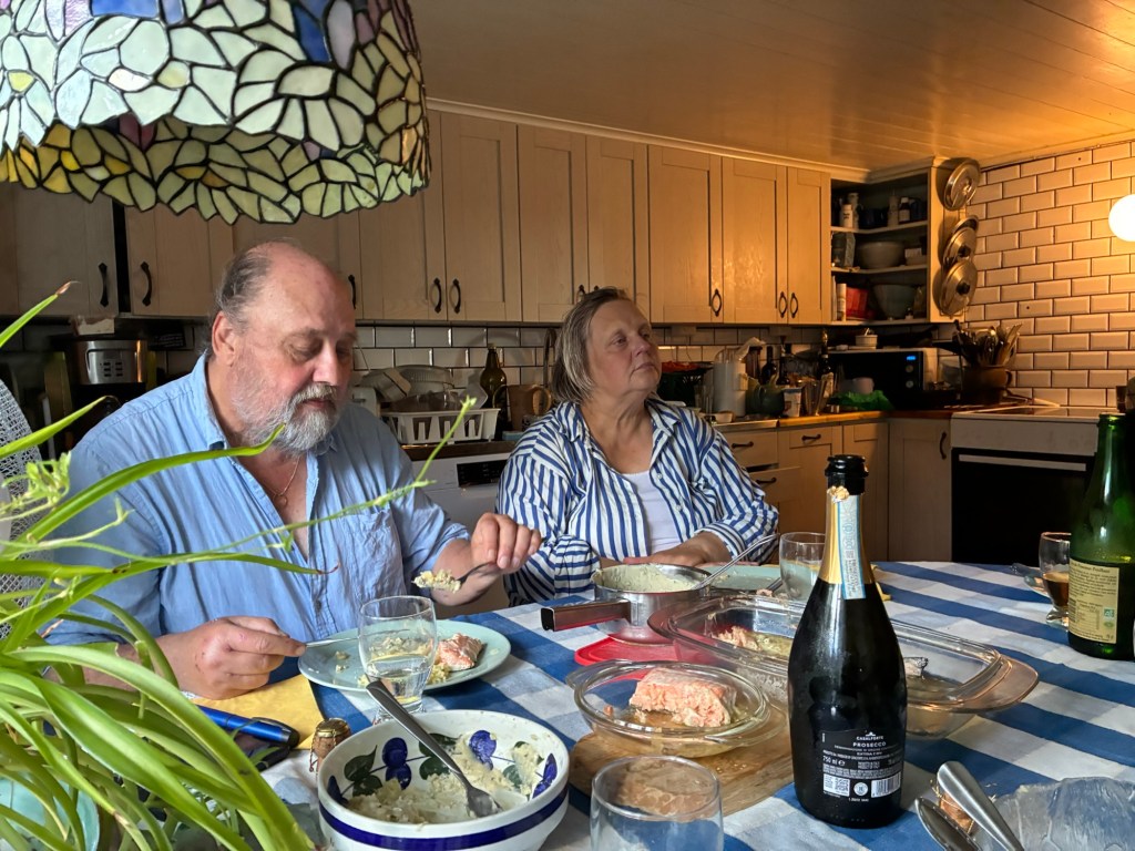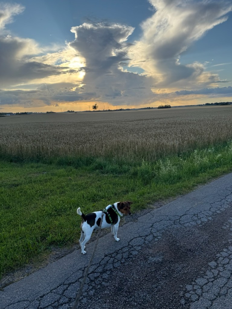 I torsdags åkte vi en sväng och hälsade på hos Olle och Suzi i Rappesta på andra sidan Linköping🙂 De har precis fått hem en omplacerad hund – Bax(ter) – en Flatcoted retriever-hanne på 4 år, sprallig som tusan, ett litet yrväder🤪. Tanken var att försöka bekanta Hugo med Bax hemma hos brorsan, men det var svårt. Hugo tyckte Bax var på tok för sprallig och gillade inte när Bax kom för nära, samtidigt försökte Bax att visa sin goda vilja och lade sig ner för att Hugo skulle känna sig bekväm. Men då blev Hugo lite kaxig och gick fram och mopsade sig lite…och då blev Bax sprallig och ville leka och så blev Hugo sur… så höll det på sen😵💫 Vi höll ut genom middagen men sen gick Tove en promenad med Hugo och så fick han sitta i bilen med Hundläget på (AC), vilket han nog tyckte var skönt, han somnade där☺️… och vi fick prata lite i lugn och ro en stund👍