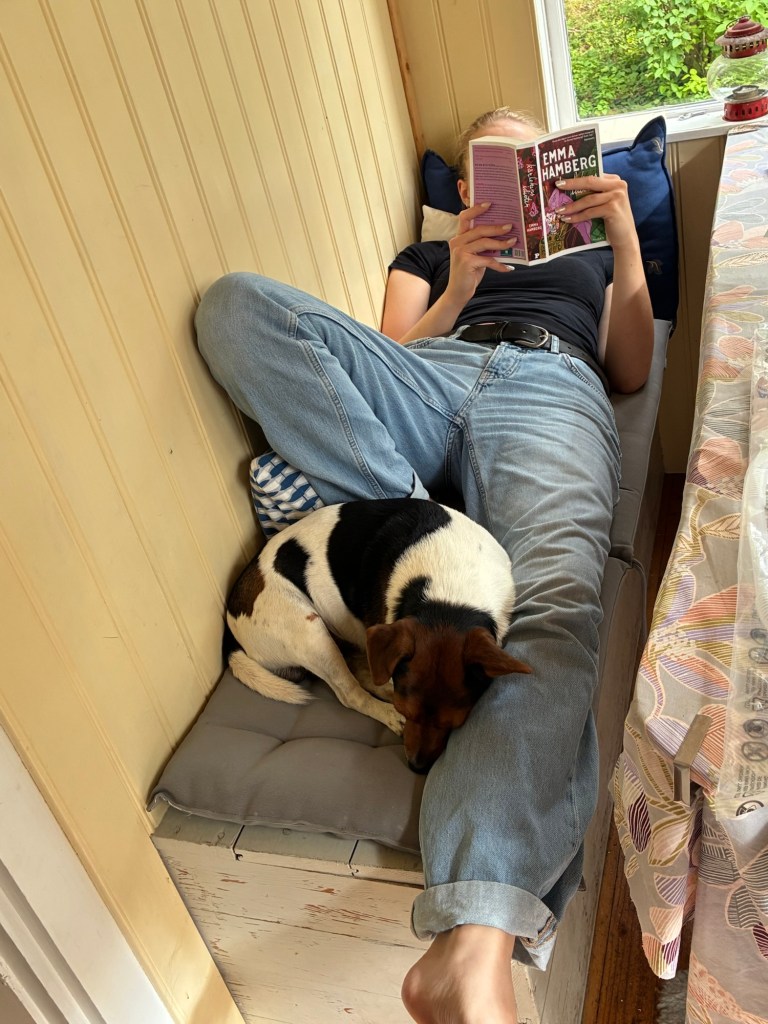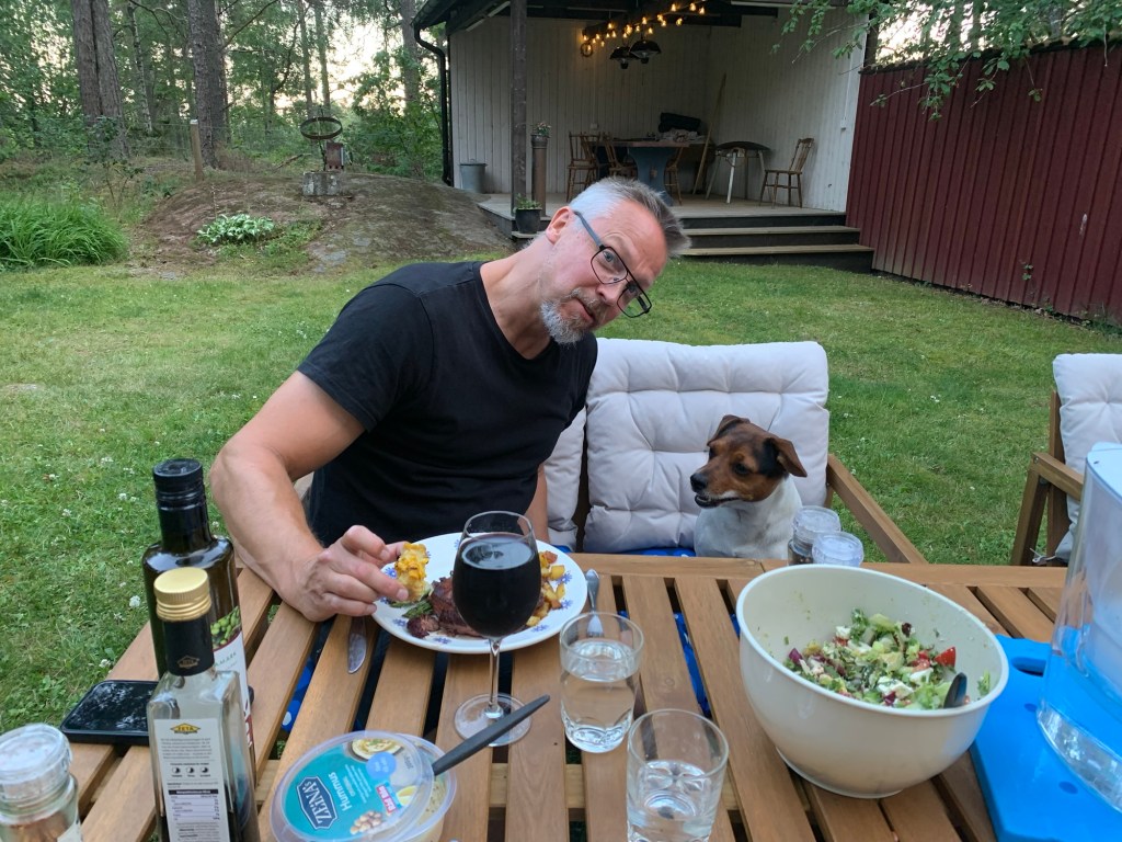 Äntligen semester!❤️Magnus och Hugo njuter också😊Jonna och Ingela på besökPromenad i kvällssolen Flaggning på farfar Berras födelsedagMinst en av Magnus goda wokmiddagar per semester är sen gammalt Pad Thai blev det denna gångKvällsmys på glasverandanWok nummer 2 minsann!Paella blev det då😋Gulligaste Hugo!På gårdsbutiksresa med Tove som äntligen kom ner!❤️Lite fikaNya möbler för i år by the way👌Hugo i skogenTove och jag på blåbär- och svampjaktLyckad skörd❤️Lyx!!!❤️❤️Magnus överraskade med lite kräftorNöjd Tove😁Magnus där han trivs allra bäst Vid grillen😁Sen åt vi tydligen middag med… Hugo😂Trasig trotjänareMen, med alla metoder tillåtna……lyckades Magnus laga den👍Landet ändå! En god bok på sofflocket, bättre semesterbild får man ju leta efter!