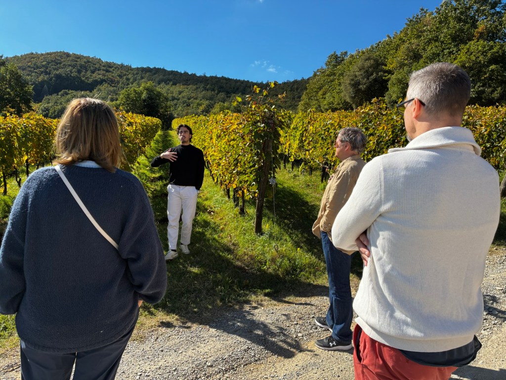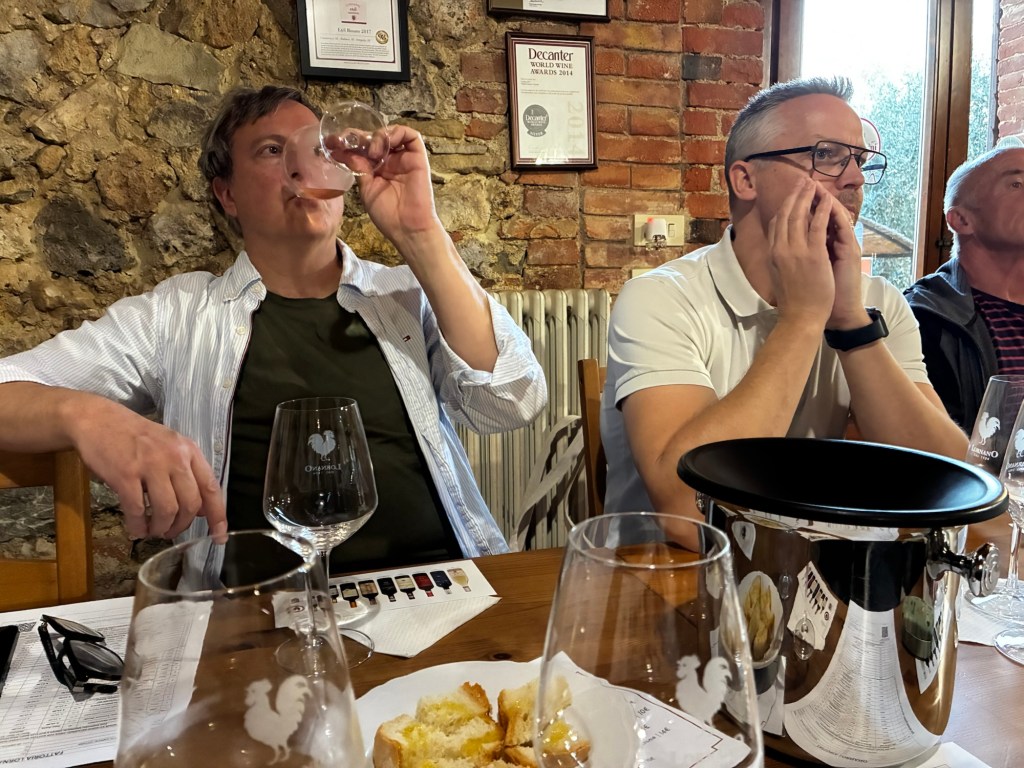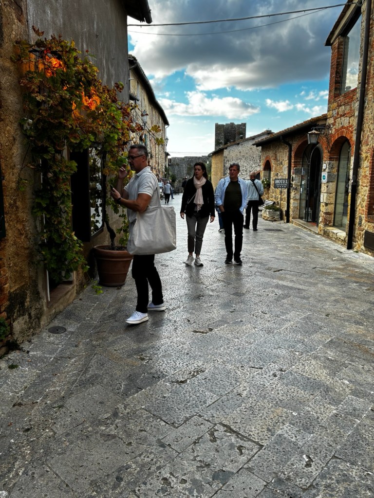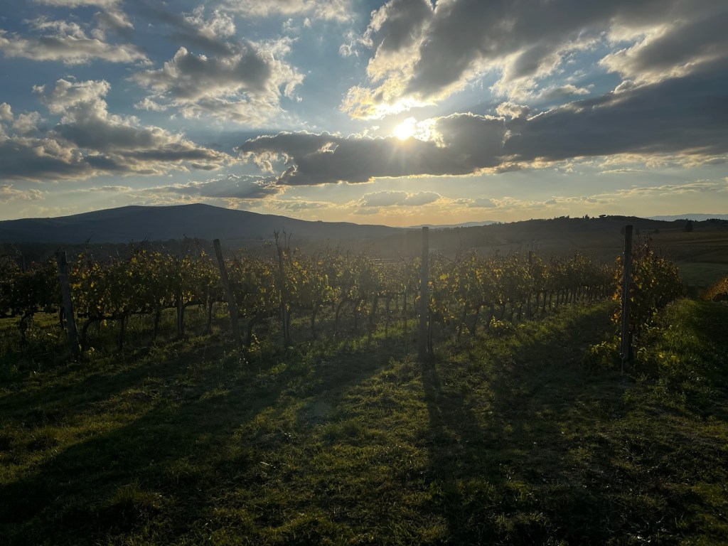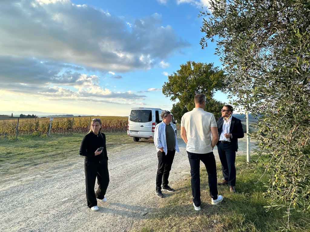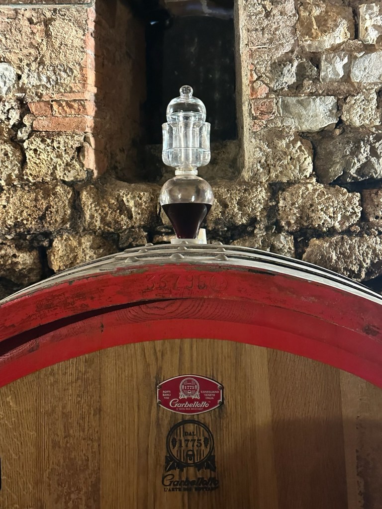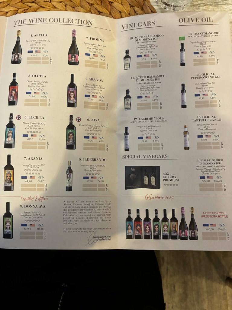 Vår guide berättar…De hade också en olivlund som de höll på att skörda från.Efter föreläsningen var det dax för vinprovning. Först tyckte vi det var en bra idé att sitta ute……men det blåste lite väl mycket…Så vi flyttade in i vinkällaren istället.😊Lite plock till.Det här var vinerna vi testade.Alla deras viner.Vacker utsikt även här 👌Tillbaka i Montepulciano gick vi en promenad upp i staden.Stopp för att njuta av utsikten!Gulliga statyer hade de😊Högst upp hittade vi ett hus som såg intressant ut!Med fin trädgård.En arkeologisk utgrävning under golvetOch ett vinprovning med självservering 😁Lite kul, det var vi tvungna att testa!Vi hittade en väldigt liten och söt bil på vägen hem, det måste fotograferas 😊Magnus för referens 😁Tillbaka i lägenheten och njuta av utsikten!Innan middagen gjord på det vi köpte på marknaden ❤️Morgonen efter checkade vi ut och begav oss till Sienna, där vi ska bo en natt. På ett stopp på vägen hittade vi den här söta medcyklisten🤗I Sienna har Johan hittat det mest centrala boendet man kan hitta mitt på Piazza il Campo (höger pin)! Vi fick dock gå en bit med väskorna eftersom centrumet är bilfritt😁Vi fick tillgång till att ställa av väskorna i lägenheten tidigare av den snälla värden och var så klart tvungna att ta en bild på utsikten!… Innan vi gick genom staden för att möta upp en transport som ska ta oss till två vingårdar! På vägen såg vi en sån här berömd staty La Lupa Capitolina.På resan stannade vi i en liten gullig by som vi promenerade runt i en stund.Kusinerna❤️Ett stopp på vägen utanför denna vingård.Den här bilden säger lite om hur det var när Magnus och Johanna var små❤️😂Första vinprovningen på vägen.Vår guide.De hade en story om 9 kvinnor som alla var representerade på varsitt vin och målade av en konstnär.De var goda viner men kanske inte i relation till priset… enligt Johan och Johanna som är väääldigt mycket mer professionella än vi🤓🤓Fina flaskor i alla fall!Stopp i en annan liten by.Påväg till nästa ställe stannade chauffören på ett personligt favoritställe.Jag tror hans familj ägde marken🤔🤔Han berättade att hans familj brukade ta med sig mat dit och åt där ute…… med denna utsikt!Man förstår ju vad mysigt det är!!Utsikten åt andra hållet var en olivlund.Här var de inte skördade än.Nästa vingårdSå fina statyer överallt, jag har nog aldrig fotat så många tidigare 😂Samling för guidningVår guide, en jättegullig dam!