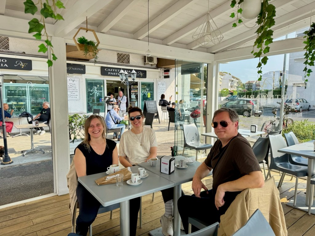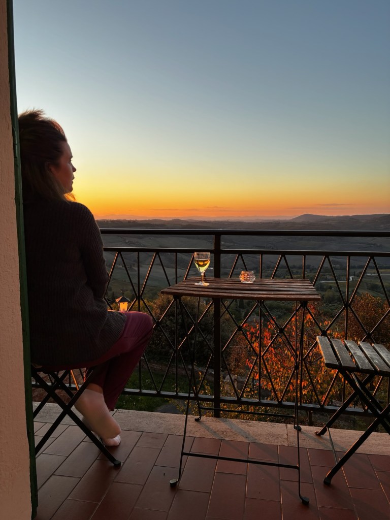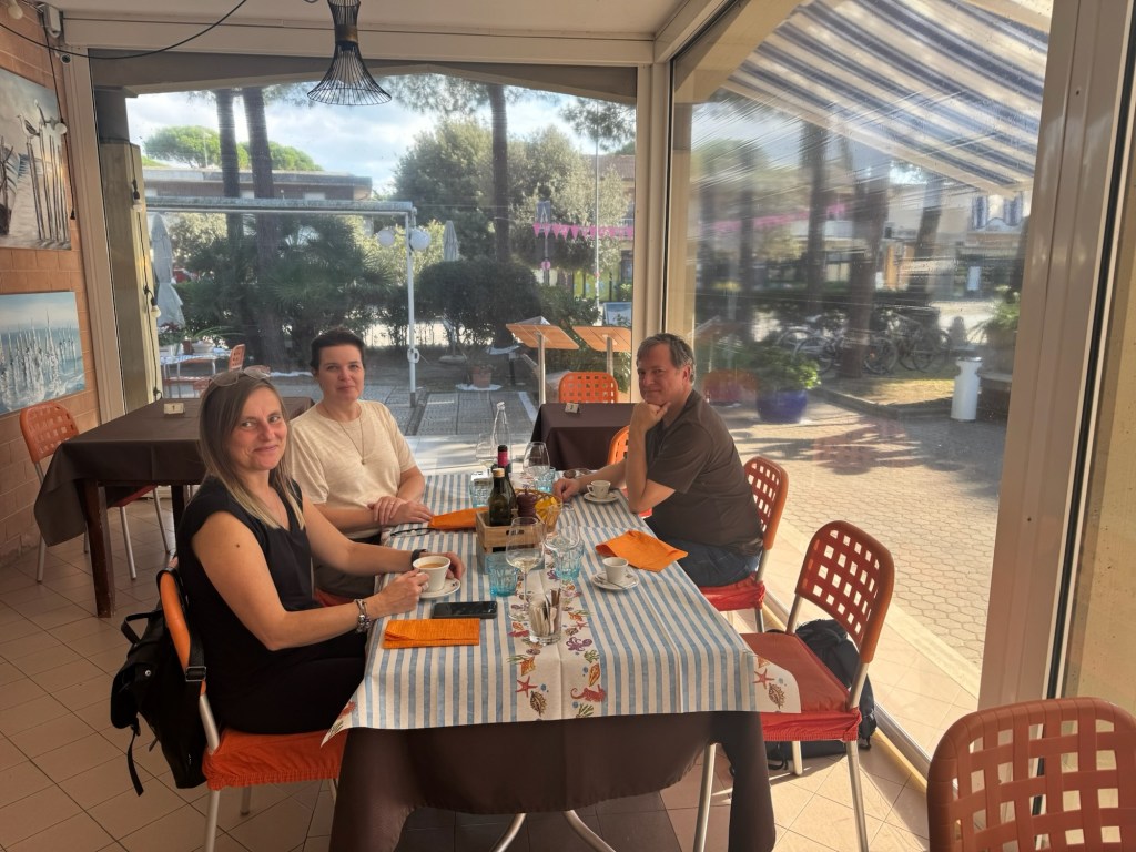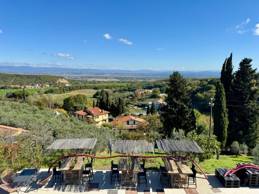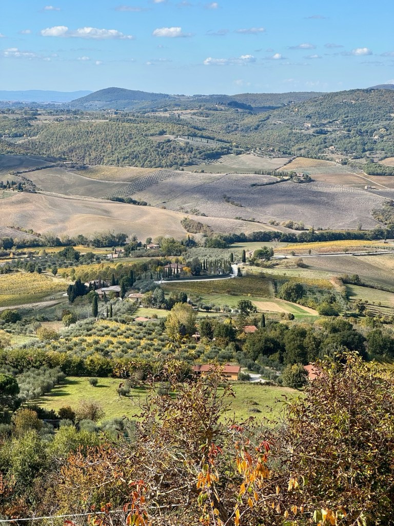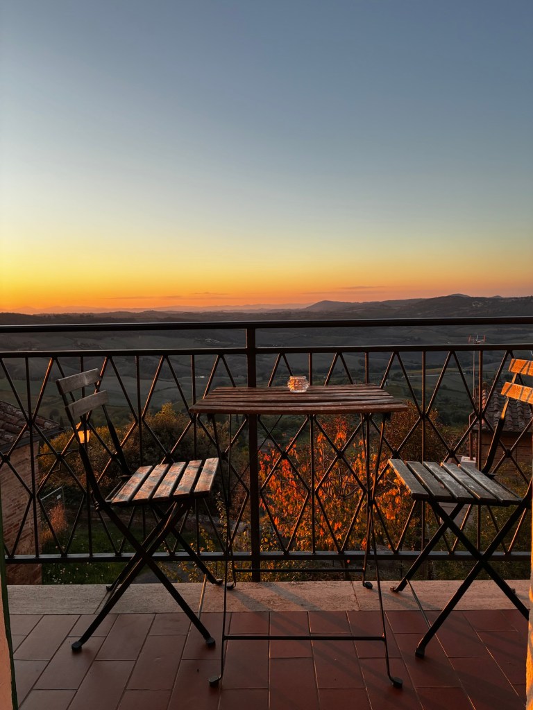 Tidig morgon på Arlanda……och några timmar senare, första kaffet strax utanför Rom ☺️ sedan vidare till Toscana!Vi gjorde det klassiska misstaget att inte ha koll på siestatider och hade liiite svårt att hitta en öppen restaurang att äta lunch på😟Men då fick vi se en glimt av havet också🤓Vi hittade till slut en trevlig restaurang preciiis innan de skulle stänga.God Pasta Vongole blev det där!Framme i Montepulciano och vår fina Airbnb lägenhet. Utsikten var verkligen otrolig!😍