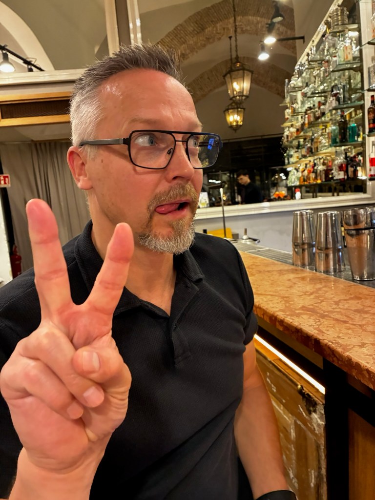 Vyn från vår balkong.Morgonsol☀️Promenad genom stan på jakt efter lite frukost.🥪Ingången till vårt husDags att ta oss vidare mot……Rom, på kvällen åkte vi in till stan och såg den Spanska trappan.Fontana di TreviPantheonMiddag på stan😊Och så hittade vi en trevlig barSom gjorde fina drinkar.Skål!”Vår” bartender Det här får bli sista bilden❤️ och representera resan, en väldigt lyckad sådan!