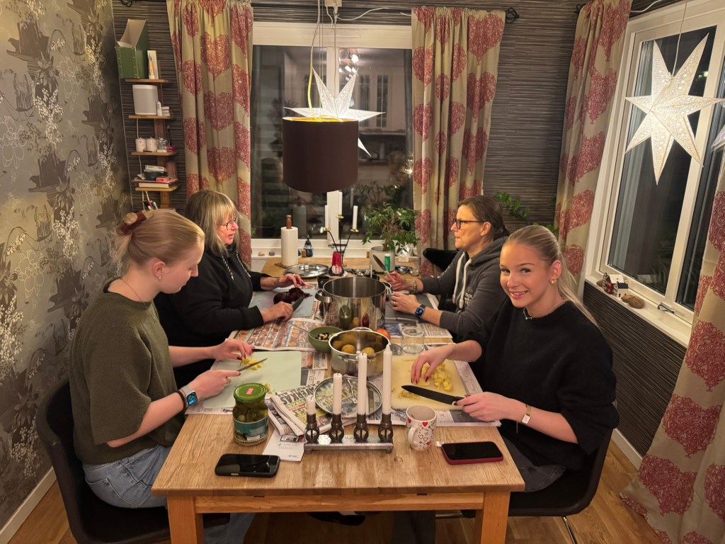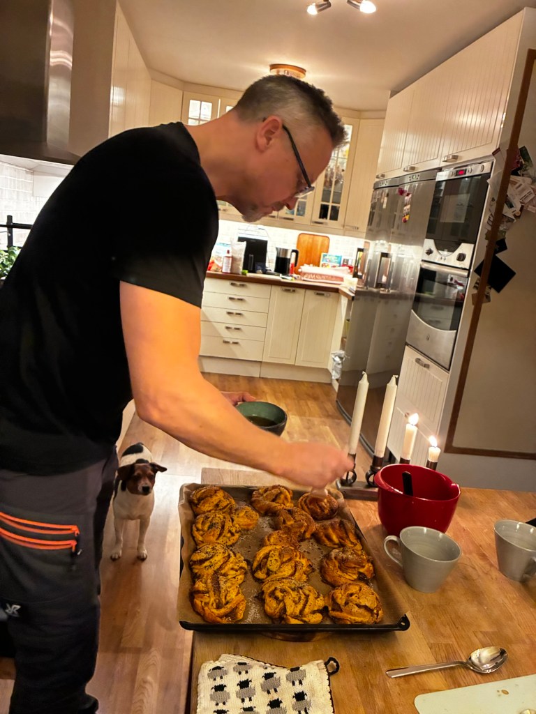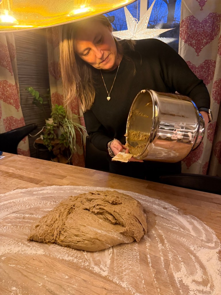 Degen klar för utbakning!Sex. Limpor ska det bli!Medan limporna jäser gick jag ut på promenad med Hugo och Magnus och Tove satte igång en saffransbulledeg😋👍Kavla…… på med fyllning……jäsning och topping (och provsmakning av limporna 😁)……gräddning och lite mer topping…Sen blir de så här fina och jättegoda!!!När vi kom hem från luciafirandet i Linköping åkte Magnus och jag och jagade gran. De var faktiskt slutsålda på Bauhaus där vi brukar köpa men utanför vårt Coop fanns det kvar som tur var!😅Stjärnan i toppen på plats!Sen ska det förstås göras Sillsallad! Det bästa på julbordet! Rödbetor och potatis på gång!Enligt tradition så kommer Nina över och skär vi tillsammans efter mormor Gretas recept❤️Det blir jättemycket på det receptet men det går faktiskt åt, jag kan leva på det länge🫶Dagen före dopparedagen åkte Nina och jag till mamma och firade lilljul med paket och lite sillsallad med skinka och en mammas limpmacka.❤️Nya snygga halsbandet!🥰Gruppbild😁Magnus stod i köket heeela dagen och lagade mat!På kvällen kom Broströmmarna och hade uppesittarkväll med oss. Premiär för oss med Bingolotto, ganska kul måste jag erkänna!Fina granen med alla paket.Provsmak av skinkan som Isabella kom med🙏JulfrukostRedo för Kalle Till och med Hugo var julfin med tomteluva som han fått av Broströms😊Medan vi var bänkade framför TVn…Fixades det med julmaten i köket.Kockarna Magnus och Ingela……och Tove som gjorde sin goda sallad!Allt klart för att huggas in på!😋+ varm mat + Jansson, köttbullar och prinskorv 😅Långbordet dukatBroströms snygga julhattarMagnus i snygg jultröja!☺️Tove, Sonny och IngelaJonna och LinaIsabella och Magnus